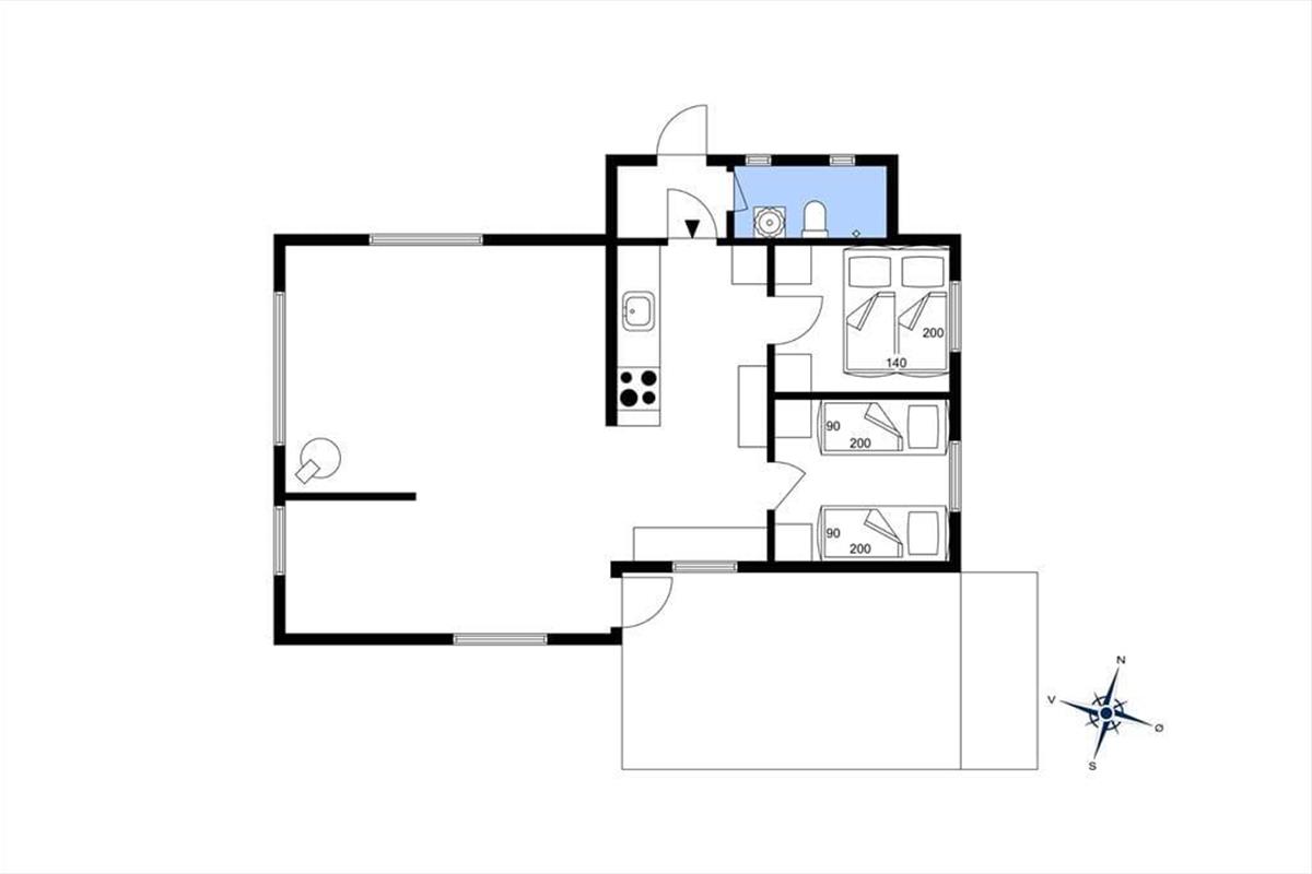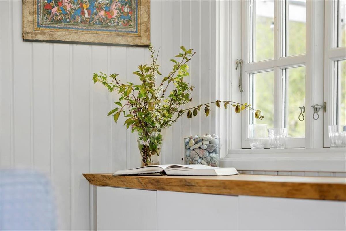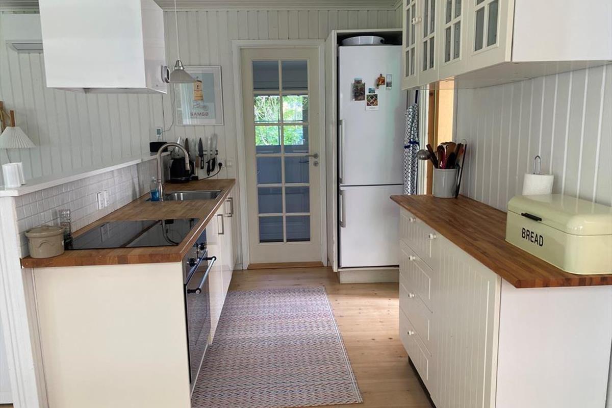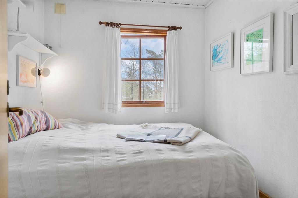 In der gemütlichen Polstersitzecke genießt du erholsame Momente mit einem guten Buch oder während eines kleinen Nickerchens. Für Unterhaltung und Abwechslung sorgt bei Bedarf der an der Wand hängende Fernseher. Behagliche Wärme und Stimmung garantiert der Kaminofen. Neben dem Sofa begrüßt dich der überaus ansprechende, richtig gemütliche Essplatz. Große Fenster lassen viel Licht durch den Raum strömen und verwöhnen zugleich mit gutem Ausblick in den grünen Garten. Einer der beiden Schlafräume empfängt dich mit einem Doppelbett. Im zweiten Raum stehen zwei Einzelbetten bereit. Die Zimmer bieten Aussicht in den Garten und in Richtung Meer. In den warmen Sommermonaten kannst du die Fenster einen Spalt weit offen stehen lassen und mit leisem Meeresrauschen in den Ohren einschlafen. Das Badezimmer ist klein, dafür aber hell und funktionell. Neben dem Badezimmer befindet sich ein kleiner Flur, der als Eingangsbereich fungiert.