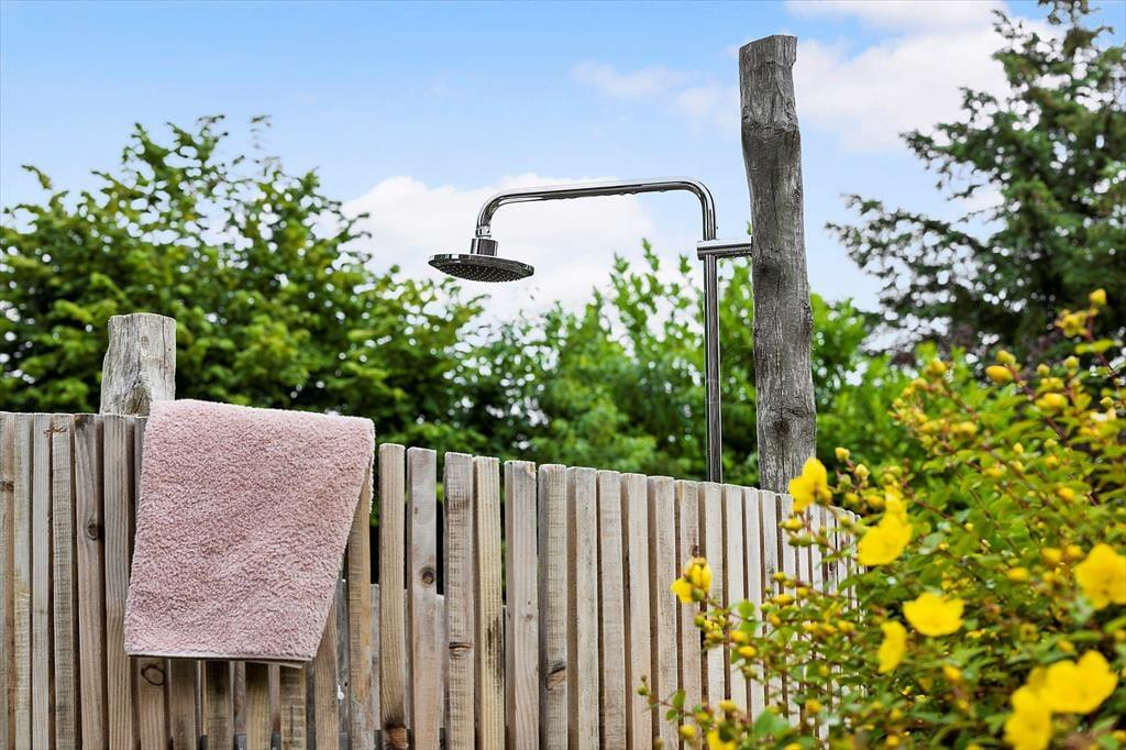 Rund ums Ferienhaus erstreckt sich ein schöner Garten, der von Büschen und Bäumen umgeben ist, die den Garten gut abschirmen. Im Garten erwarten dich mehrere gemütliche Aufenthaltsplätze, hübsche Blumen und Sträucher, aber auch schöne Bereiche, die ganz der Natur überlassen sind. Die große Terrasse mit Gartenmöbeln bietet beste Möglichkeiten, zu jeder Zeit ein sonniges oder auch windgeschütztes Plätzchen zu finden. Die vor dem Haus platzierte Terrasse in Richtung Westen ist teilweise überdacht und bietet sich hervorragend zum Genießen der Nachmittags- und Abendsonne an. In Verlängerung der Terrasse erwartet dich eine Außendusche, die nicht nur für erfrischende Abkühlungen an warmen Sommertagen sorgt, sondern dir nach einem Bad in den wogenden Ostseewellen den Sand und das Salz des Meeres von der Haut spült. Gute Parkmöglichkeiten sind vorhanden.