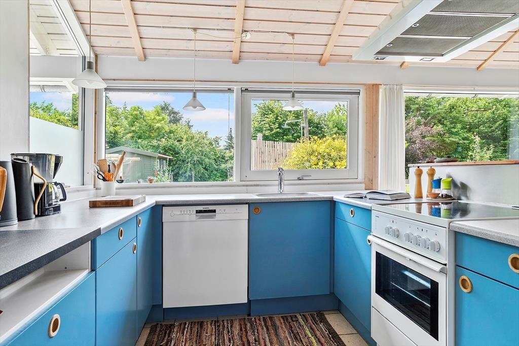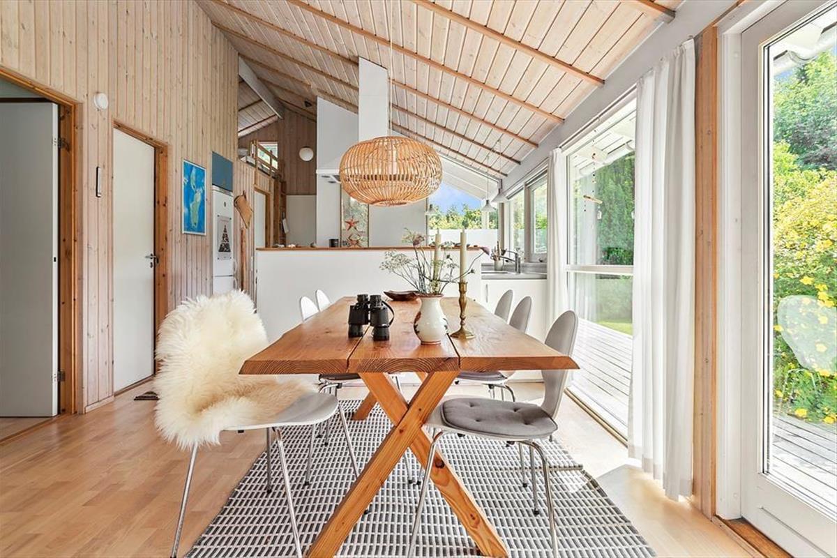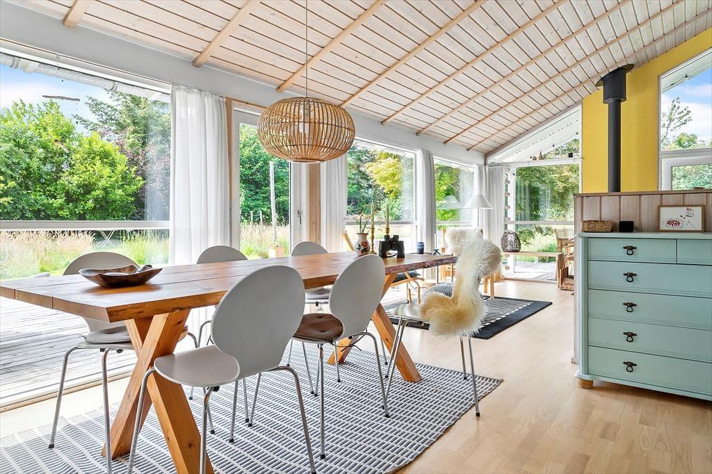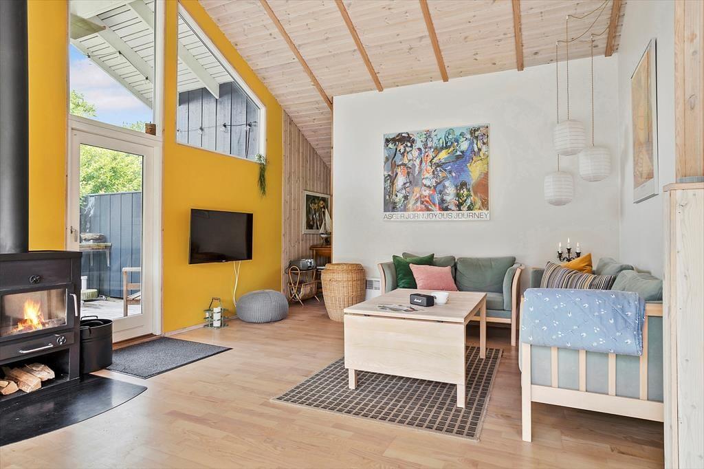 Große und kleine Urlauber verbringen in diesem schönen Urlaubsdomizil eine gemütliche und komfortable Auszeit inmitten der hübschen Natur der Ostseeinsel Samsø. Dein Haus beherbergt bis zu vier Erwachsene und zwei Kinder. Dank der Fenster in Richtung des Gartens, wirst du selbst während der Zubereitung der täglichen Mahlzeiten in der offenen Küche mit einem schönen Ausblick ins Grüne verwöhnt. Eine halbhohe Mauer trennt die Küche vom Essplatz, an dem ihr auch außerhalb der Mahlzeiten gern beisammensitzen und vergnügte Spieleabende verleben werdet. Aufgrund der offen gestalteten Räumlichkeiten genießt du selbst beim Kochen die Nähe und Gesellschaft deiner Mitreisenden. Der Essplatz ist vor der großen Fensterfront platziert, die dem Raum einen herrlichen Tageslichteinfall verleiht und Ausblick in den Garten gewährt. An schönen Tagen stellst du die Terrassentüren weit auf und servierst das Essen im Freien. Der Wohnraum lädt nach einem langen erlebnisreichen Tag zu entspannten Stunden mit einem guten Buch und zum ein oder anderen gemütlichen Fernsehabend ein. Für ein Maximum an Gemütlichkeit und Wärme sorgt derweil der mittig im Raum platzierte Kaminofen. Eine Terrassentür führt direkt hinaus auf die gen Westen weisende Terrasse. Hinter der Sofaecke begrüßt dich ein kleines gemütliches Eckchen mit einem Bett. Diese kuschelige "Höhle" bietet sich sehr gut als Schlafgelegenheit für die kleinen Urlauber an. Der offen kombinierte Küchen-, Wohn- und Essbereich ist das Herzstück deines Ferienhauses. Die großen Fenster und die hohen Decken verleihen dem Raum eine ansprechende Wohnatmosphäre mit besten Möglichkeiten für erholsame, entspannte Stunden im Kreise der Lieben. Die beiden gemütlichen Schlafräume beinhalten jeweils ein Doppelbett und Schrankfläche. Im Whirlpool und in der Sauna deines Badezimmers genießt du traumhaft erholsame Momente voller Wellnessflair. Dein Ferienhaus präsentiert sich mit hellen Holzwänden und Holzdecken sowie in schönen Farben durchweg gemütlich und stimmungsvoll. Viel Komfort versprechen die zeitgemäßen Annehmlichkeiten. Schönen, gelungenen Urlaubstagen am Maarup Østerstrand steht daher nichts im Wege.