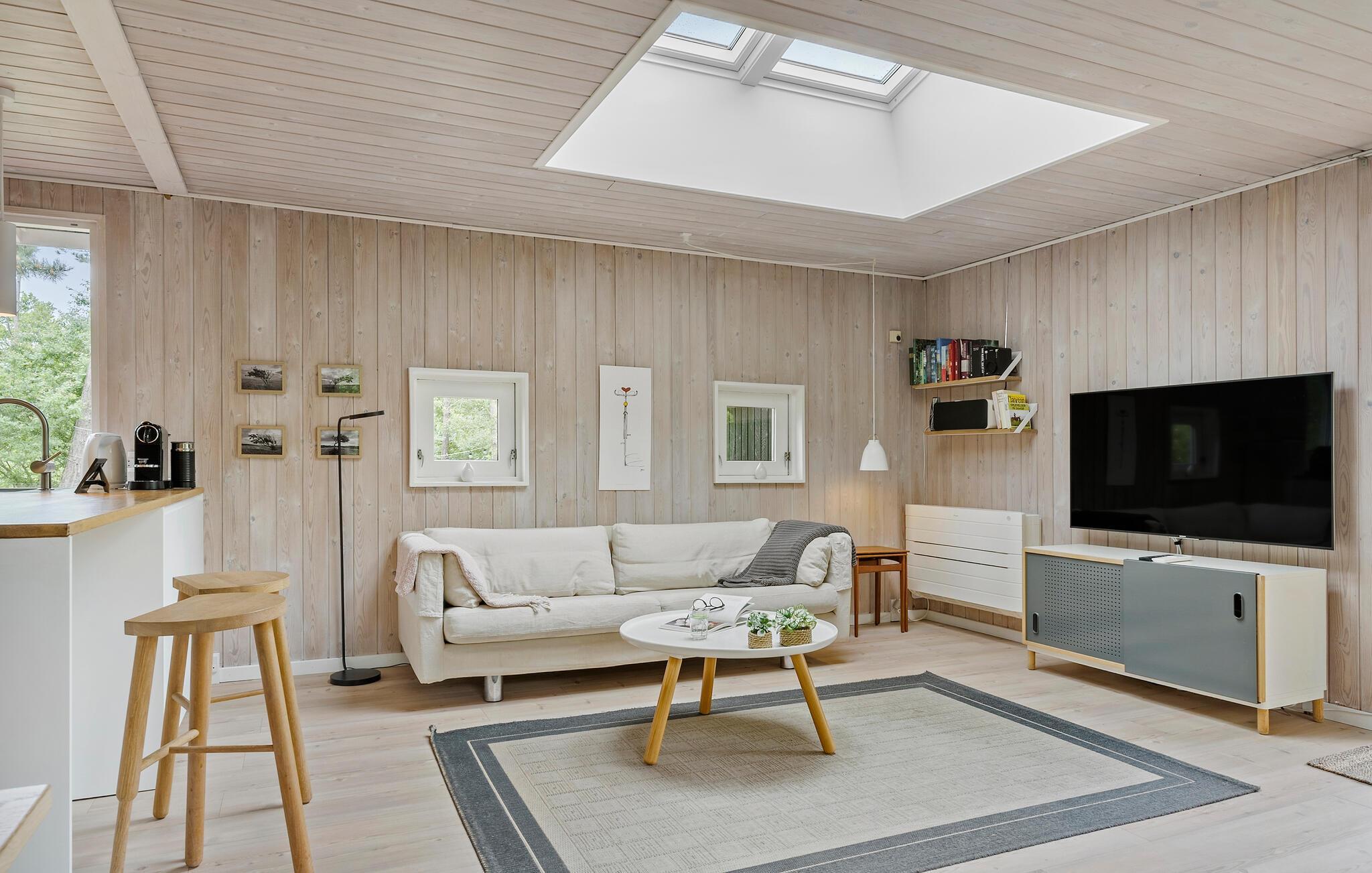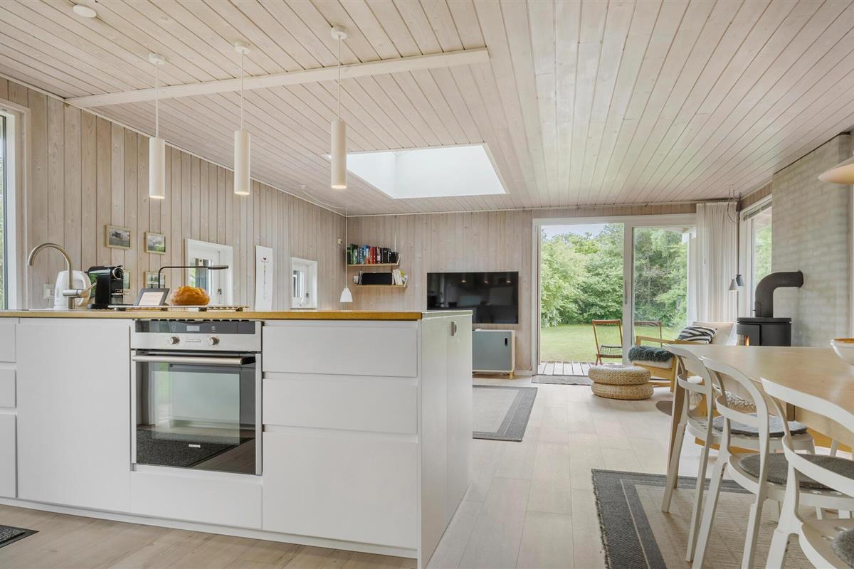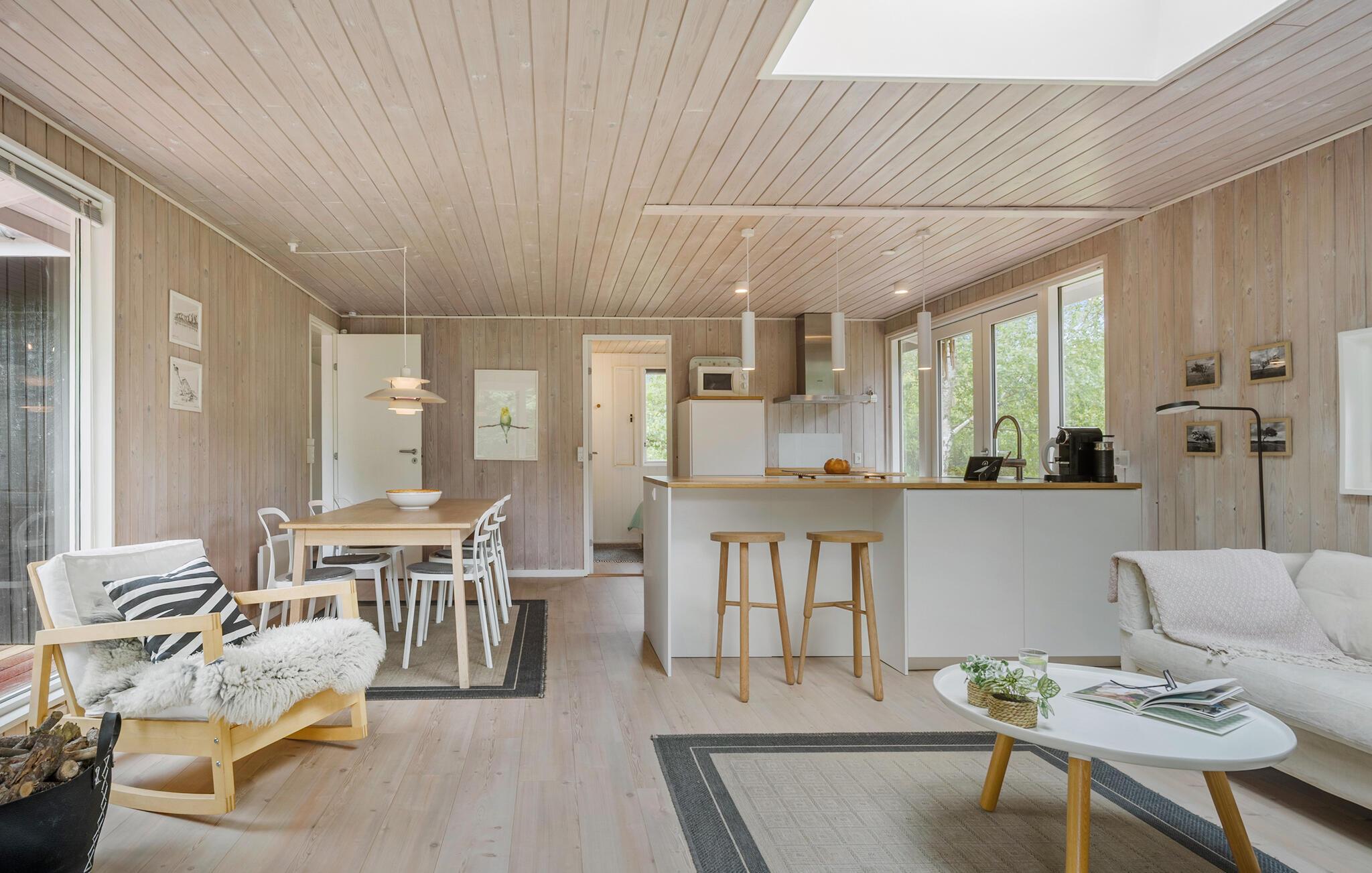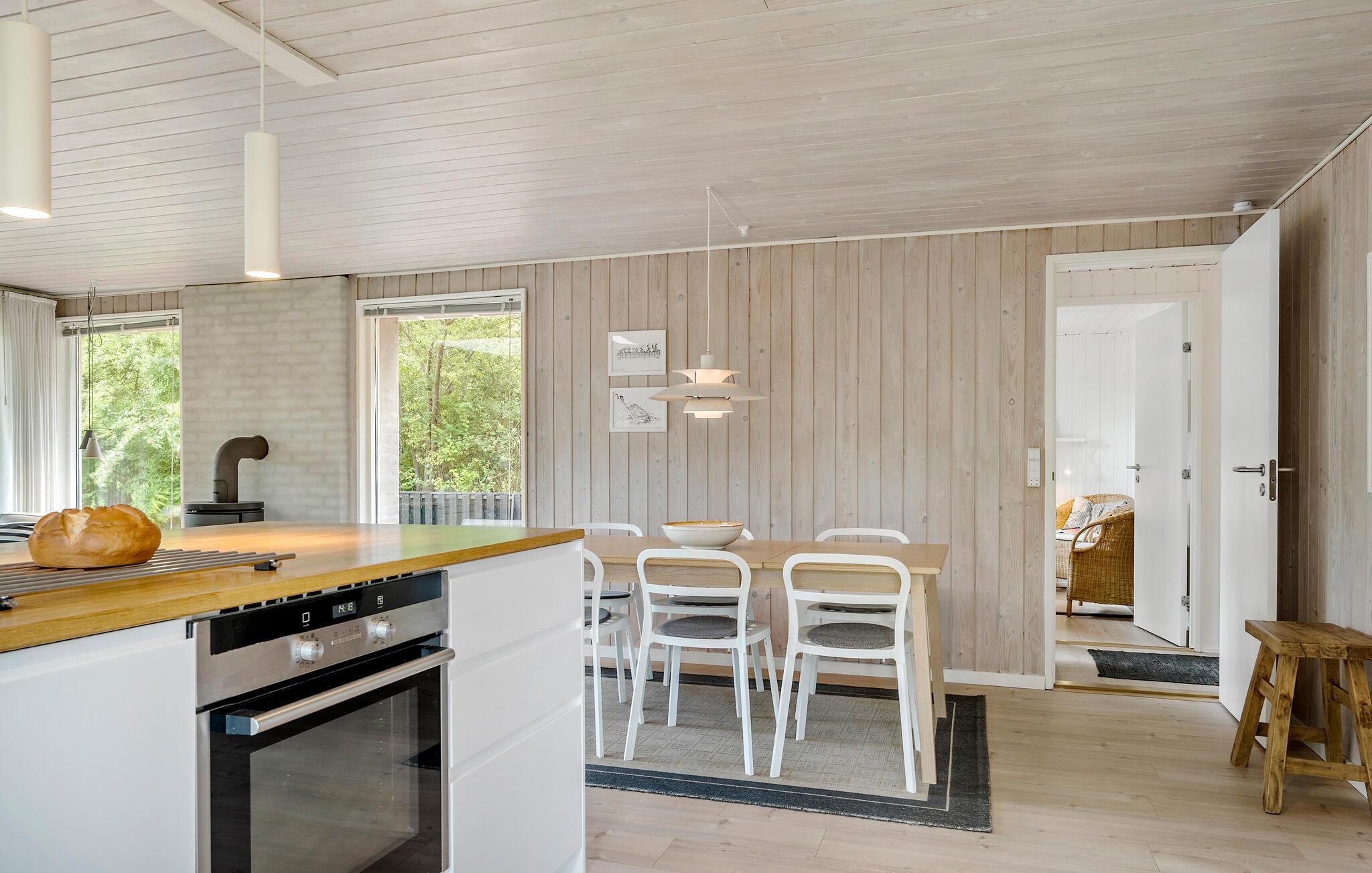 Het hele gezin zal zich thuis voelen in de uitnodigende kamers van dit vakantiehuis. Je kunt samen maaltijden bereiden in de open keuken en woonkamer, terwijl de kinderen via de twee deuren de tuin in en uit rennen. Na het samen eten kunnen de bordspellen worden uitgepakt en kan een lange, gezellige avond beginnen - steek het vuur aan in de houtkachel, waarvan het aangename geknetter bijdraagt aan de gezellige sfeer.