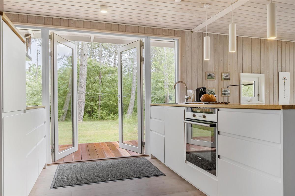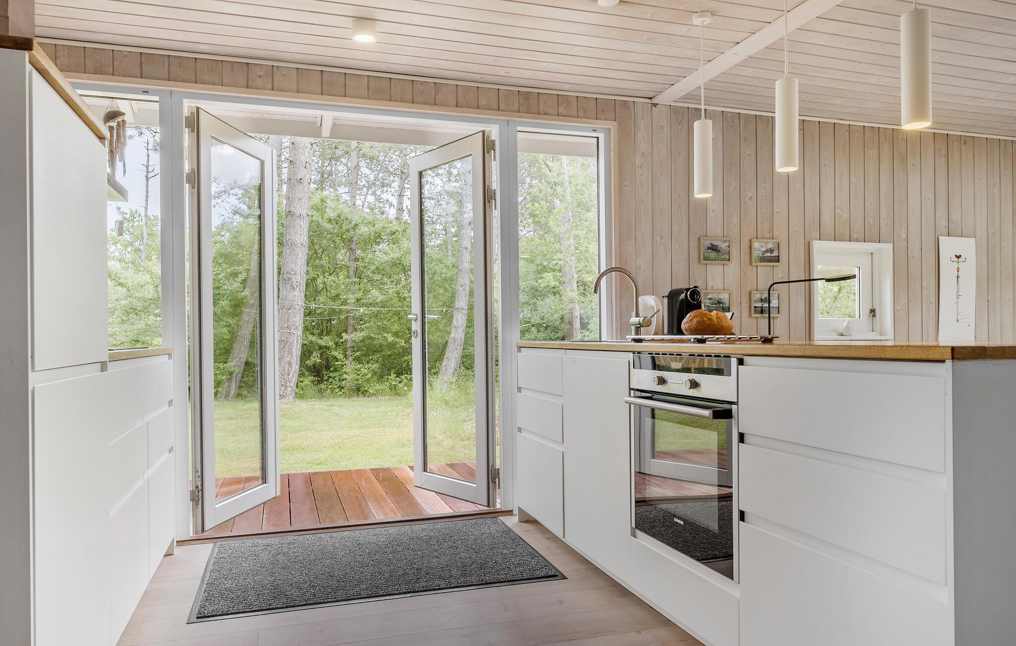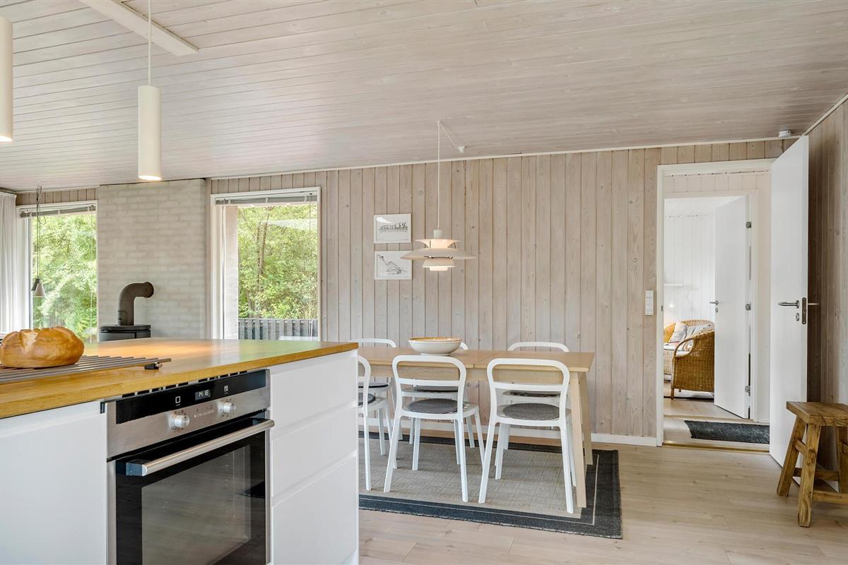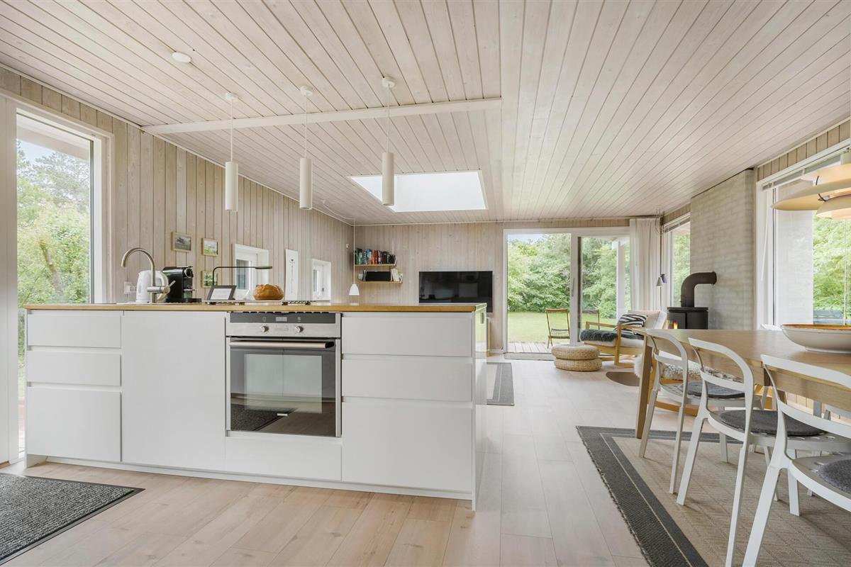 Het hele gezin zal zich thuis voelen in de uitnodigende kamers van dit vakantiehuis. Je kunt samen maaltijden bereiden in de open keuken en woonkamer, terwijl de kinderen via de twee deuren de tuin in en uit rennen. Na het samen eten kunnen de bordspellen worden uitgepakt en kan een lange, gezellige avond beginnen - steek het vuur aan in de houtkachel, waarvan het aangename geknetter bijdraagt aan de gezellige sfeer.