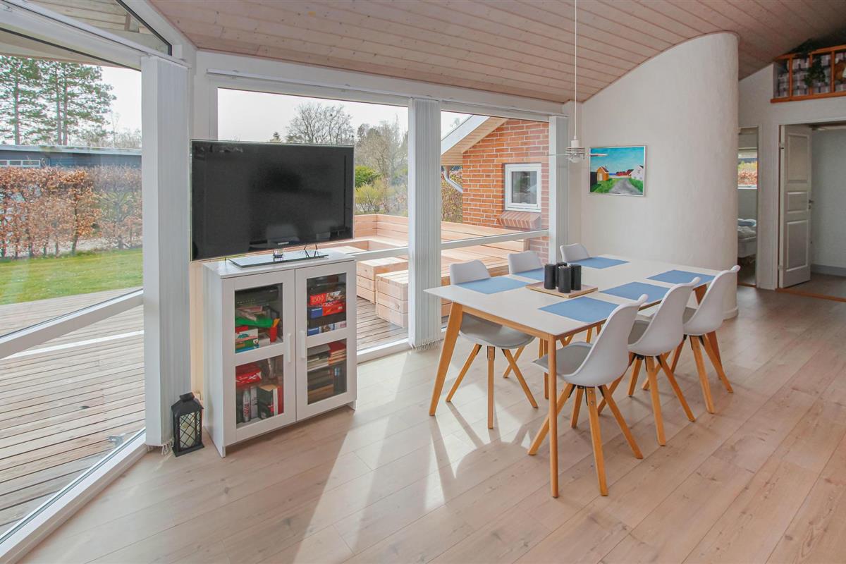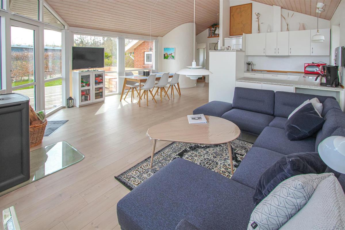 Maak het u samen comfortabel in de woonkamer, waar u kunt genieten van een vrij uitzicht op zee. De smaakvolle inrichting maakt het huis tot een ware oase waar u heerlijk kunt ontspannen.