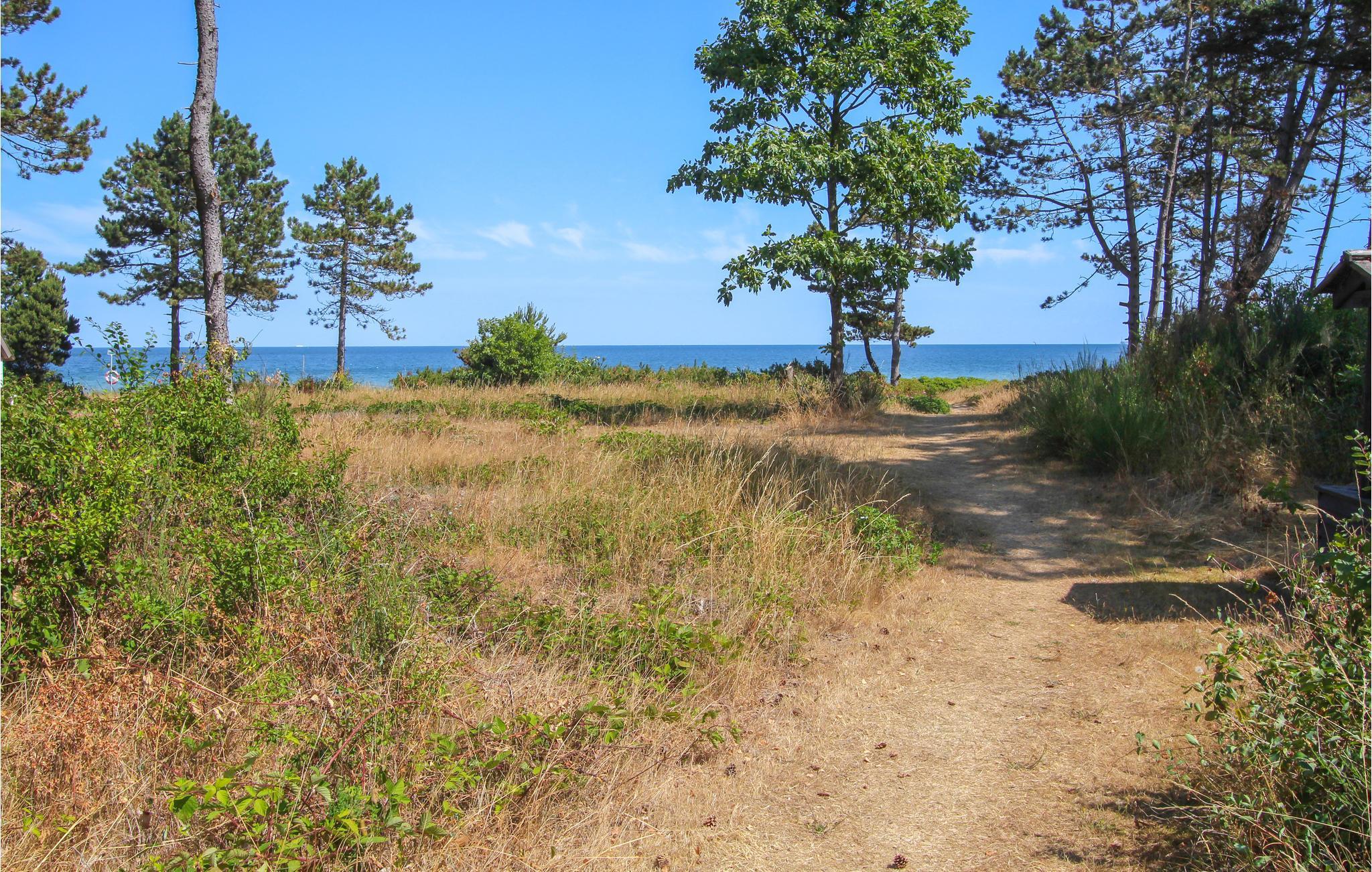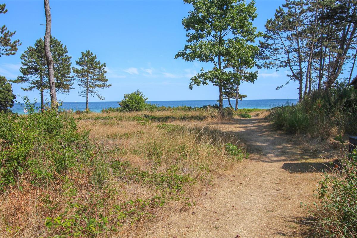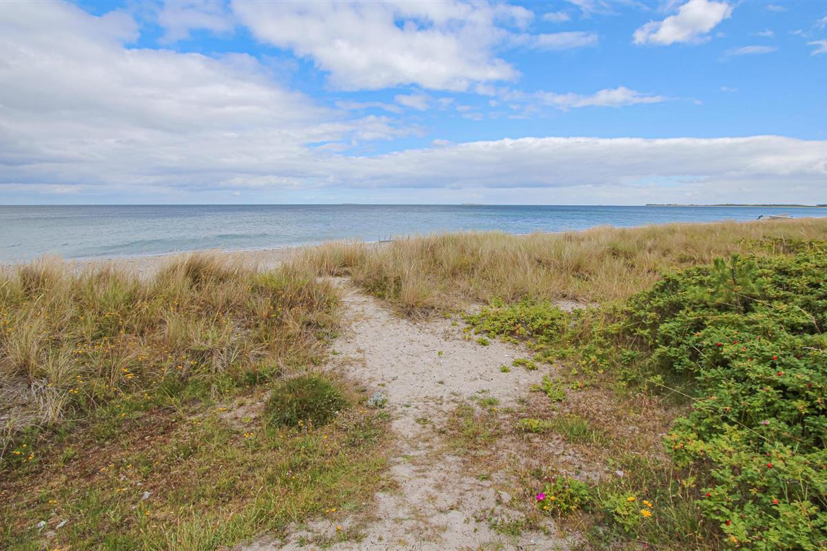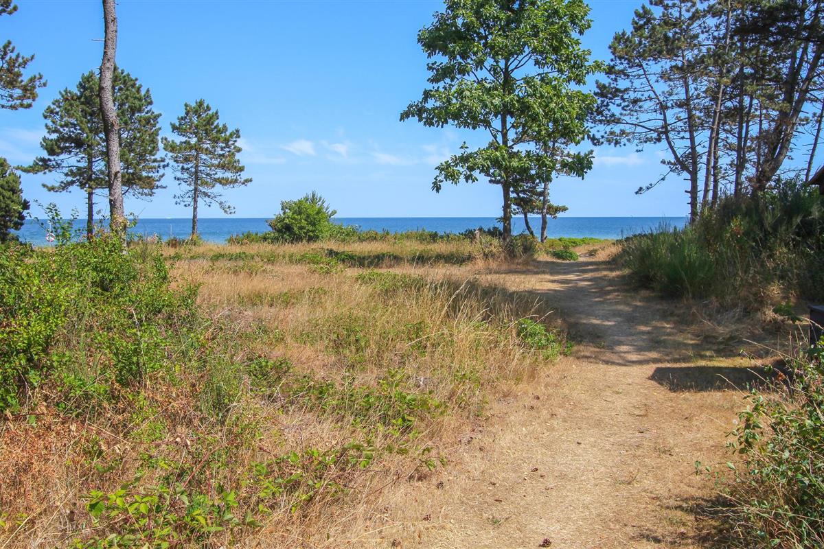 Wandel over het terrein naar het witte zandstrand, dat perfect is voor zonnige dagen in en rond het water en voor lange wandelingen.