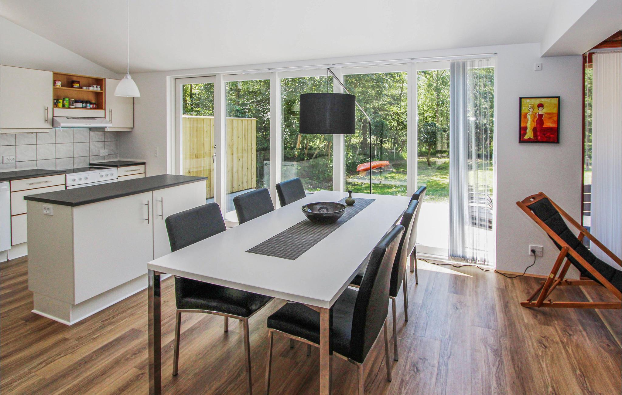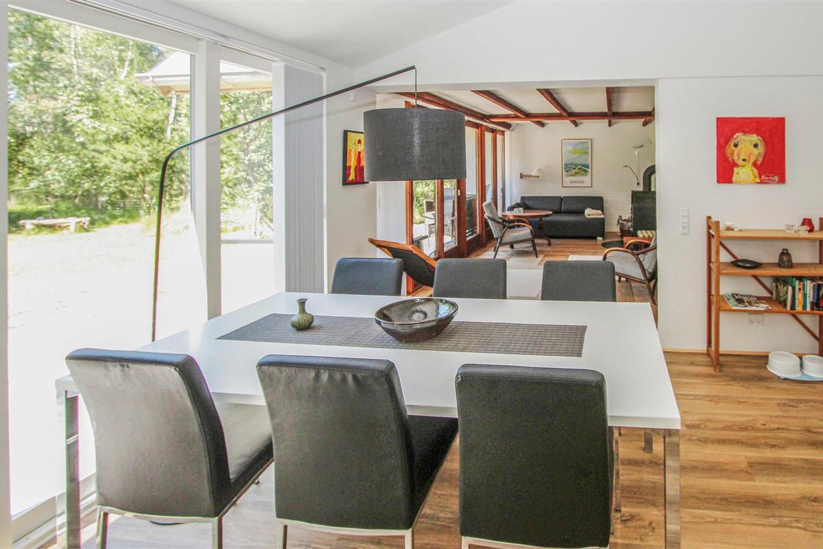 Schilderachtig omgeven door hoge bomen, verwelkomt het vakantiehuis u op slechts een paar stappen van een goed zwemstrand. De lichte kamers zijn stijlvol ingericht, slim geplaatste houten elementen geven het interieur een aantrekkelijke warmte. U kunt echt ontspannen in deze prachtige omgeving. Neem plaats in de comfortabele meubels in het woongedeelte, de grote raamgevel biedt u een prachtig uitzicht op het omringende groen en laat tegelijkertijd veel licht binnen. Verblijd uw medereizigers met een heerlijk zelfgekookt diner of leuke ideeën voor een avondje samen spelen, dat kan plaatsvinden bij de open haard.