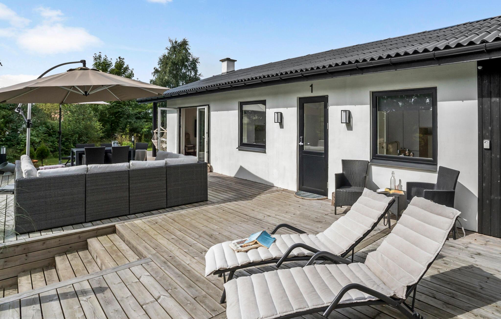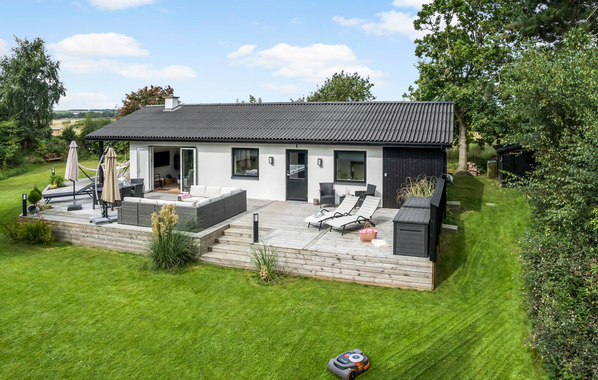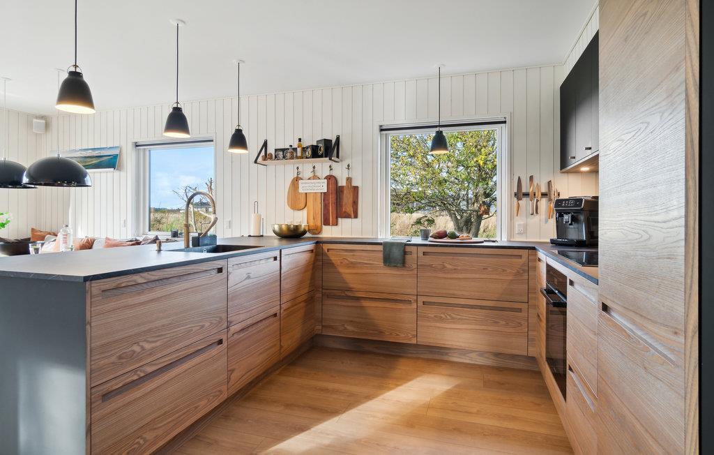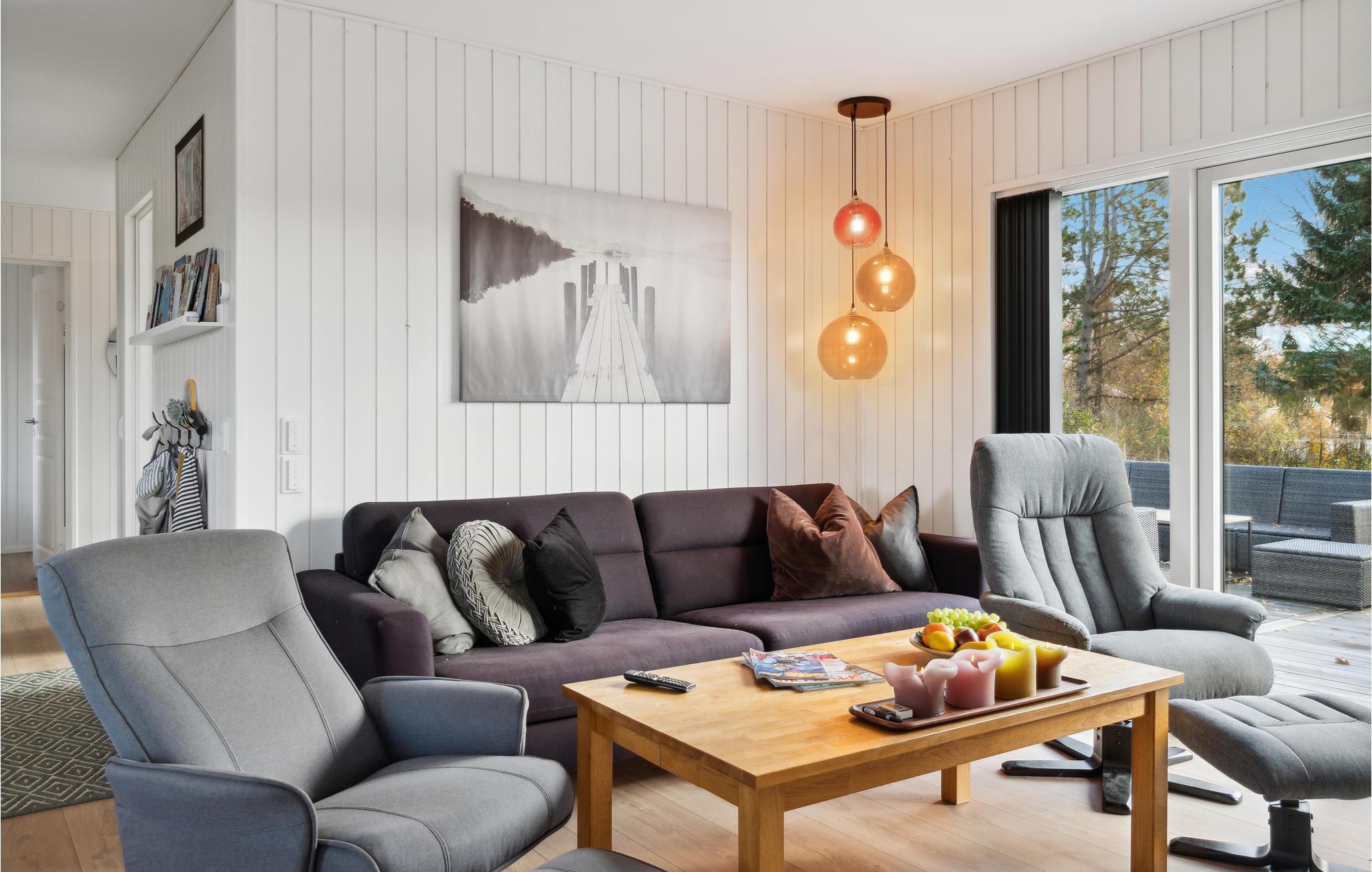 Ontspan met je familie in dit gezinsvriendelijke vakantiehuis, dat je verwelkomt met comfort, mooie meubels en lichtovergoten kamers. Koken zal een plezier zijn in de moderne keuken en neem je heerlijke maaltijden mee naar het terras waar je in de zomer kunt dineren. Het ruime houten terras omringt twee kanten van het huis en nodigt je uit om met de zon mee te wandelen en het jezelf comfortabel te maken in de buitenlucht. Zie hoe je kinderen de tuin overnemen als speelparadijs en maak plannen voor je excursies op het eiland!