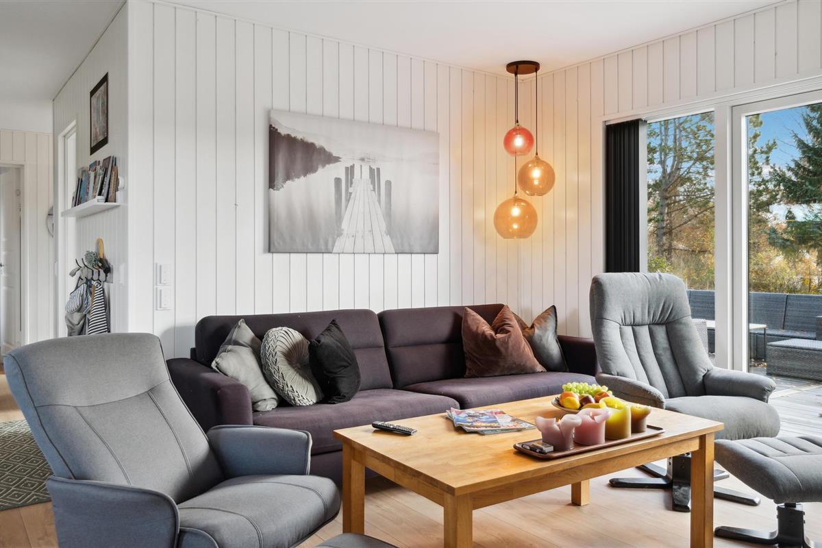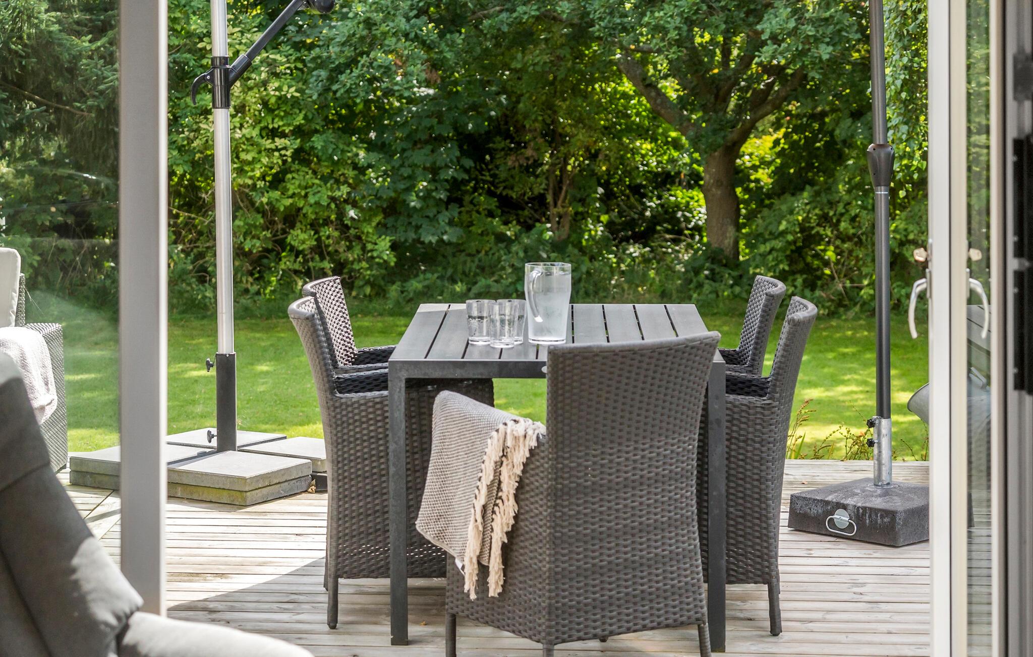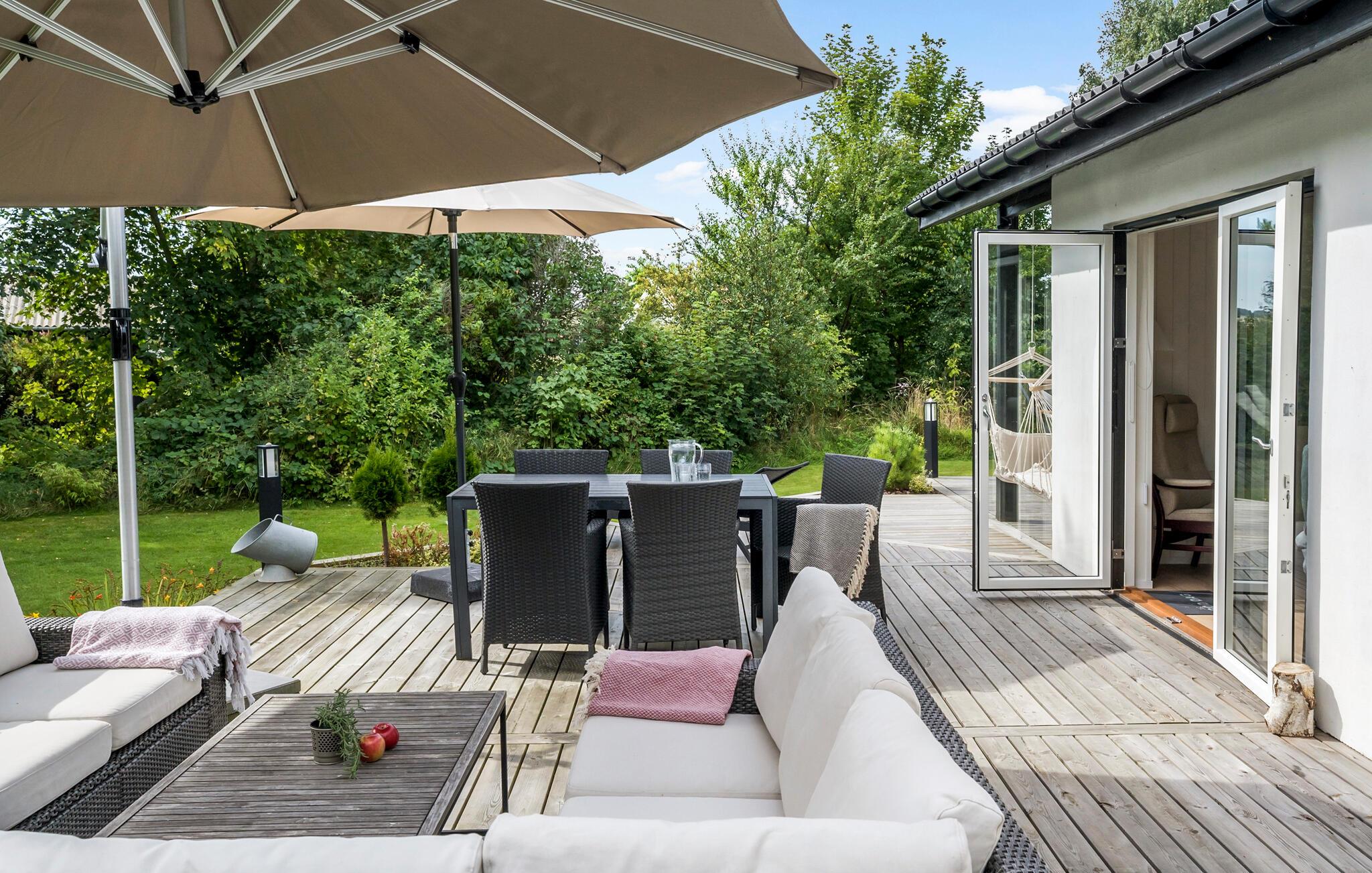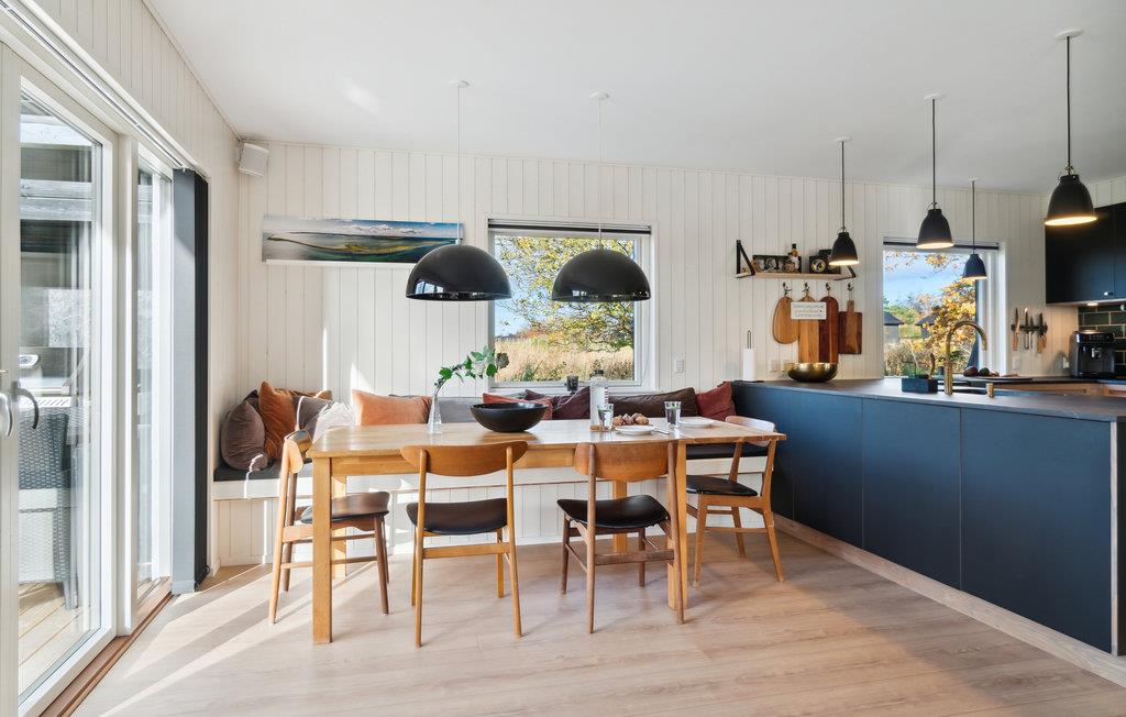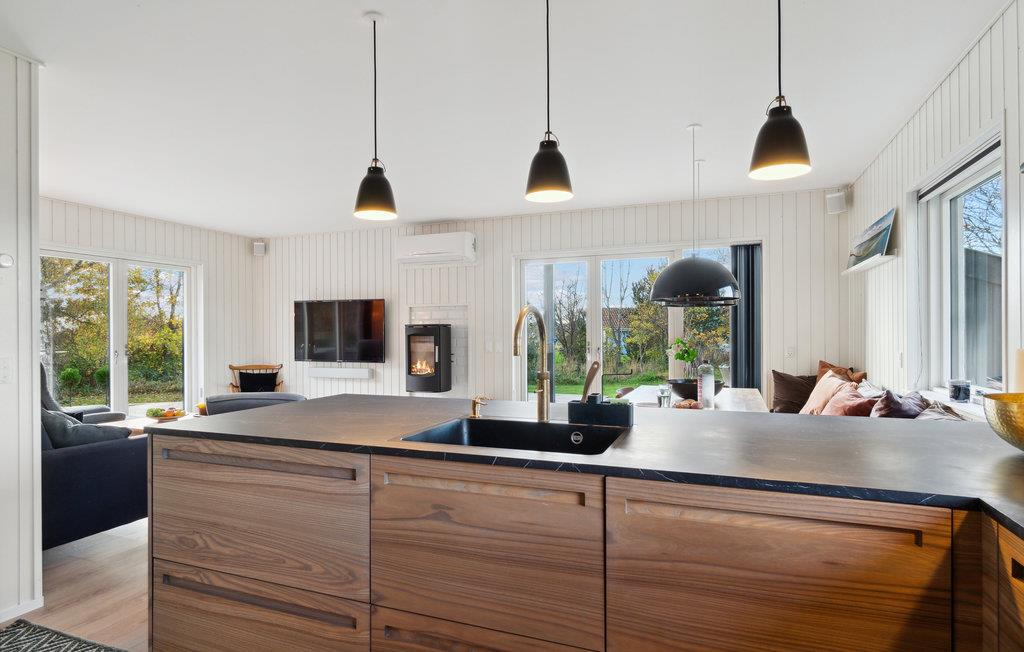 Ontspan met je familie in dit gezinsvriendelijke vakantiehuis, dat je verwelkomt met comfort, mooie meubels en lichtovergoten kamers. Koken zal een plezier zijn in de moderne keuken en neem je heerlijke maaltijden mee naar het terras waar je in de zomer kunt dineren. Het ruime houten terras omringt twee kanten van het huis en nodigt je uit om met de zon mee te wandelen en het jezelf comfortabel te maken in de buitenlucht. Zie hoe je kinderen de tuin overnemen als speelparadijs en maak plannen voor je excursies op het eiland!
