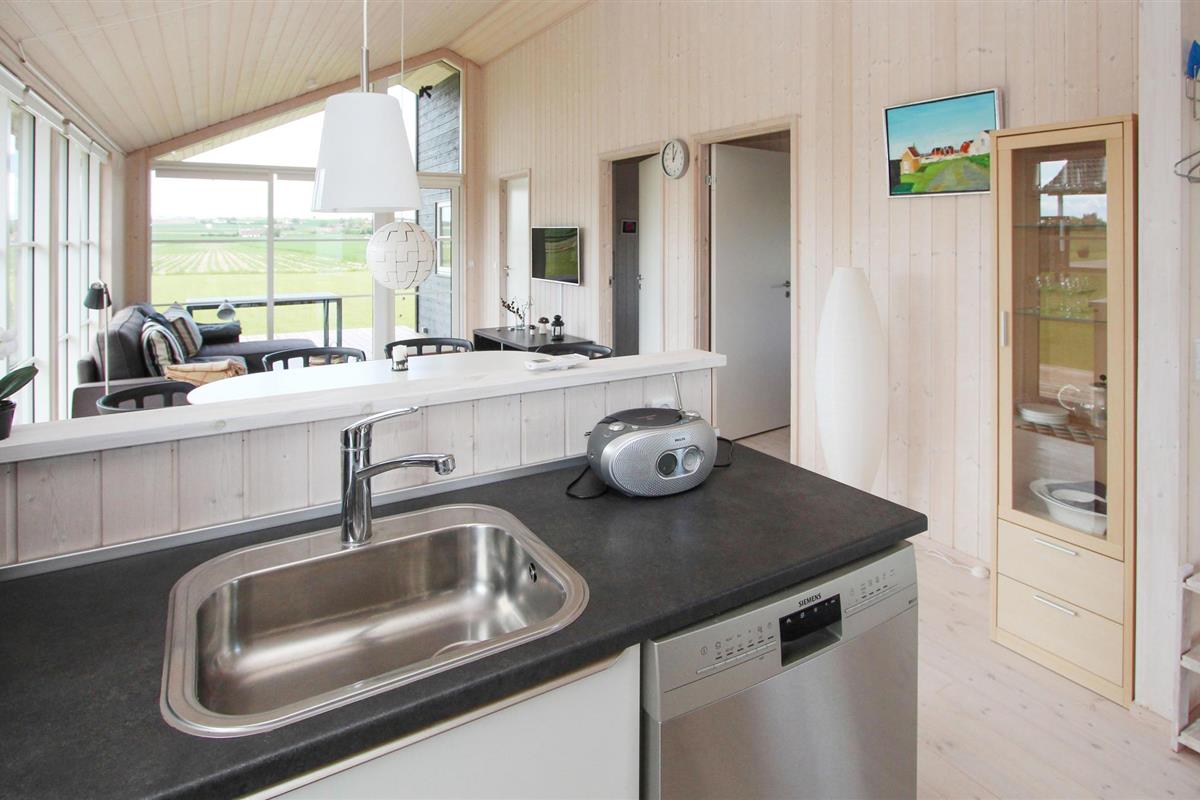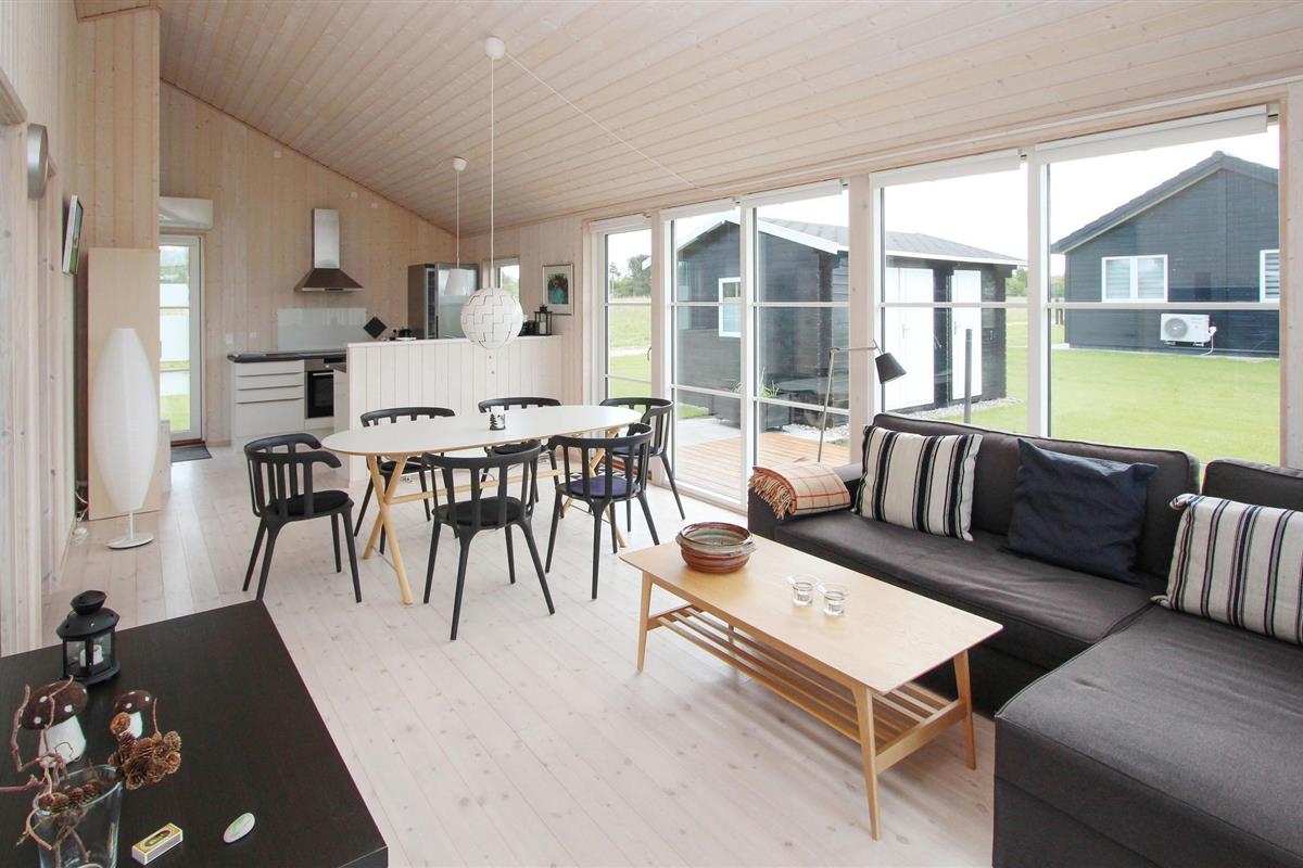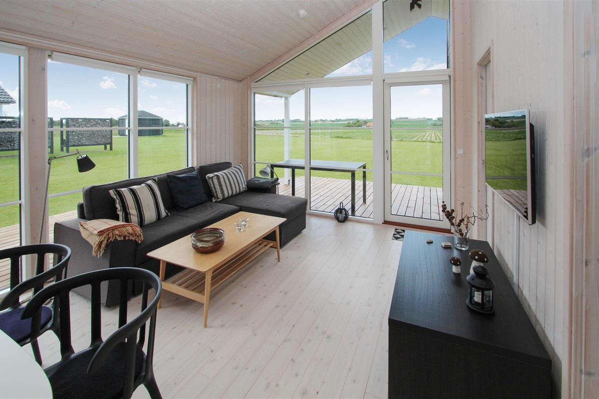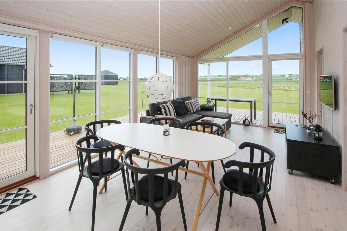Samen koken, uitgebreid dineren of gewoon ontspannen op de bank - het vindt hier allemaal plaats tegen een prachtige achtergrond van groene velden en weelderige weiden, die u kunt bewonderen door grote panoramische ramen. U kunt optimaal van dit uitzicht genieten terwijl u 's middags koffie drinkt op het terras voordat u de korte wandeling naar het strand maakt.