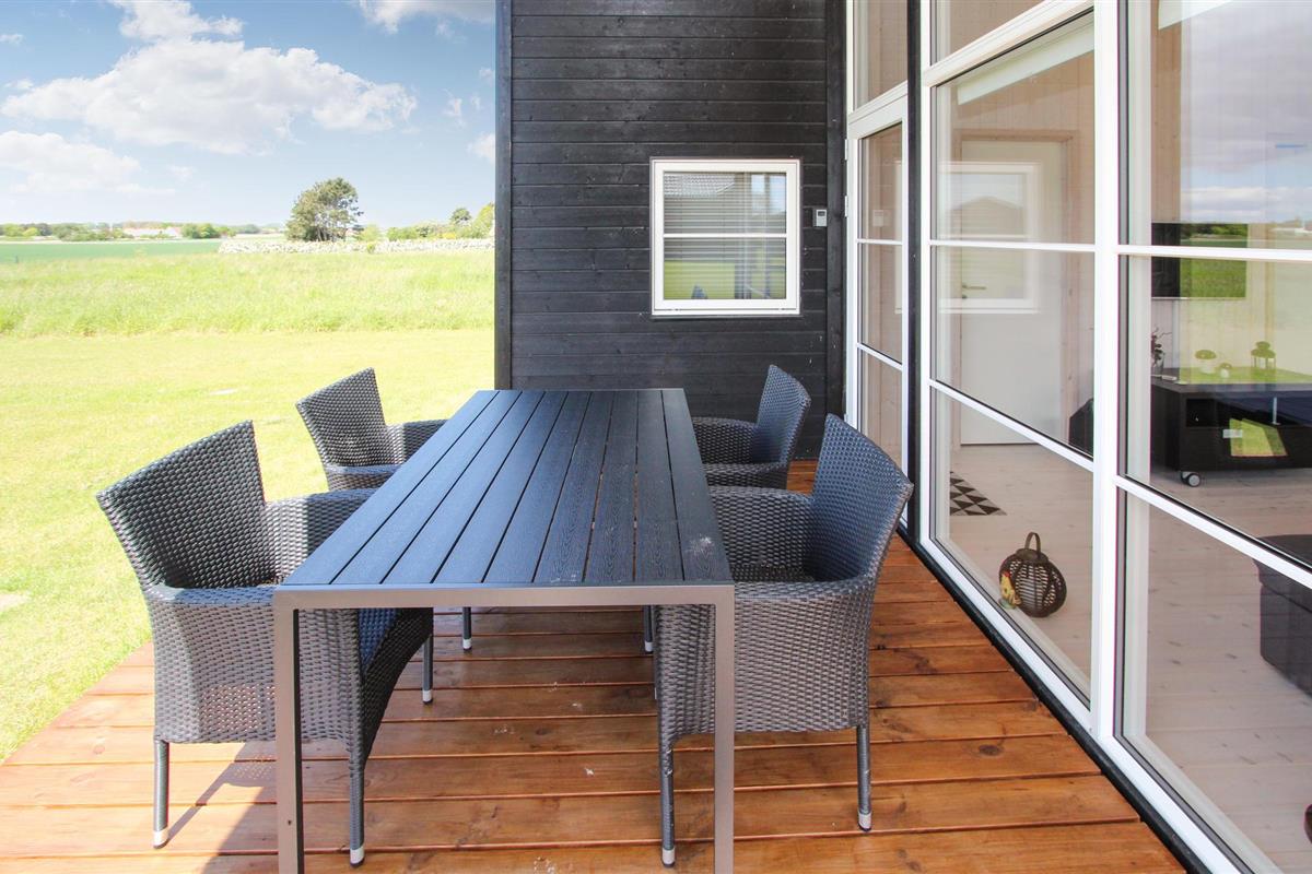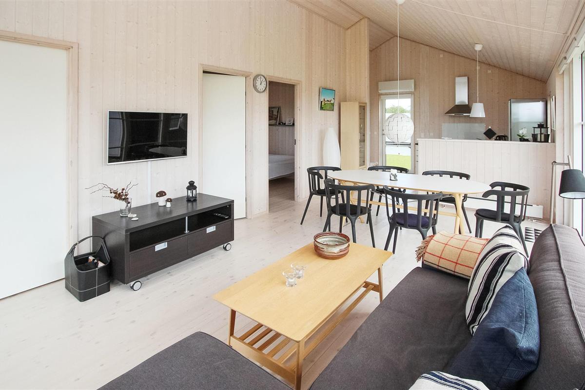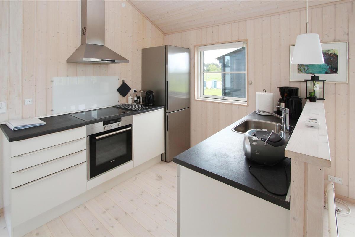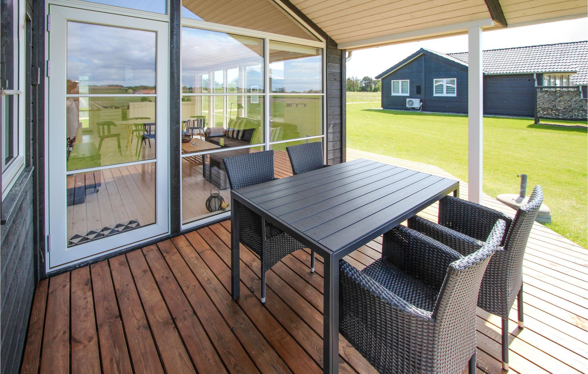 Samen koken, uitgebreid dineren of gewoon ontspannen op de bank - het vindt hier allemaal plaats tegen een prachtige achtergrond van groene velden en weelderige weiden, die u kunt bewonderen door grote panoramische ramen. U kunt optimaal van dit uitzicht genieten terwijl u 's middags koffie drinkt op het terras voordat u de korte wandeling naar het strand maakt.