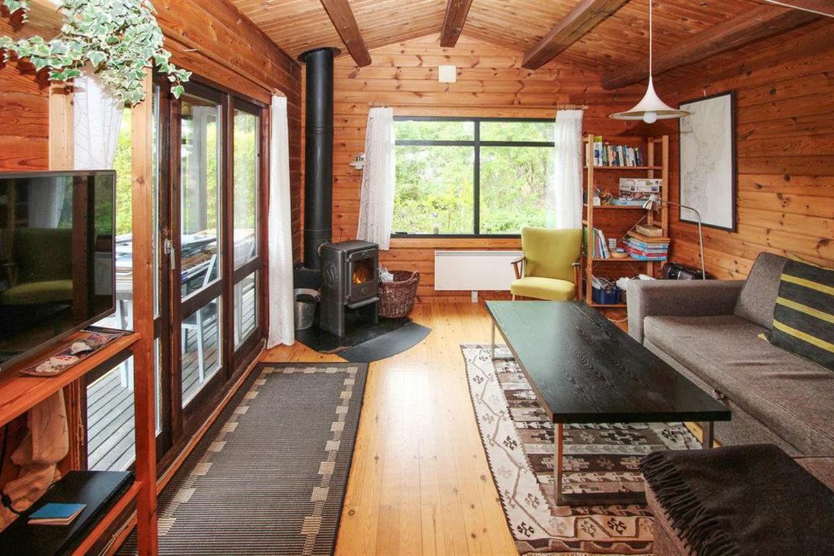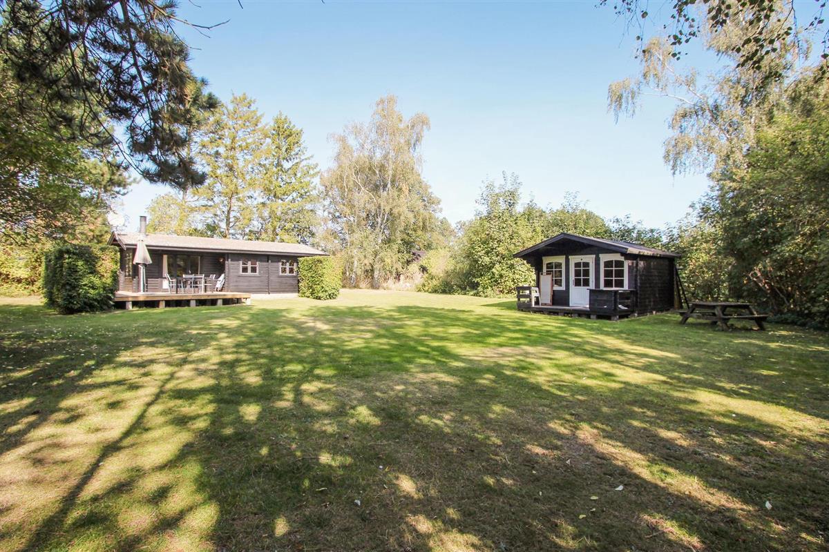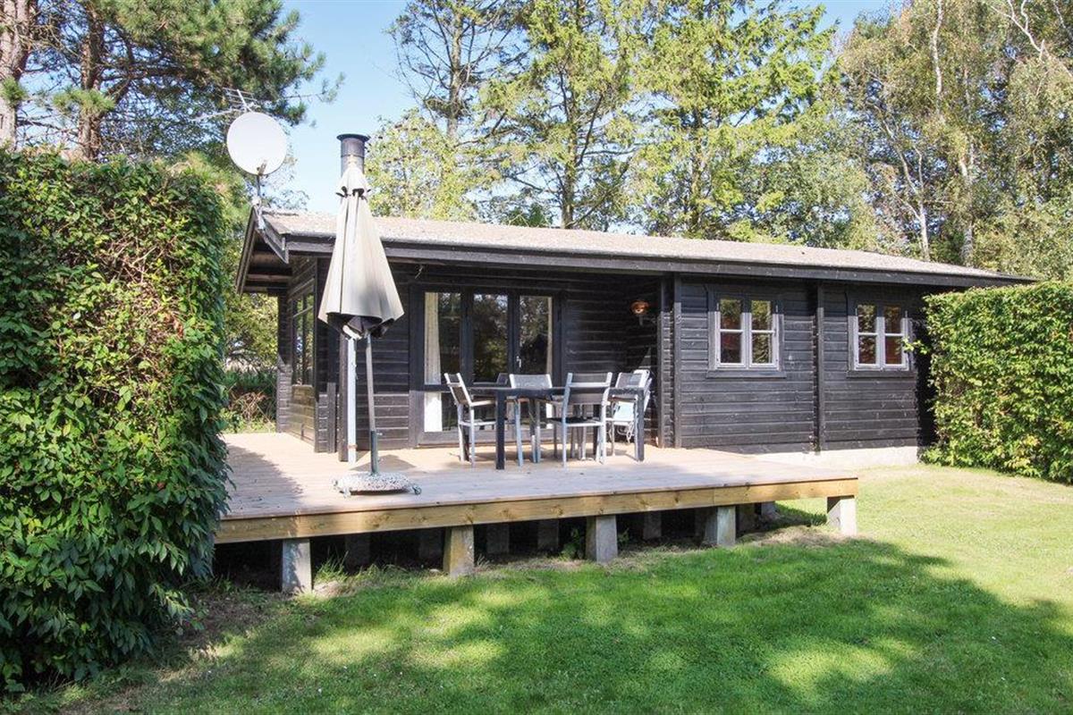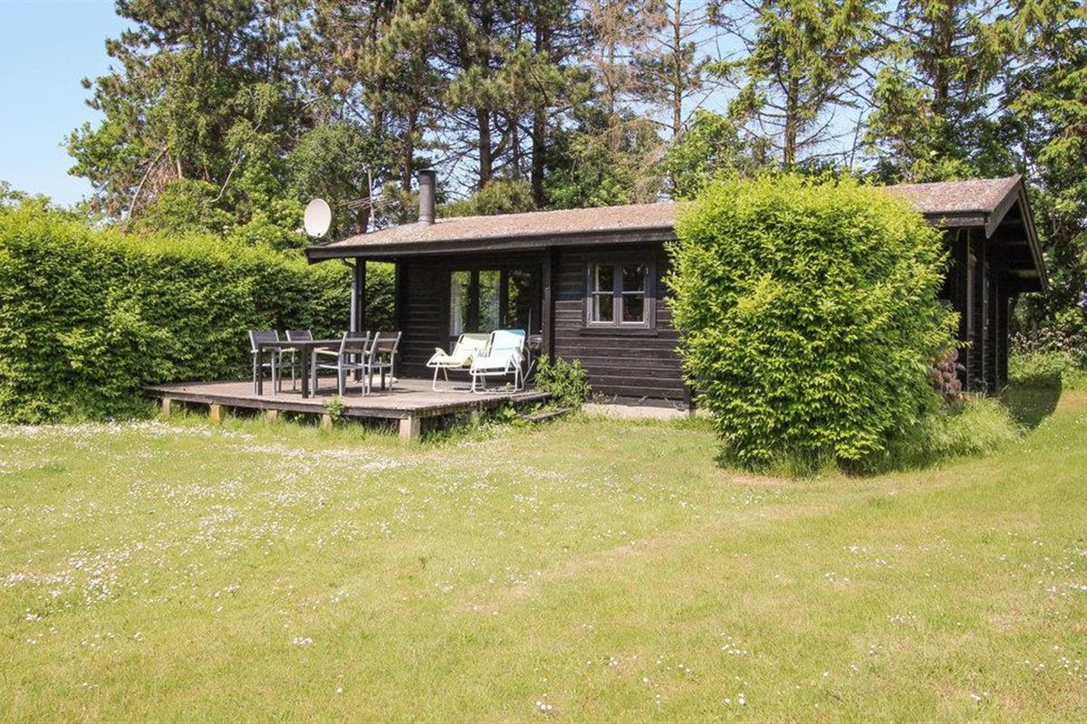 Rustiek vakantiehuis nabij strand op Samsø met terras en houtkachel, ideaal voor ontspanning in groene omgeving.