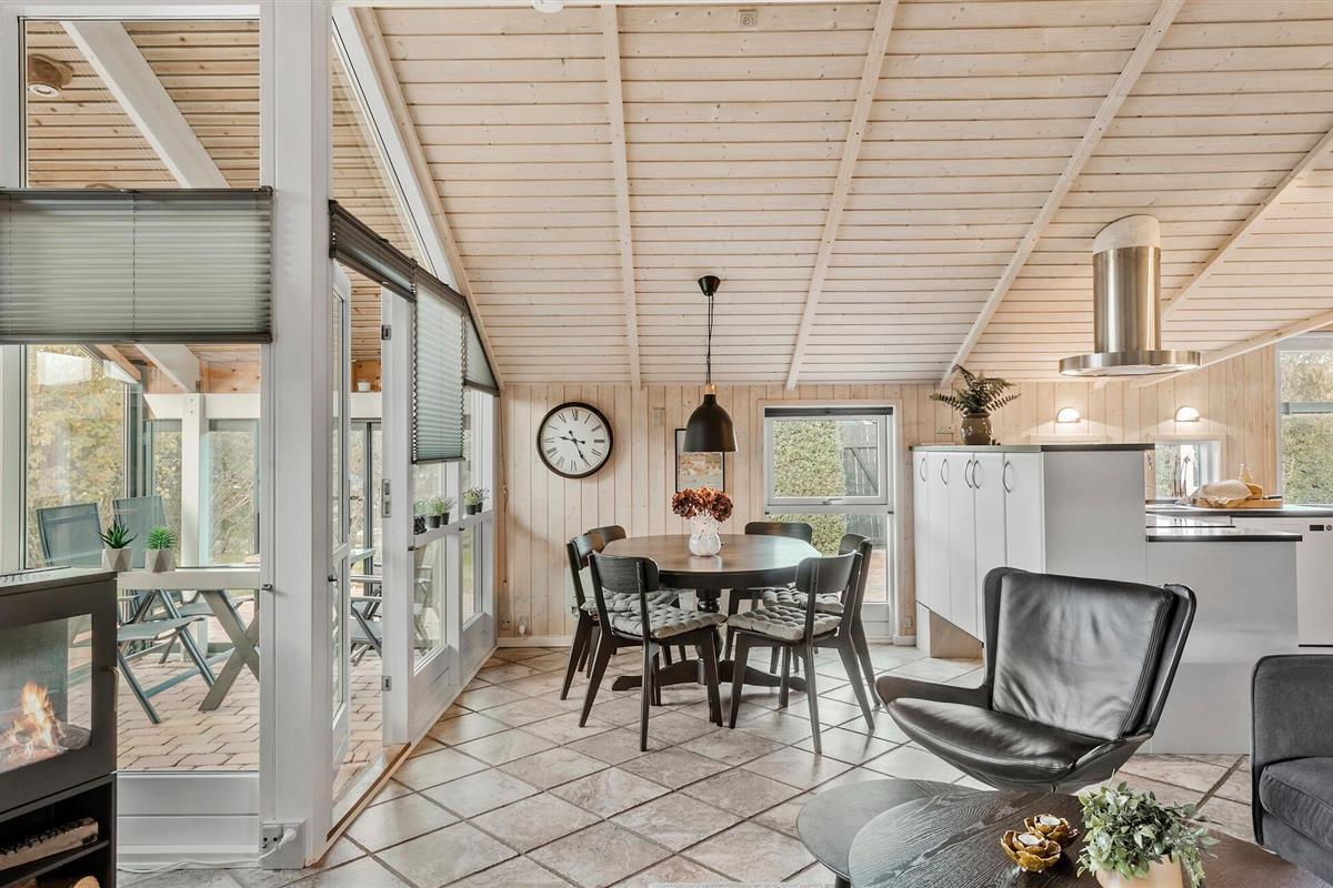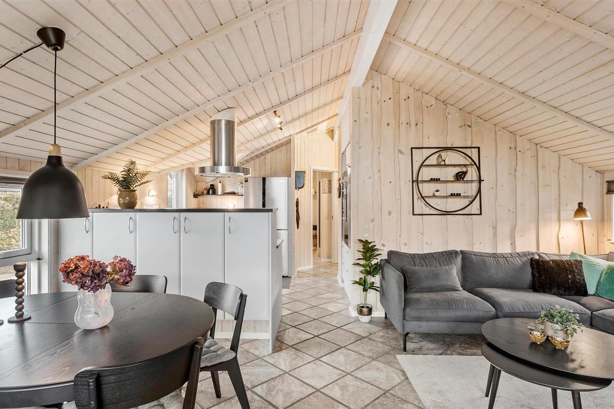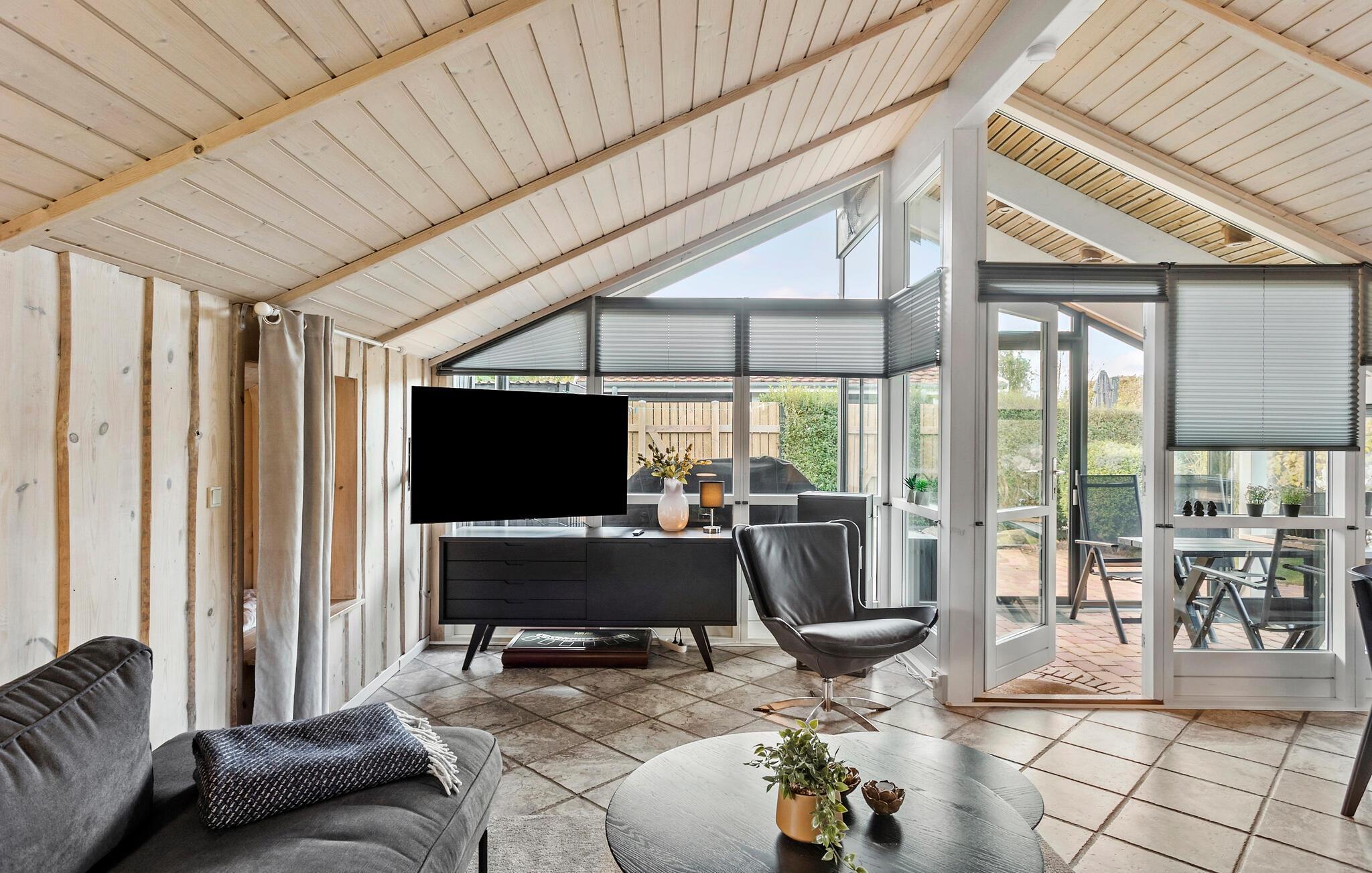 Het huis ligt op slechts een korte wandeling van het strand en biedt alles wat je nodig hebt voor een ontspannen vakantie. De open woonkamer, gekenmerkt door lichtgekleurd hout, is ideaal om te ontspannen. Breng gezellige avonden door in de zithoek, en kijk bijvoorbeeld naar een spannende film. De grote ramen laten veel licht binnen en creëren een warme, vriendelijke sfeer, terwijl de kleine serre uitnodigt om te genieten van een gezellig kopje thee, zelfs op dagen met gemiddeld weer. De moderne keuken biedt voldoende ruimte om samen maaltijden te bereiden.