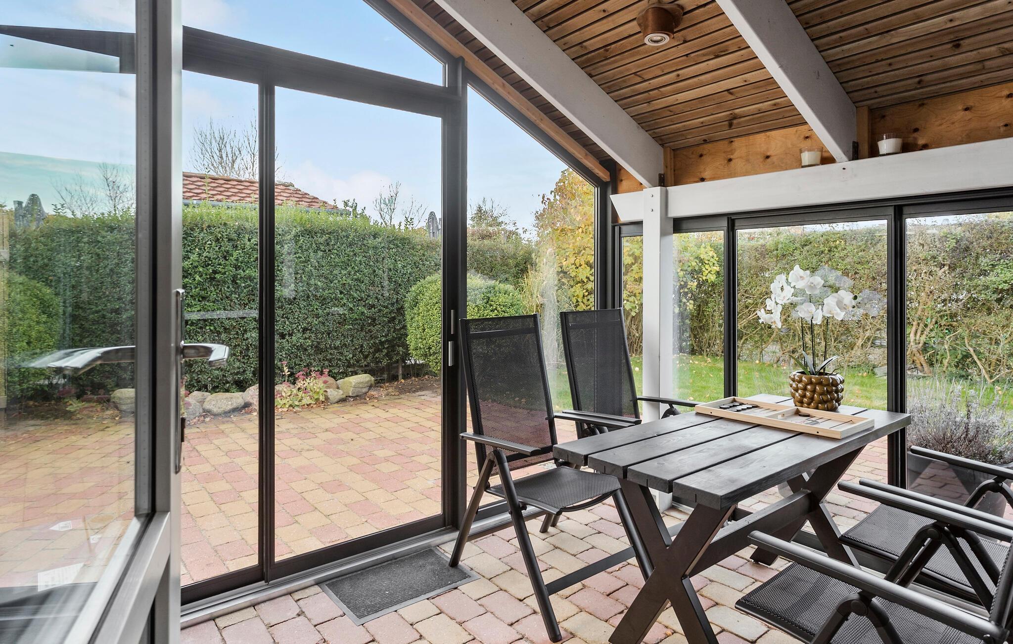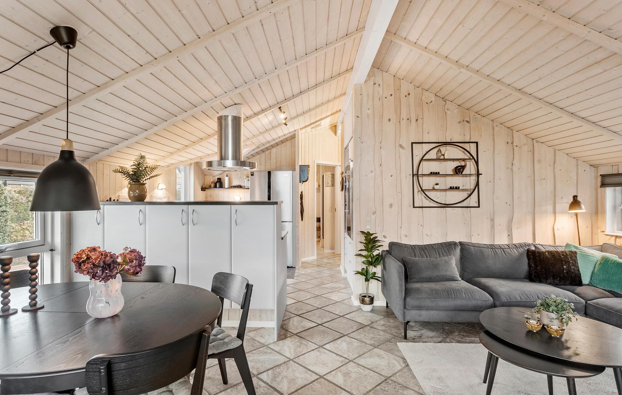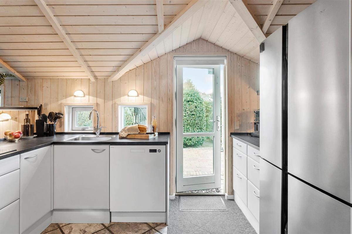 Het huis ligt op slechts een korte wandeling van het strand en biedt alles wat je nodig hebt voor een ontspannen vakantie. De open woonkamer, gekenmerkt door lichtgekleurd hout, is ideaal om te ontspannen. Breng gezellige avonden door in de zithoek, en kijk bijvoorbeeld naar een spannende film. De grote ramen laten veel licht binnen en creëren een warme, vriendelijke sfeer, terwijl de kleine serre uitnodigt om te genieten van een gezellig kopje thee, zelfs op dagen met gemiddeld weer. De moderne keuken biedt voldoende ruimte om samen maaltijden te bereiden.