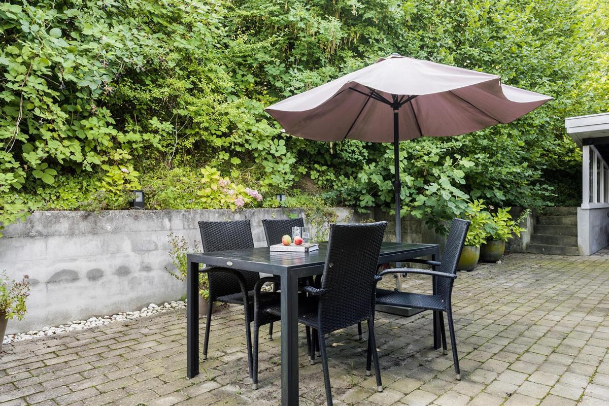 Begin je dag met een ontspannen ontbijt onder de parasol op het ruime houten terras. Maak gebruik van de comfortabele zithoek en geniet met je geliefden van de frisse lucht en de vredige omgeving. De tuin biedt volop ruimte om te spelen, te ontspannen of te genieten van een gezellige barbecue.