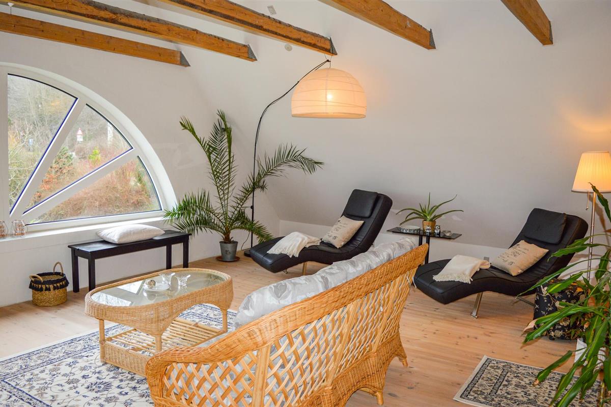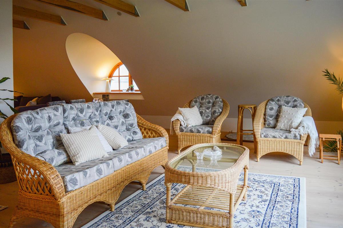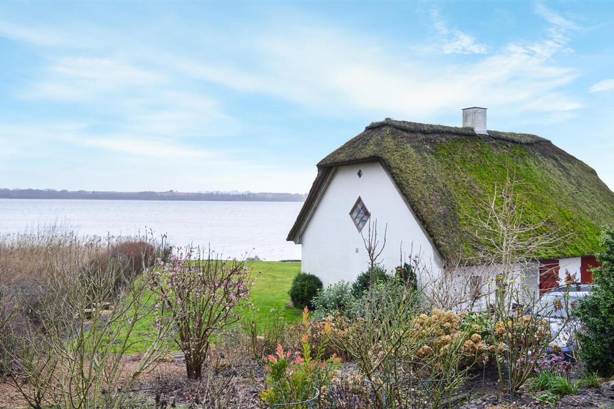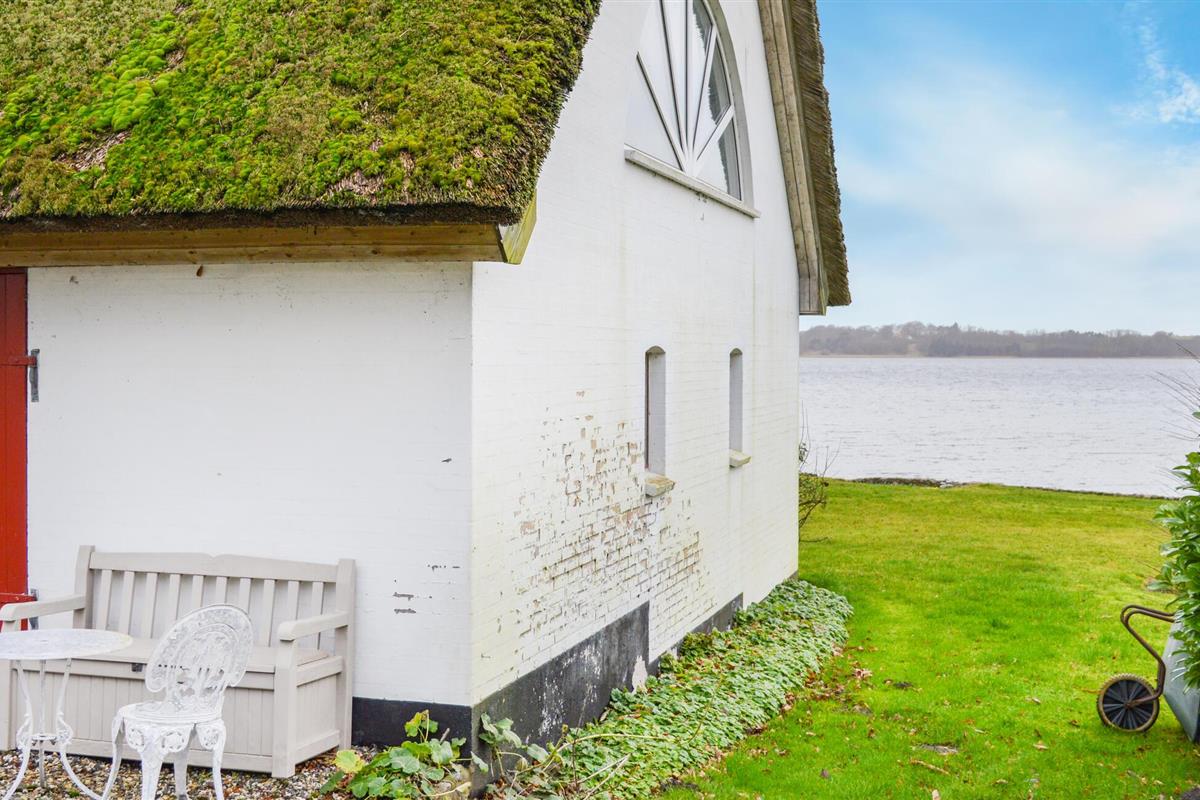 Het is een vrijstaand gebouw en ligt direct aan het Mariager Fjord. Het huis met rieten dak is erg gezellig en er is uitzicht op het water vanuit bijna elke kamer. Vanaf de eerste verdieping heeft u een fantastisch panorama op het prachtige fjord vanuit zowel de eethoek als het comfortabele zitmeubilair. De woning strekt zich direct uit tot aan het water en voor het zomerseizoen zijn hoogwaardige tuinmeubelen beschikbaar.