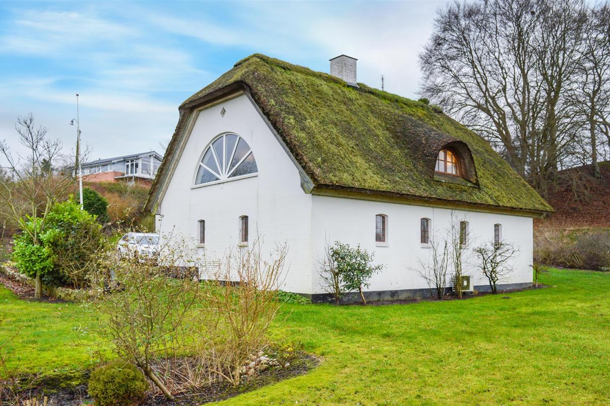 Gezellig vakantiehuis met rieten dak en panoramisch uitzicht aan het Mariager Fjord.