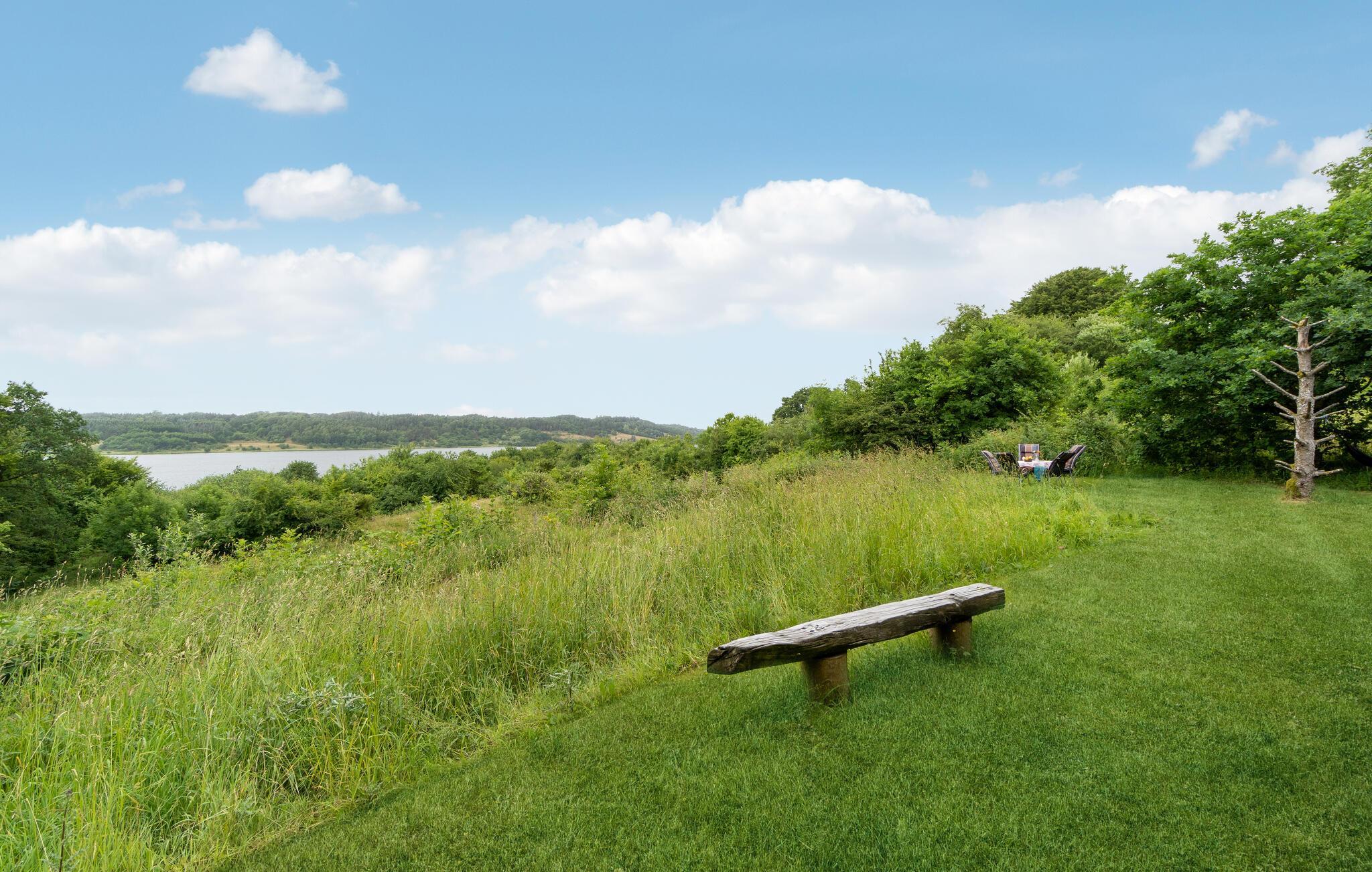 Rustieke blokhut met panoramisch uitzicht op Mariager Fjord, perfect voor een ontspannen vakantie met het gezin.