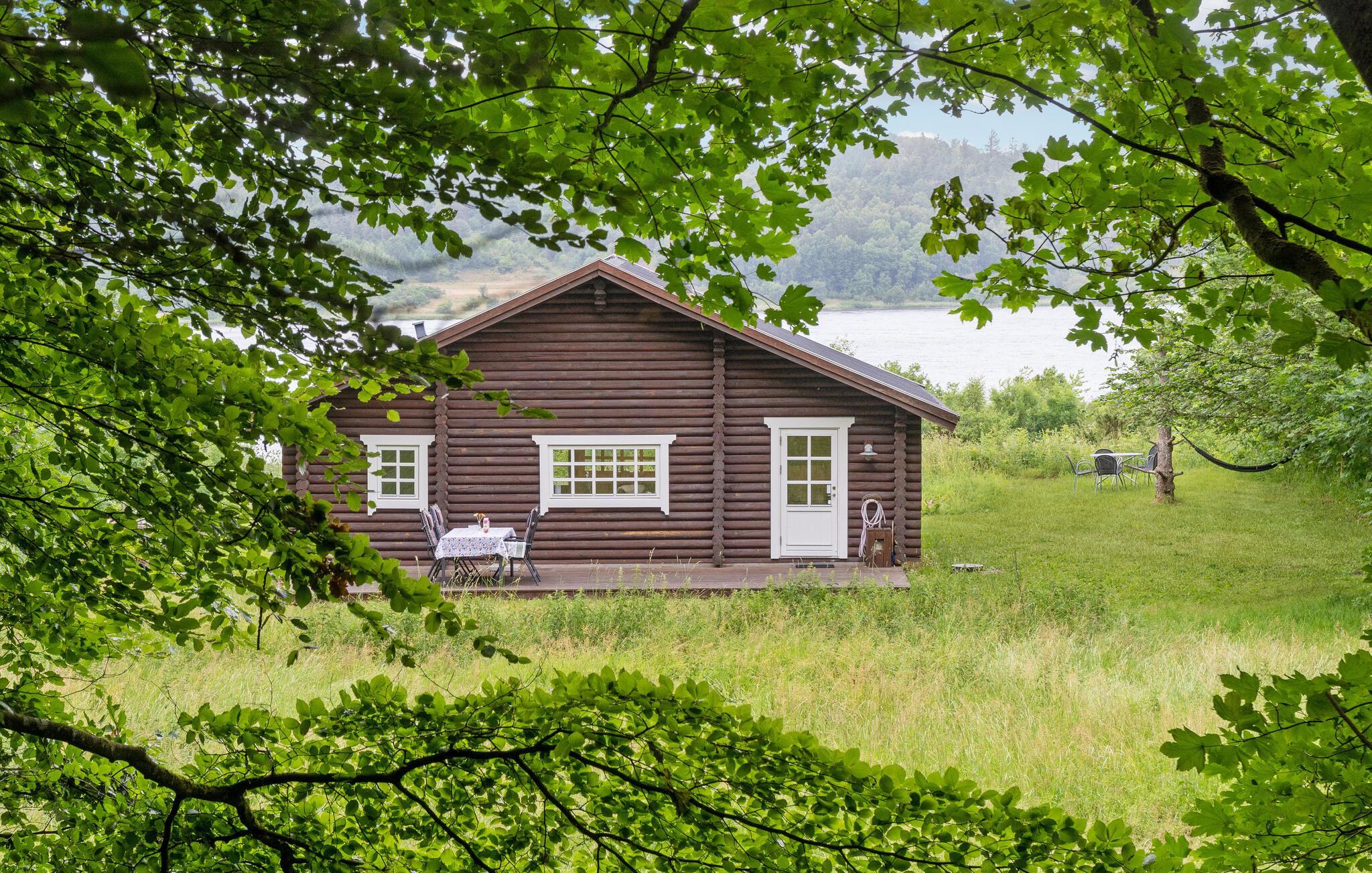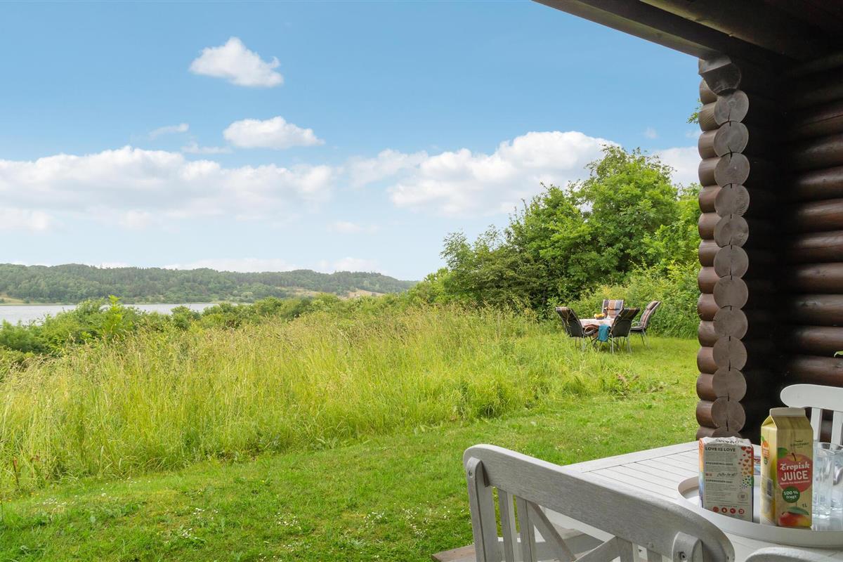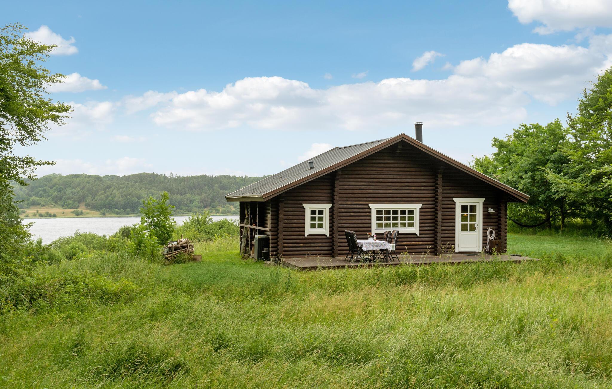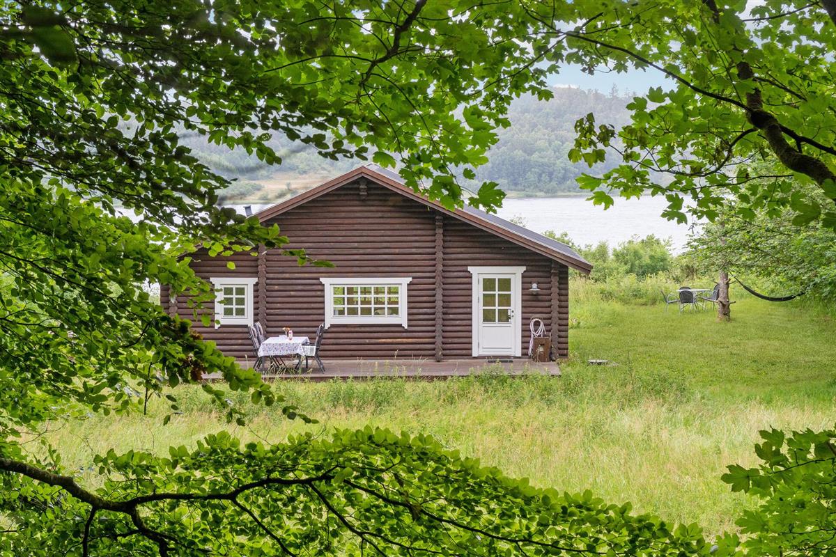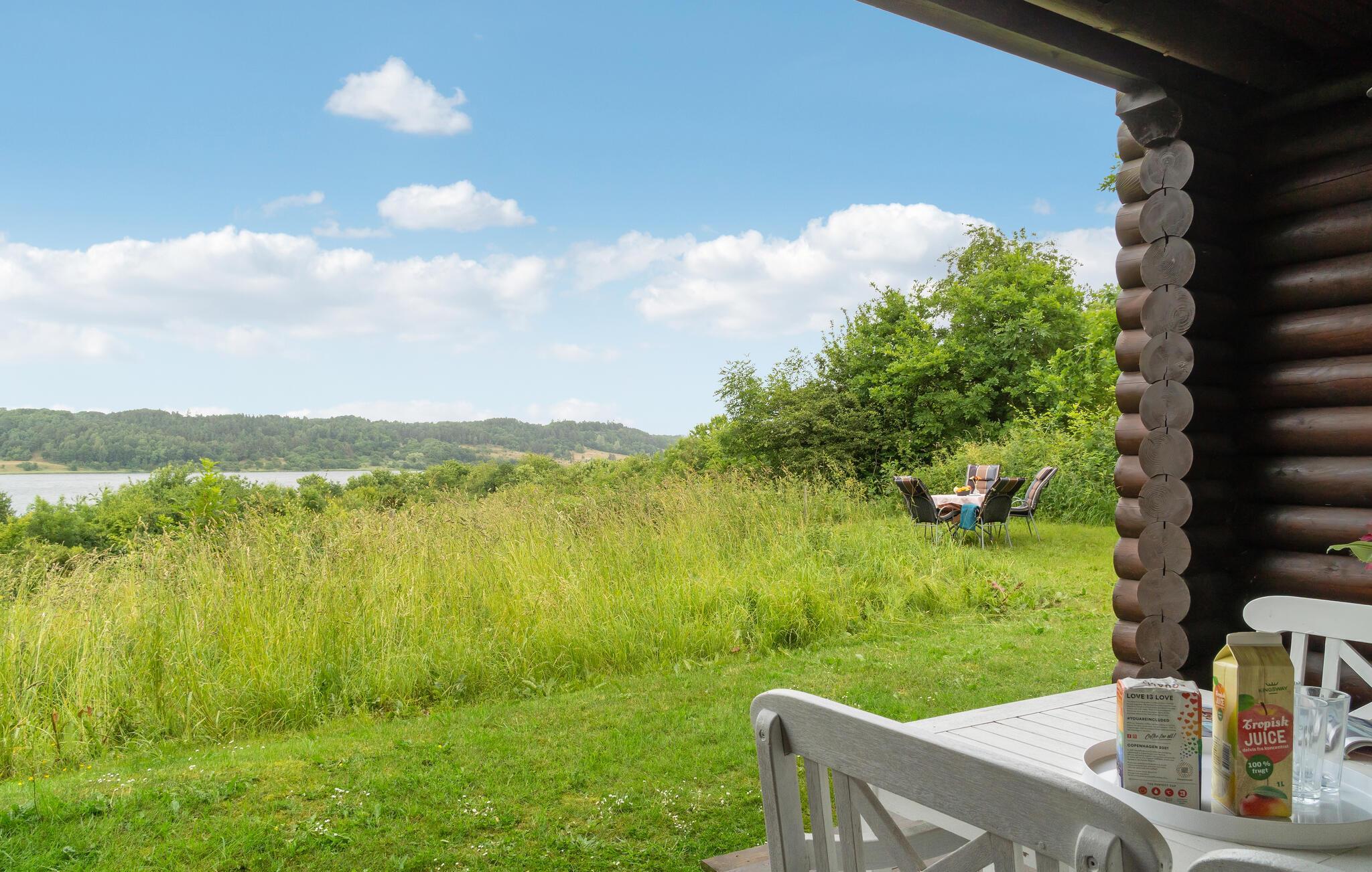 Rustieke blokhut met uitzicht op de Mariager Fjord.