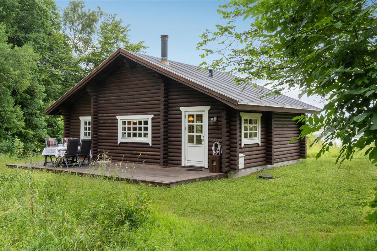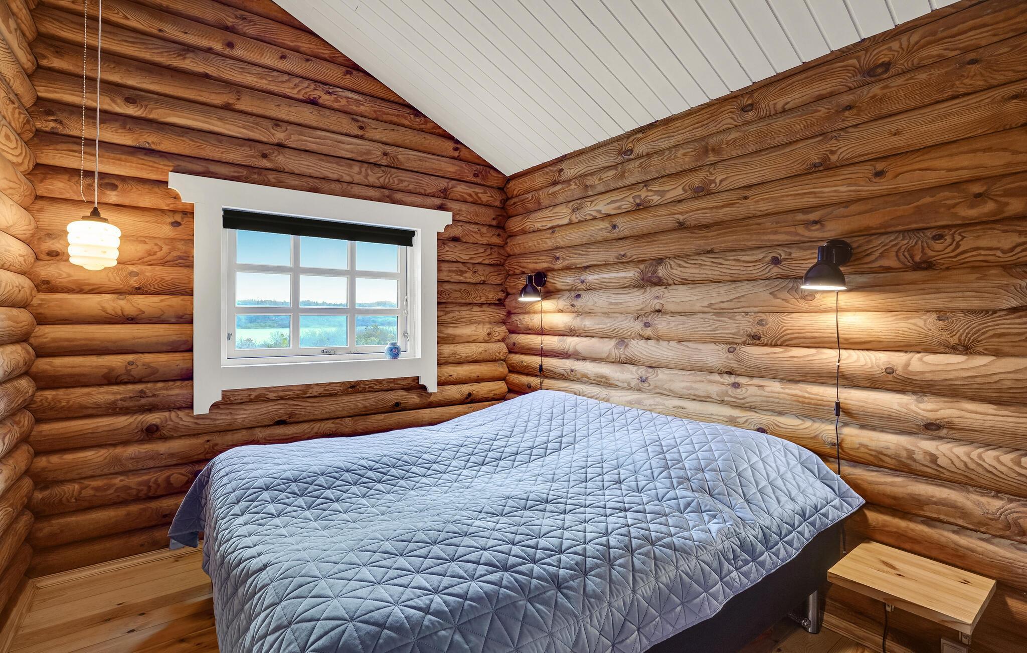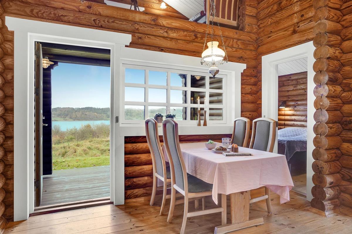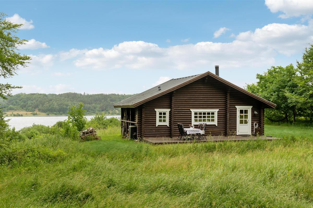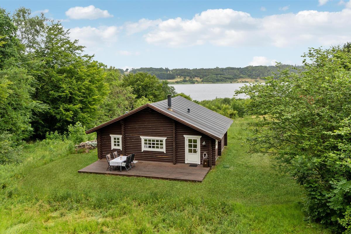 Rustieke blokhut met uitzicht op de Mariager Fjord.
