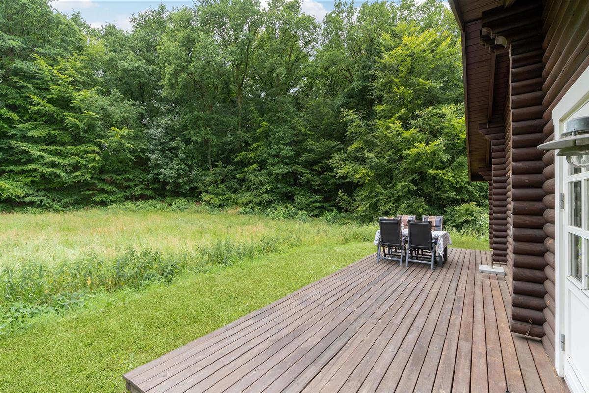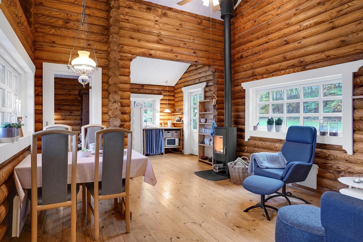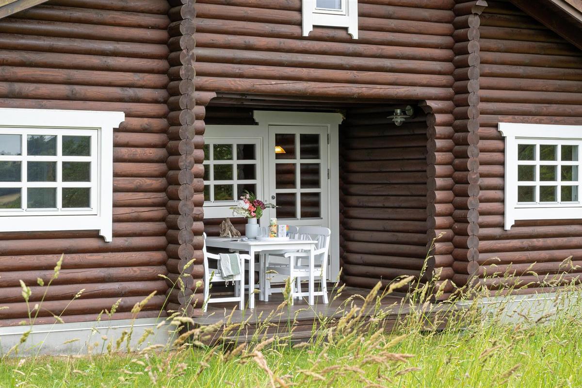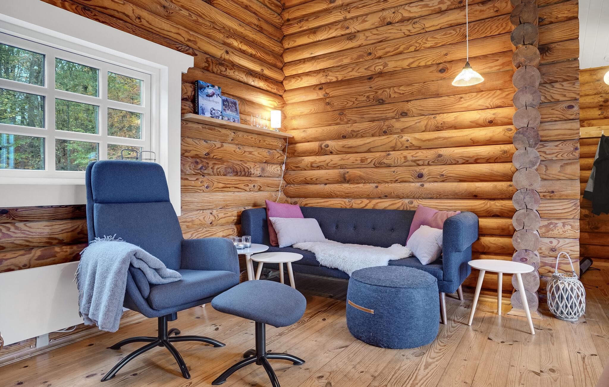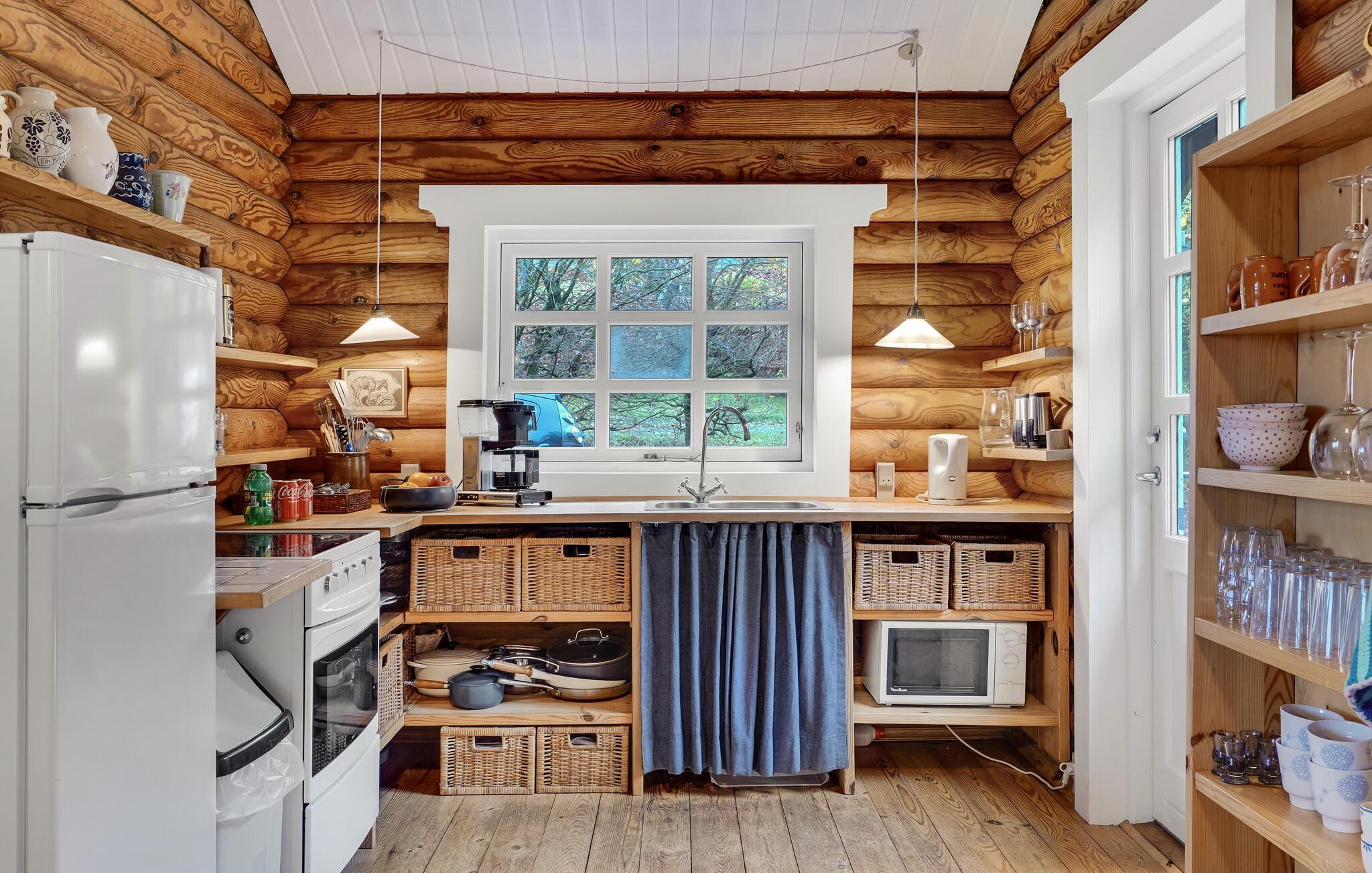 Rustieke blokhut met uitzicht op de Mariager Fjord.