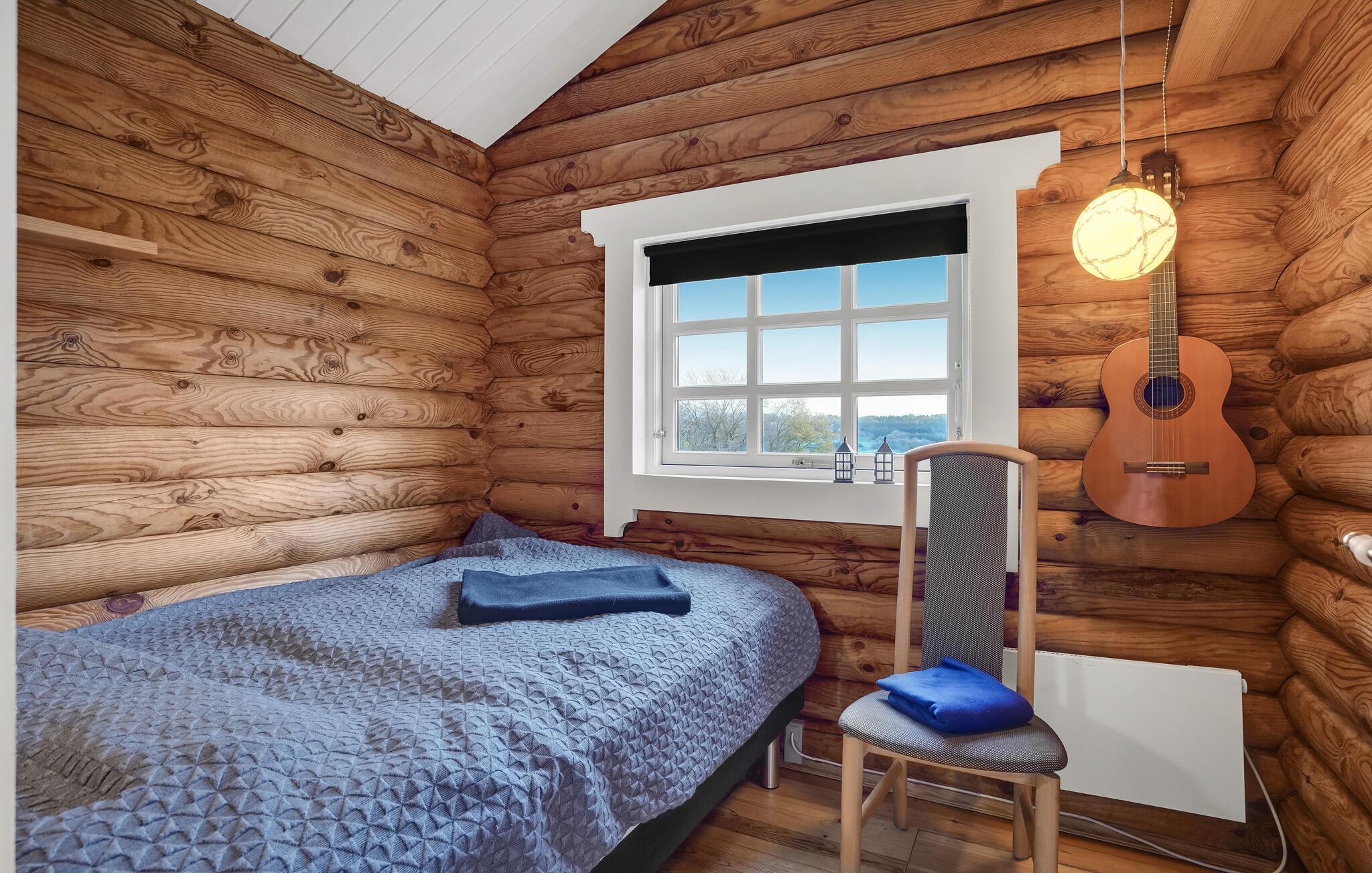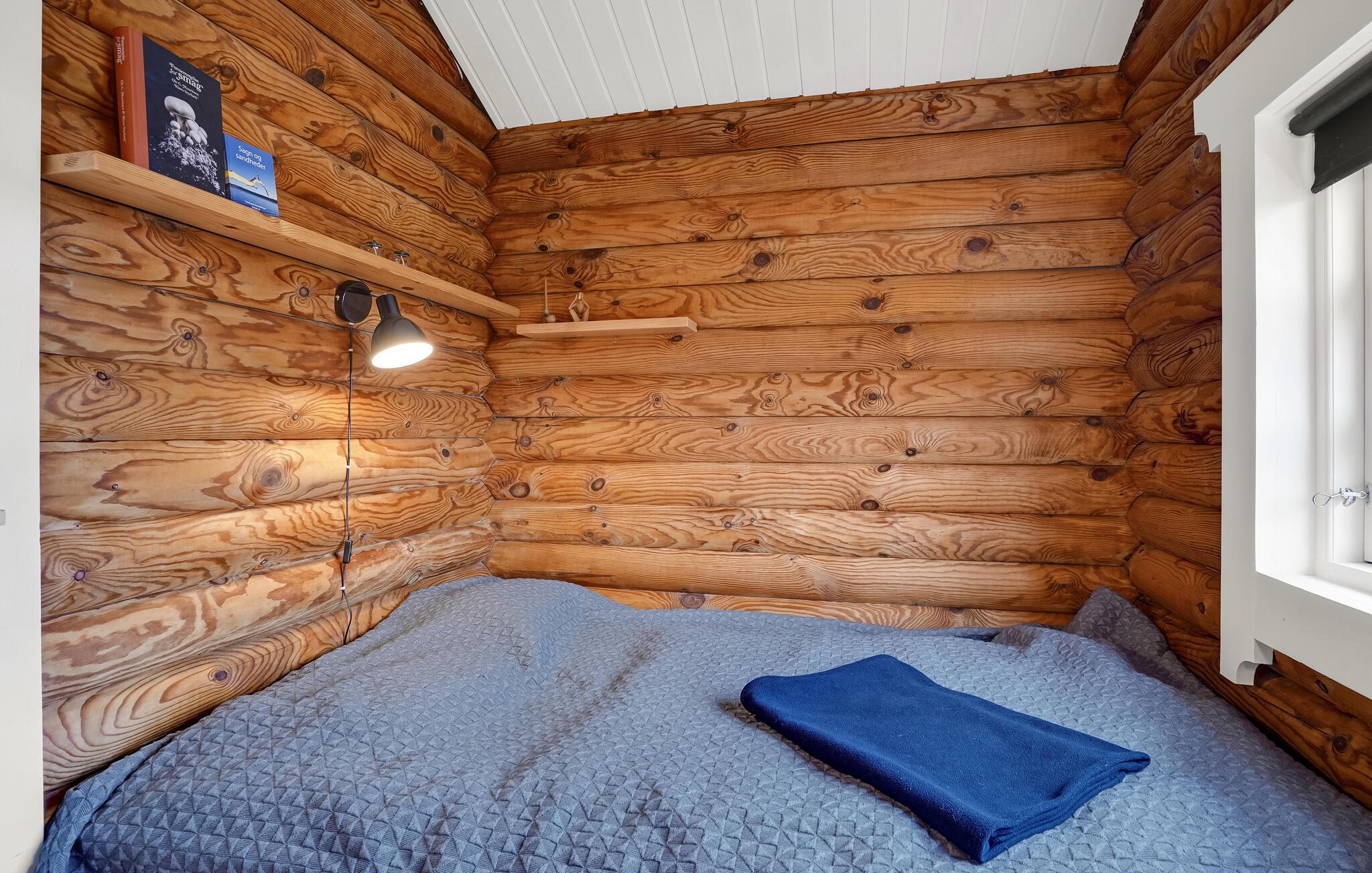 Welkom in deze compacte en gezellige blokhut. Hier kunt u het uzelf comfortabel maken met de charme van de blokhut, samen met uw kleine gezin. Speel samen bordspellen, lees een goed boek of kijk naar de sterren aan de nachtelijke hemel. In de ochtend geniet u van uw ontbijt op het terras, terwijl u 's avonds uw favoriete gegrilde gerechten eet met uitzicht op de fjord.