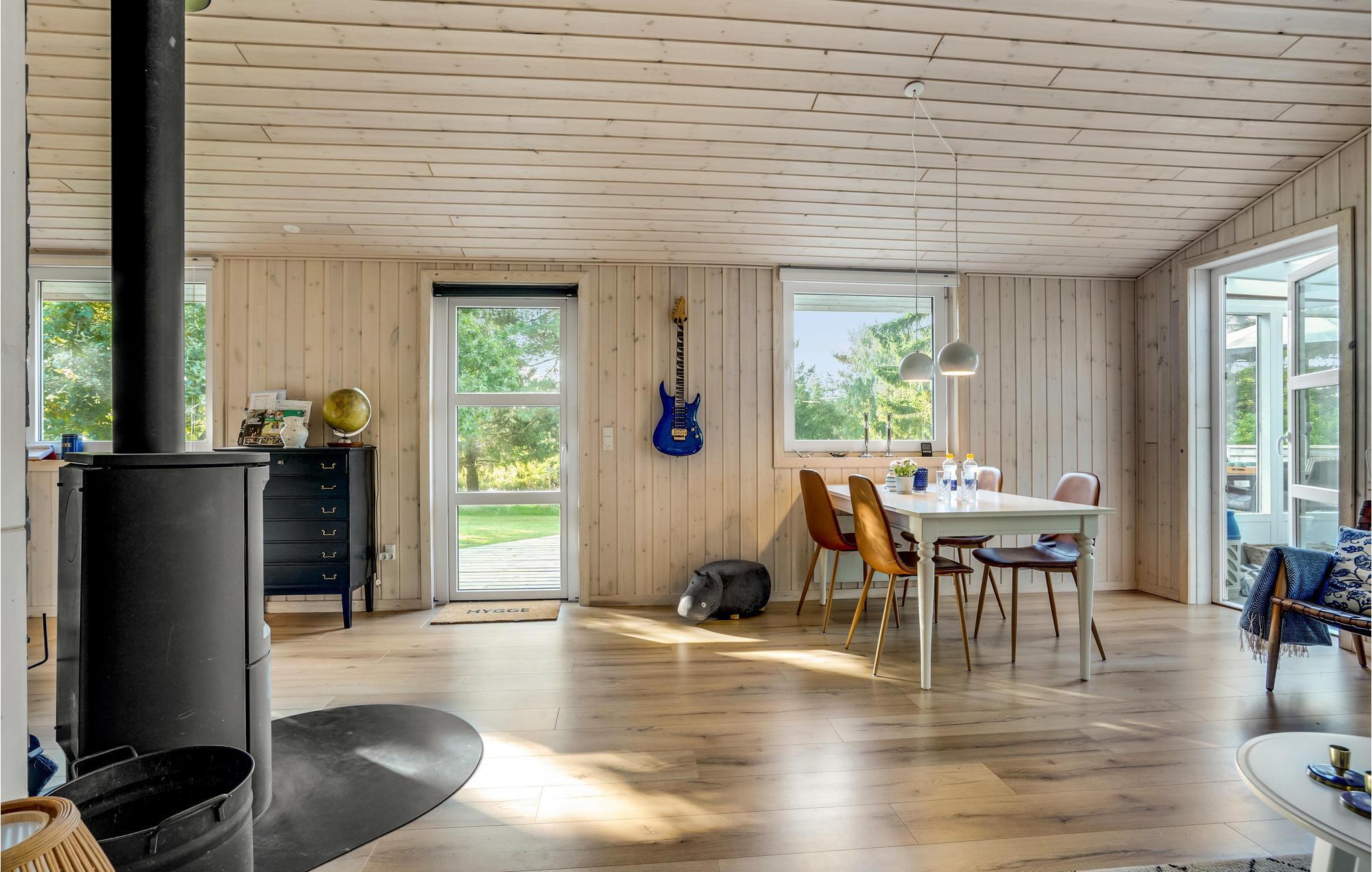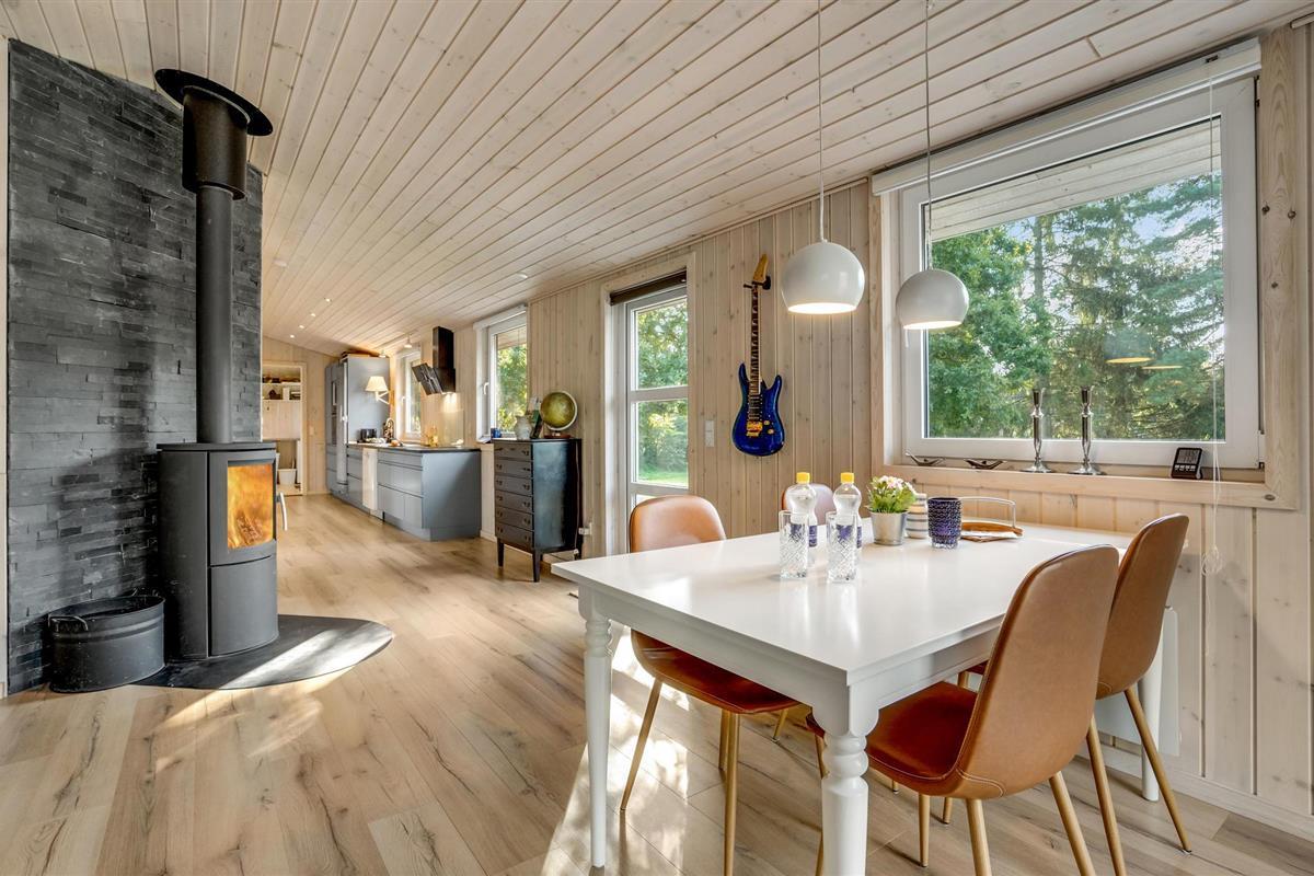 Dicht bij de Mariager Fjord vindt u dit mooie vakantiehuis. Het huis ligt op een groot, beschermd natuurperceel met groene ruimte en oude bomen en nodigt u uit om ontspannende uren met de familie door te brengen. Binnen wachten volledig uitgeruste kamers op u, die een lichte en gezellige indruk geven. Geniet van maaltijden in de lichte eethoek of in de serre met uitzicht op het groen.