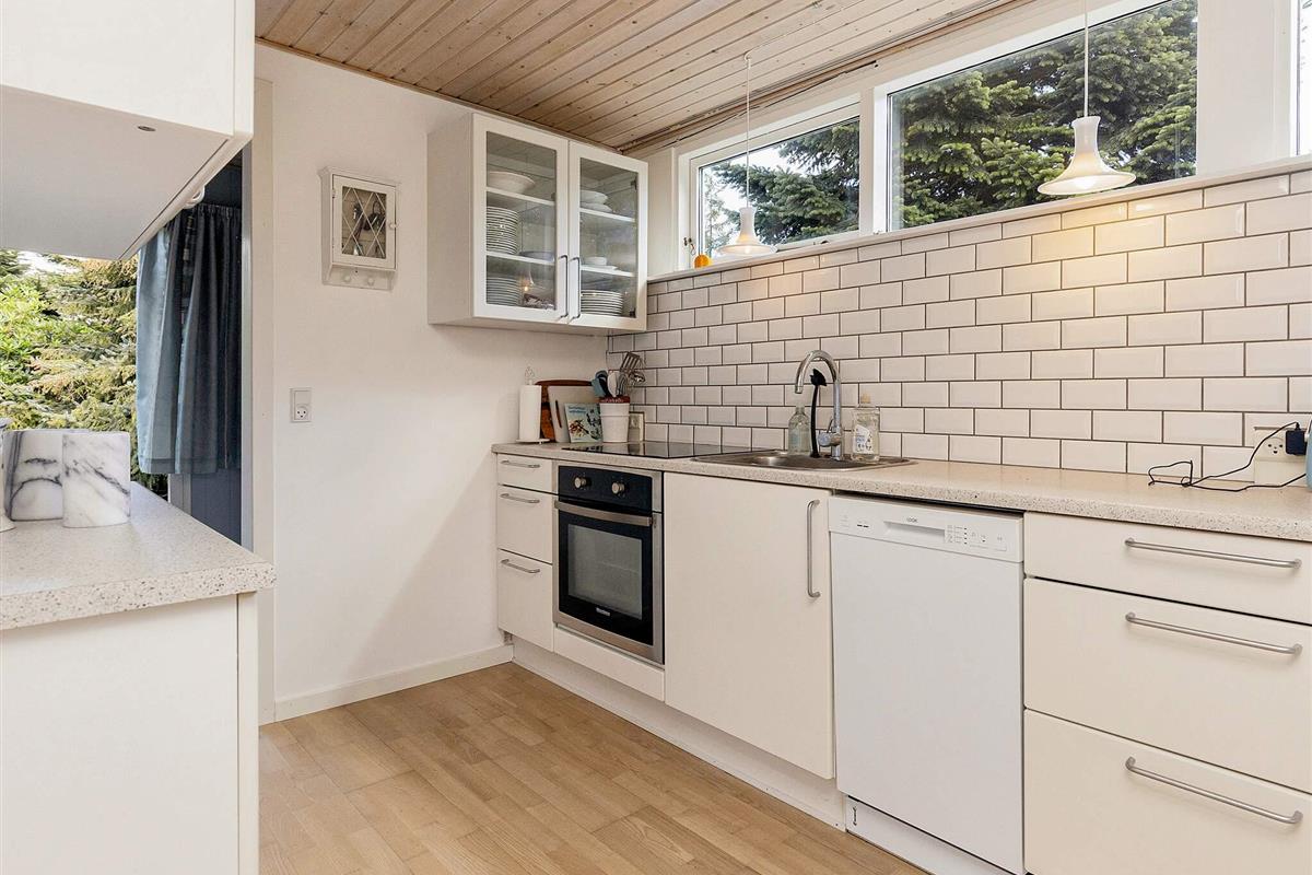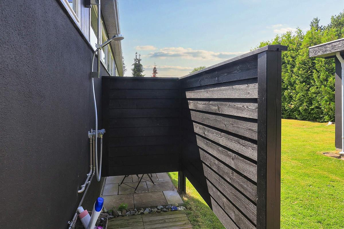Es gibt zwei gute Schlafzimmer mit jeweils einem Doppelbett im Haus. Zudem stehen nebenan auf dem Grundstück im kleineren, hellen Annex zwei weitere Schlafplätze in einem Doppelbett zur Verfügung. Das Ferienhaus hat ein Badezimmer mit Dusche/WC und angenehmer Fußbodenheizung. Außerdem Hochstuhl im Haus sowie Schaukel im Außenbereich für die Kleinsten. Für Sommertage steht eine teils überdachte Terrassenfläche mit Grill bereit.