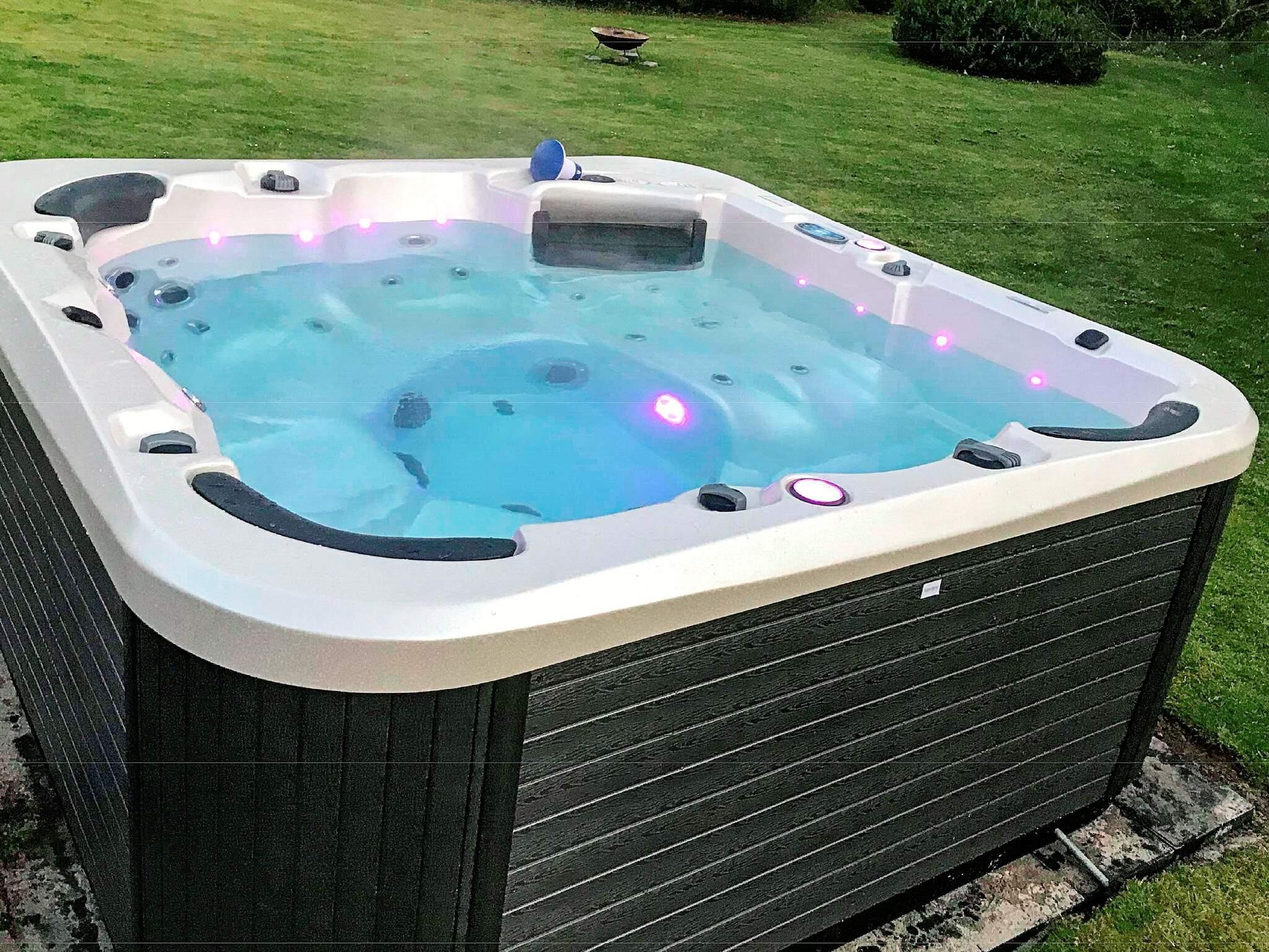 Das Ferienhaus eignet sich mit seinen acht Schlafplätzen für eine große oder auch zwei befreundete Familien und ist innen hell und geräumig. Zur Küchenausstattung gehören z.B. Cerankochfeld, Dunstabzugshaube und Geschirrspüler. Der geräumige Wohnbereich bietet Ausblick zum Naturgrundstück sowie Zugang zur teilweise überdachten Terrasse mit viel Platz für Sonnentage und Grillabende. Dort finden Sie auch den großen Whirlpool für max. sechs Personen, in dem Sie entspannt Platz nehmen und z.B. den herrlichen Ausblick zum abendlichen Sternenhimmel vom warmen Wasser aus genießen können.