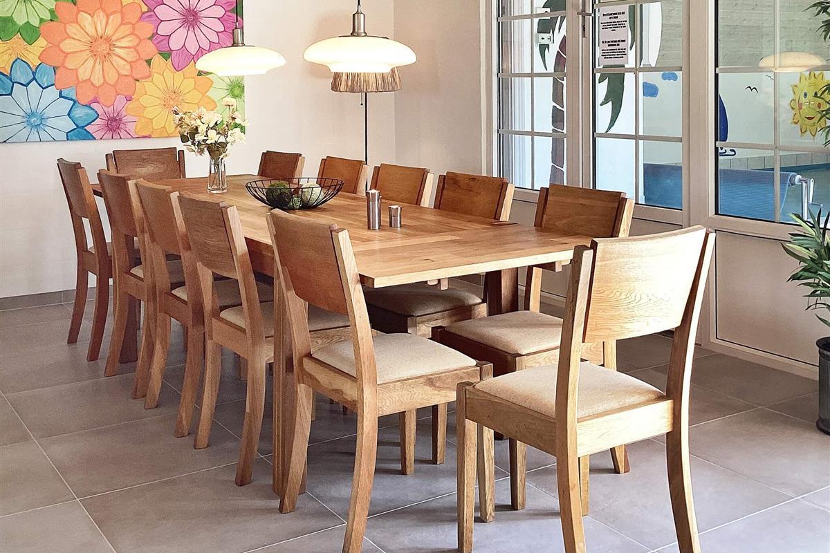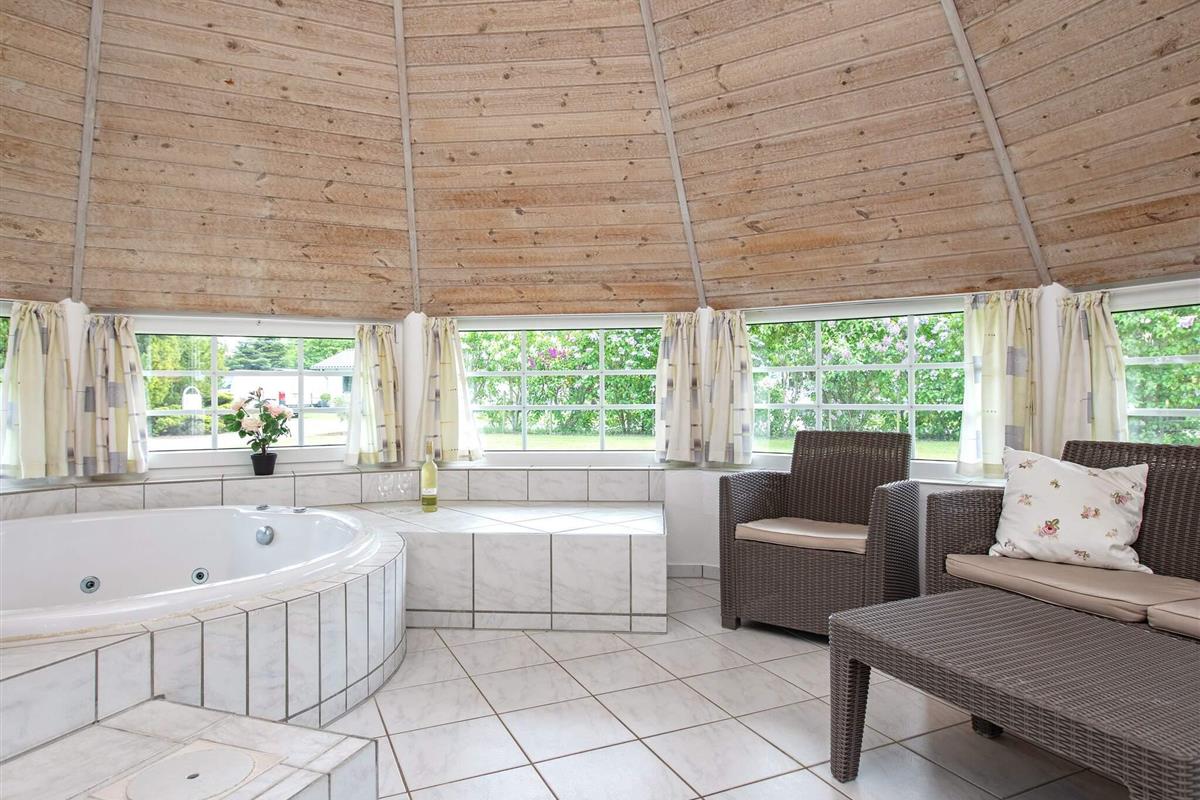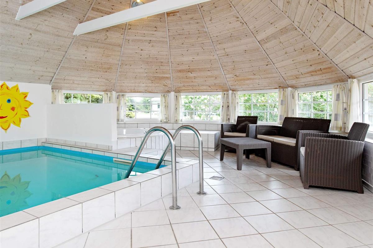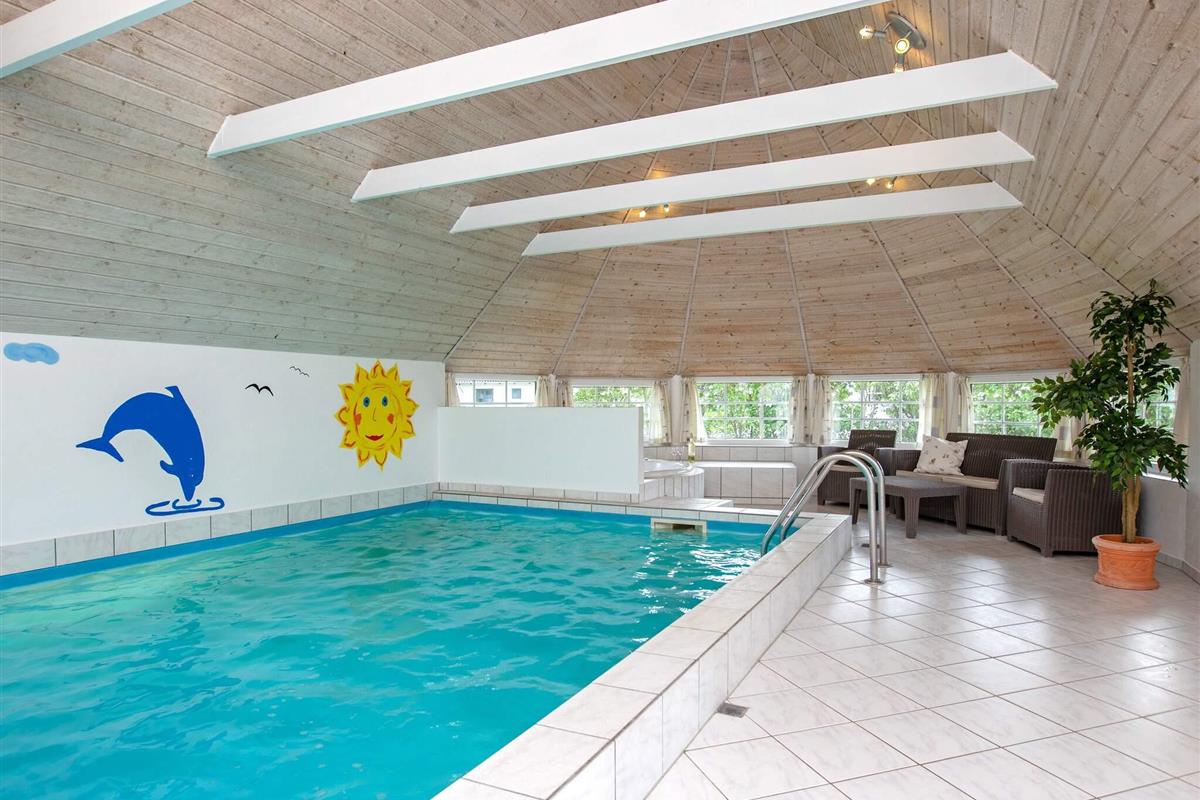 Der Poolbereich lädt mit einem 24 m2 großen Swimmingpool, einem geräumigen Whirlpool für bis zu sechs Personen sowie Zugang zur Sauna ein zu Badespaß mit Groß und Klein.