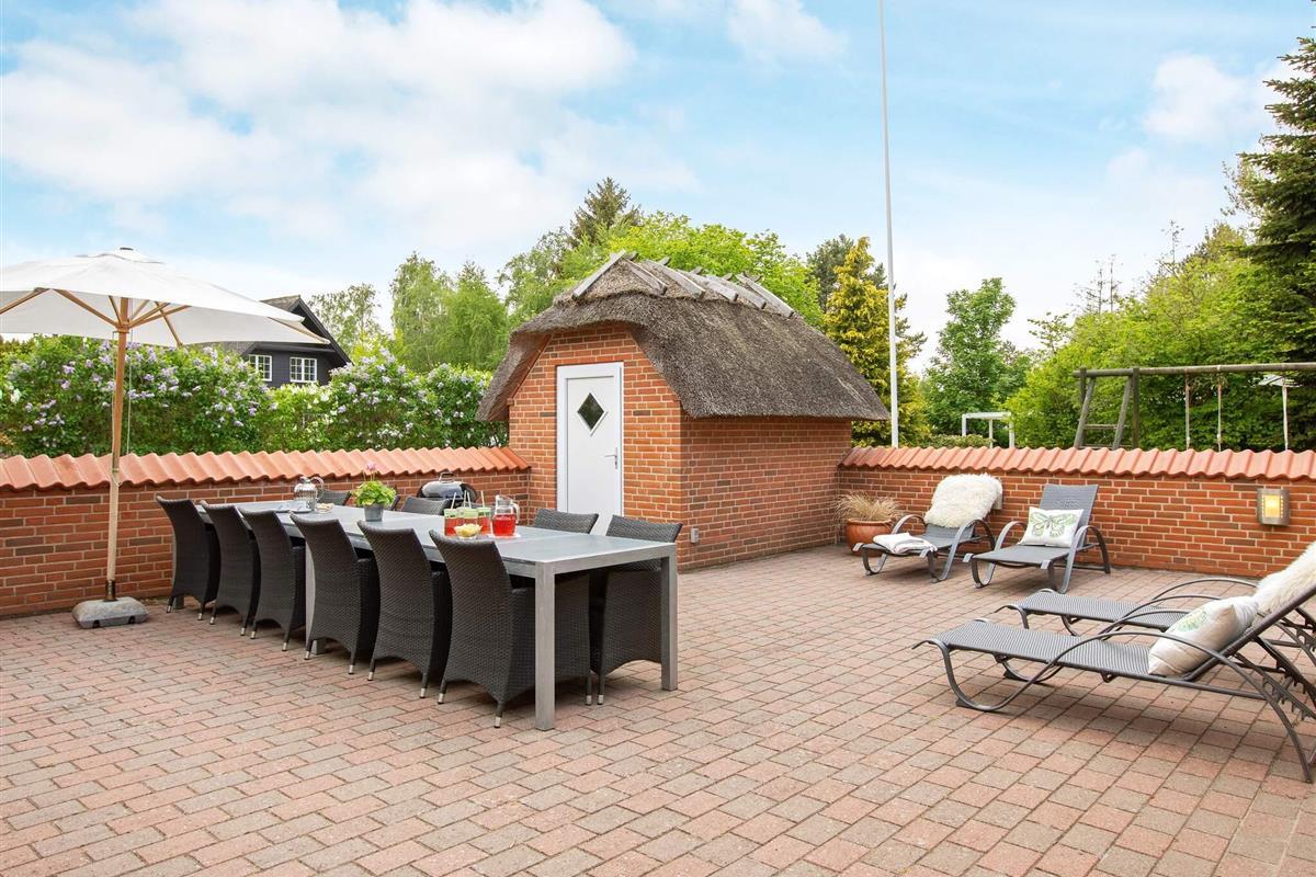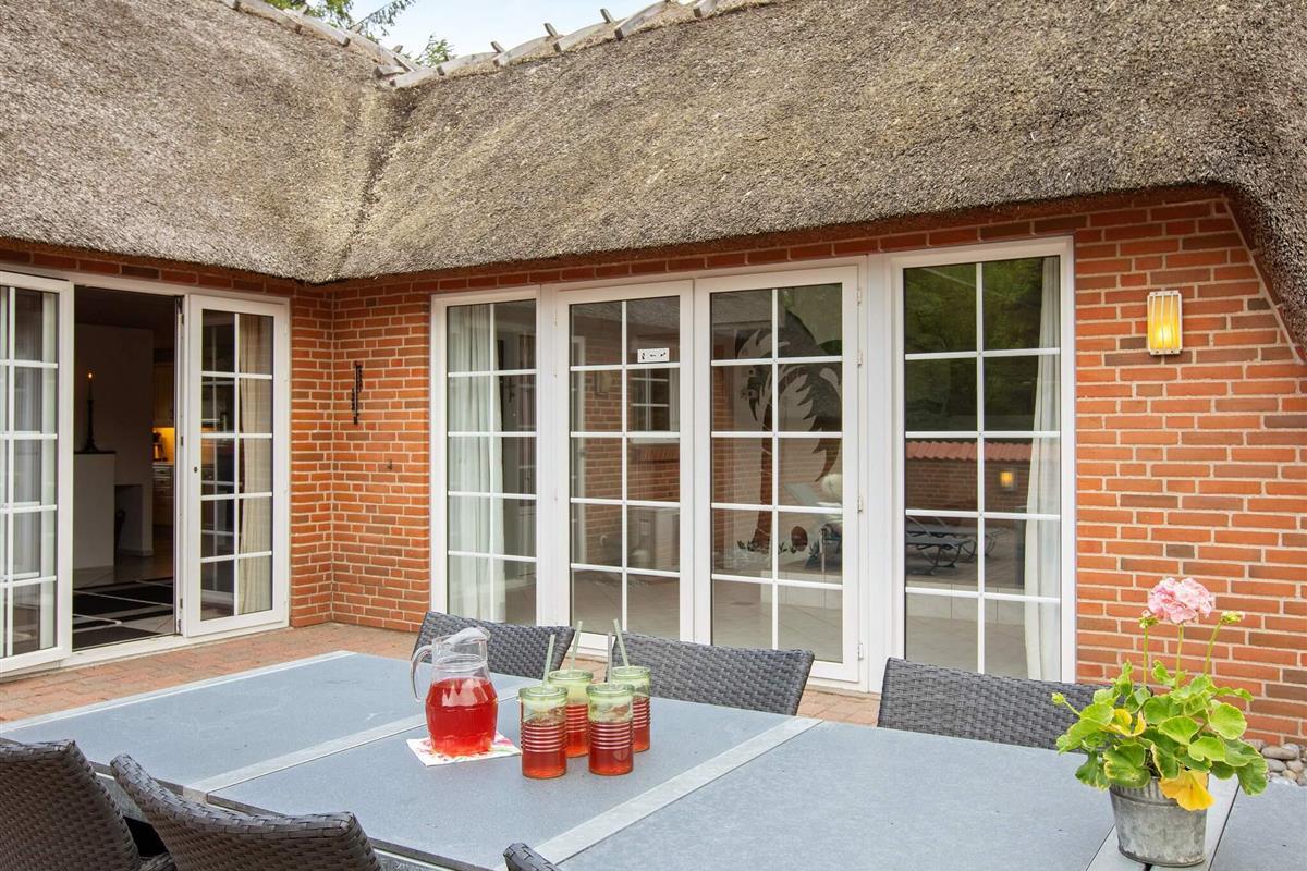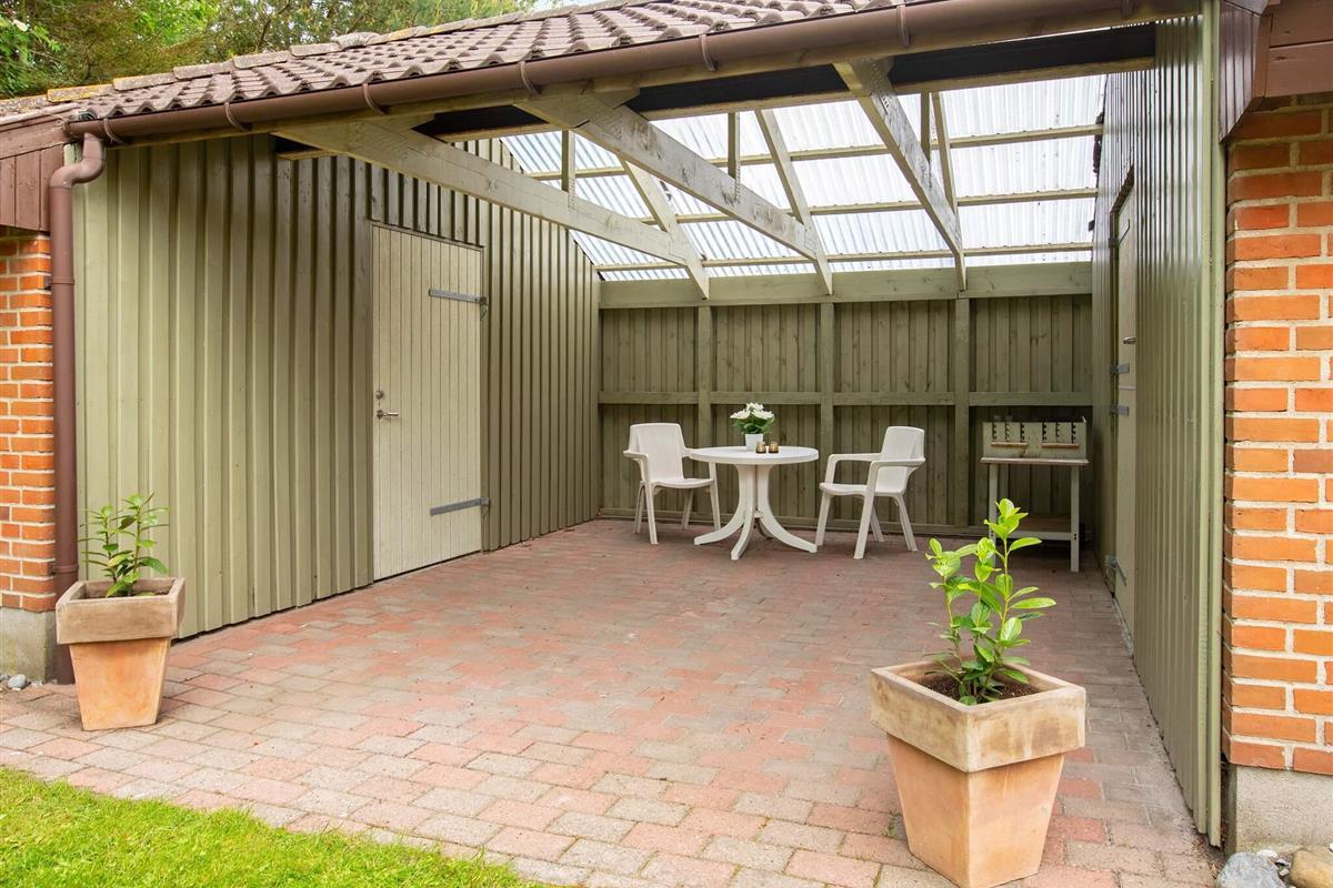 Im Außenbereich steht ein schöner 120 m2 großer Innenhof bereit, in dem Sie immer einen windgeschützten Sitzplatz finden, wenn Sie die Sonne und die Sommertage im Freien genießen möchten.