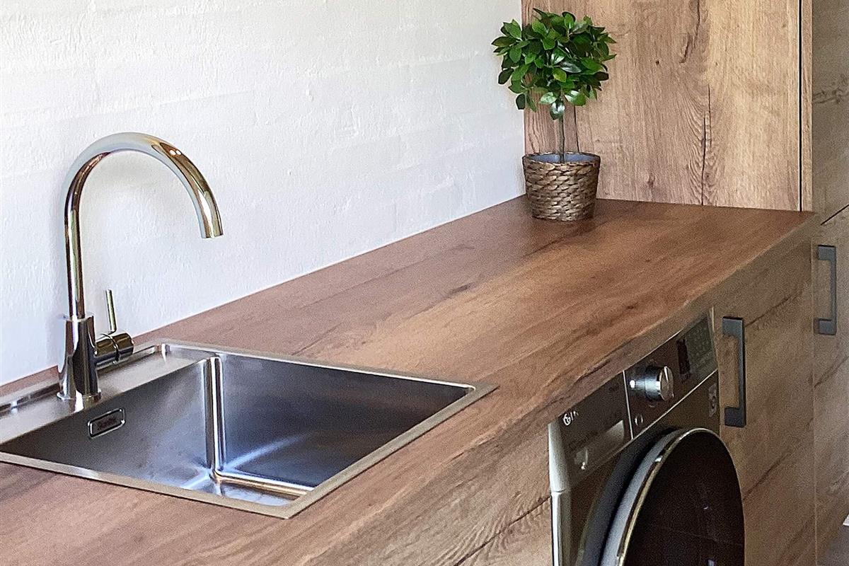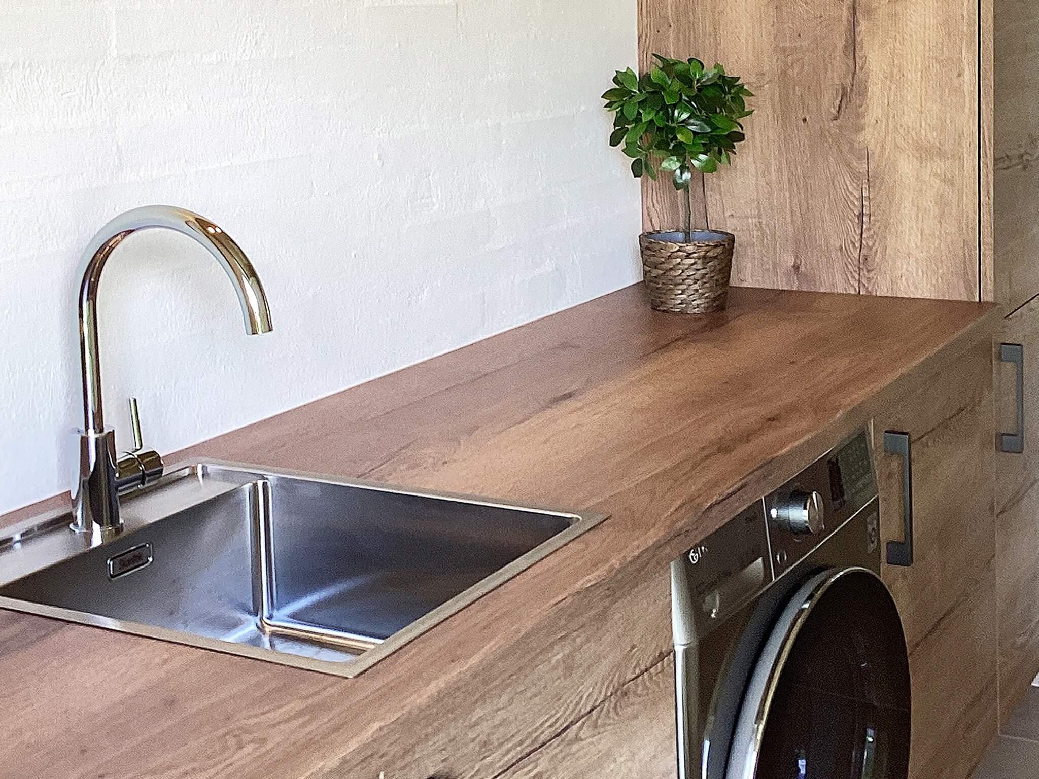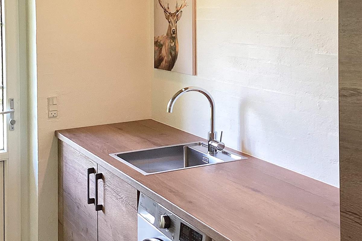 Bad: Waschm, Trockner, WC, Waschb., Dusche, Fußbodenheiz.