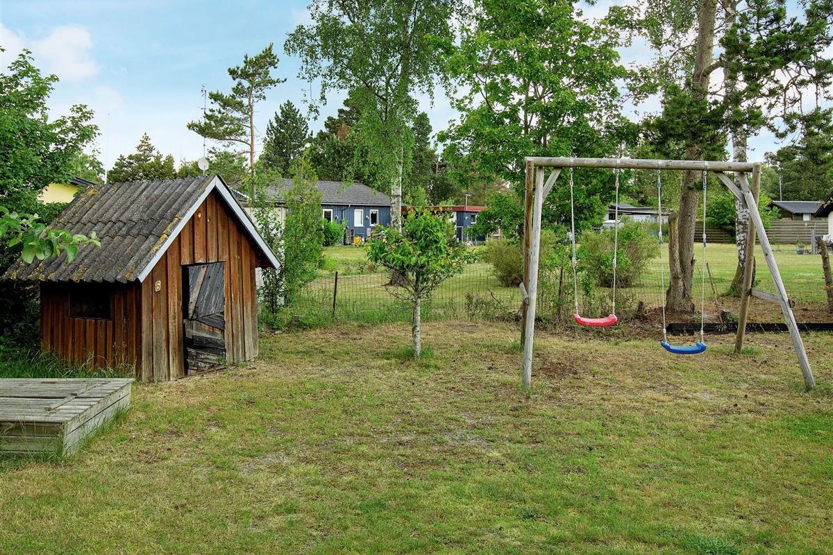 Für Kleinkinder stehen draußen auf dem gut 1.200 m2 großen Naturgrundstück Schaukeln und Sandkasten bereit. Außerdem lädt die Rasenfläche zu Spiel, Sport und Spaß im Freien ein. Während die Kinder sich austoben, können die Eltern sich in der Sonne auf der Terrasse entspannen oder an kühleren Tage die verglaste Veranda des Hauses nutzen. Das Ferienhaus selbst ist gut isoliert und kann mit seiner Ölheizung und dem Holzofen das ganze Jahr über genutzt werden. Carport am Haus.