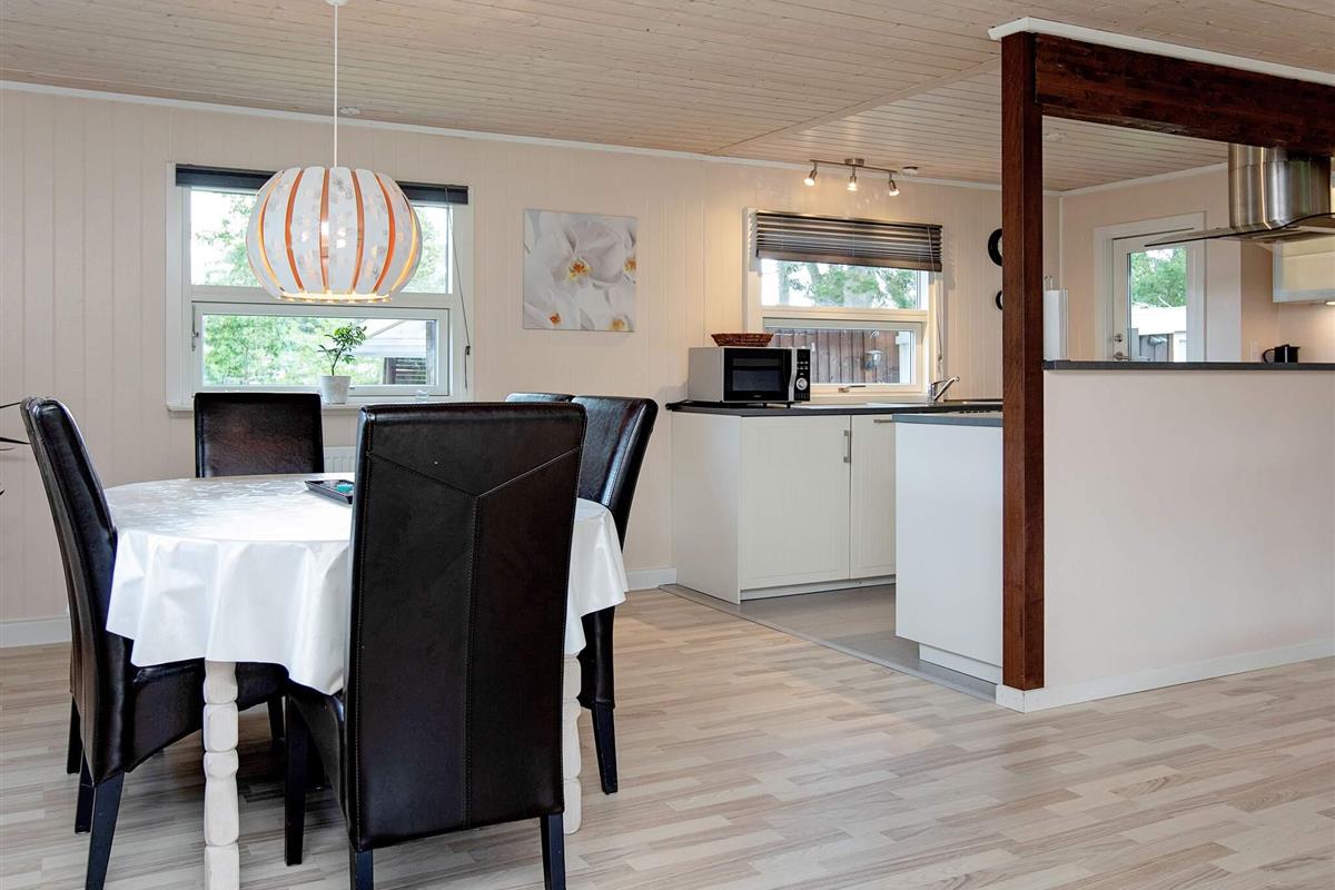 Im Haus gibt es einen offenen Küchen-/Wohnbereich für das Familienleben, inklusive Ess- und Sitzecke sowie Holzofen für kühlere Abende. Die Einrichung ist hell und wohnlich gestaltet. Das Ferienhaus hat drei Schlafzimmer mit jeweils zwei Schlafplätzen. Das modernisierte Badezimmer bietet u.a. angenehme Fußbodenheizung sowie Waschmaschine und Trockner. Zur technischen Ausstatung gehören WLAN, TV mit einigen deutschen Sendern zur Auswahl sowie eine PlayStation3.