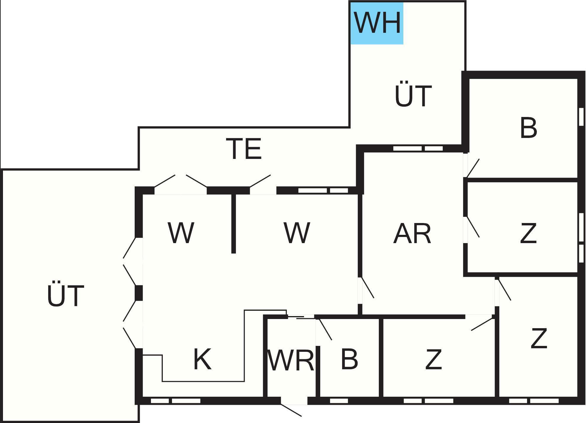 Off. Küche: E-Herd, Kühlschr., Gefriertruhe 60-99 l., Mikrow., Abzugsh., Kaffeem., Spülm.