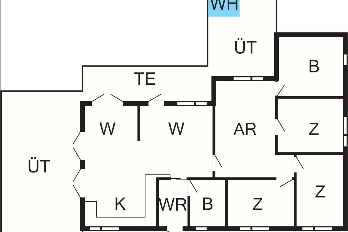 Bad: Waschm, Trockner, WC, Waschb., Außendusche, Dusche, Fußbodenheiz.