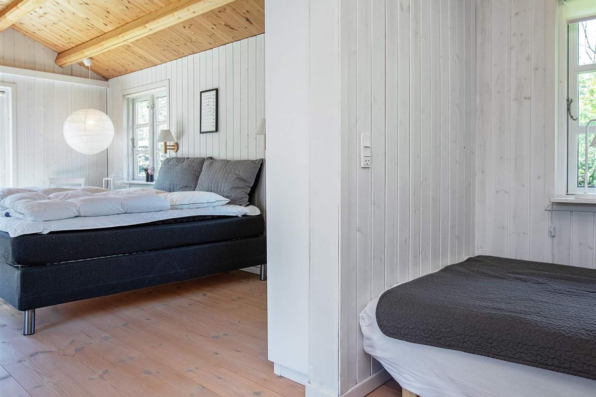 Im Ferienhaus zudem zwei Schlafzimmer mit je zwei Schlafplätzen in einem Doppelbett sowie ein drittes Zimmer mit vier Schlafplätzen in einem normal breiten und einem etwas schmaleren Doppelbett. Badezimmer mit WC, Waschbecken, Dusche und Fußbodenheizung. Kinderbett für die Kleinen. Waschmaschine im Schuppen. Auf dem Grundstück Fußballtor für Spiel uund Spaß sowie Grill für die schönen Abende. Zudem Gartenmöbel und einige Liegen.