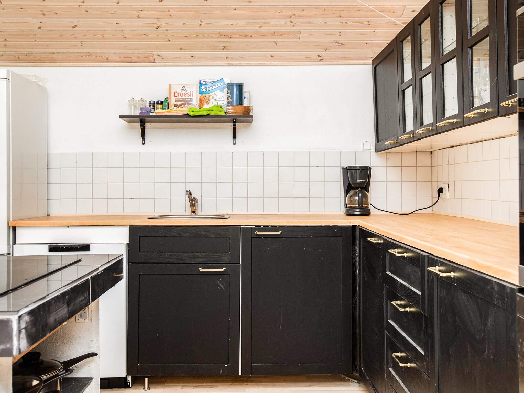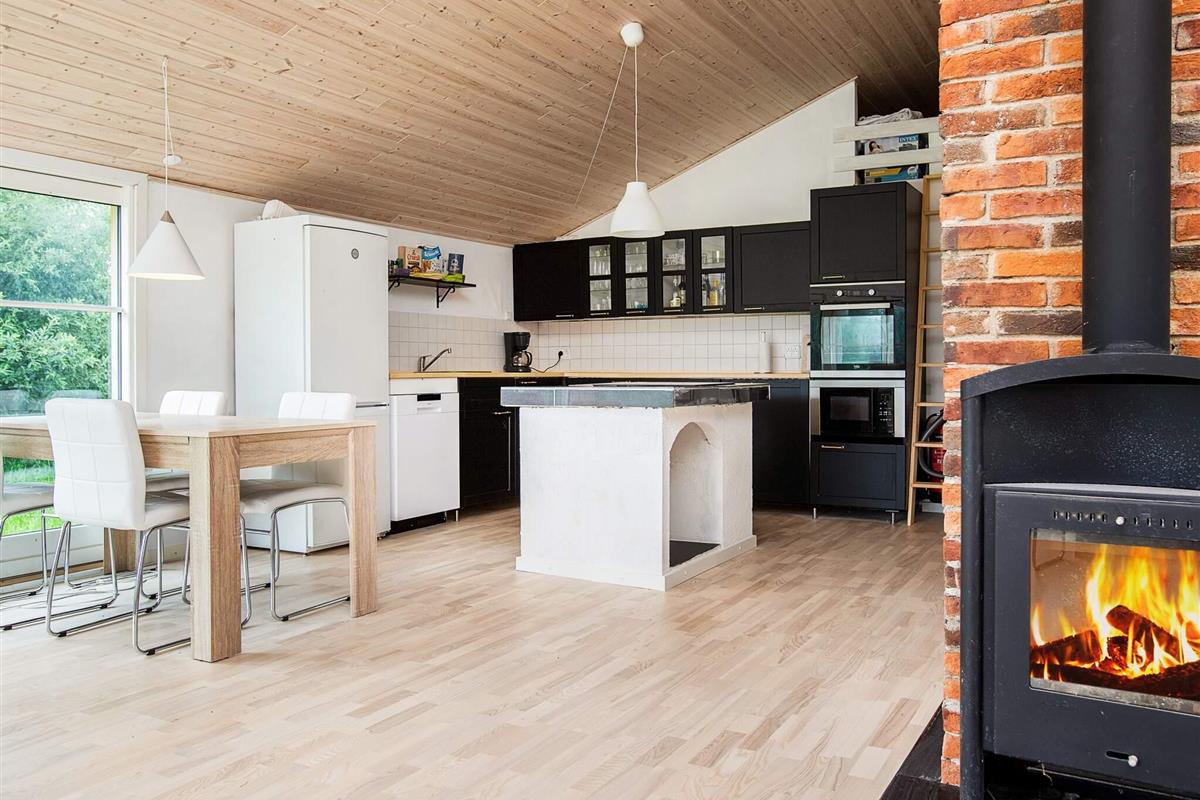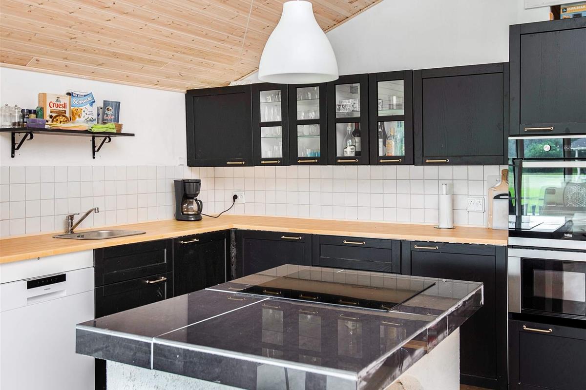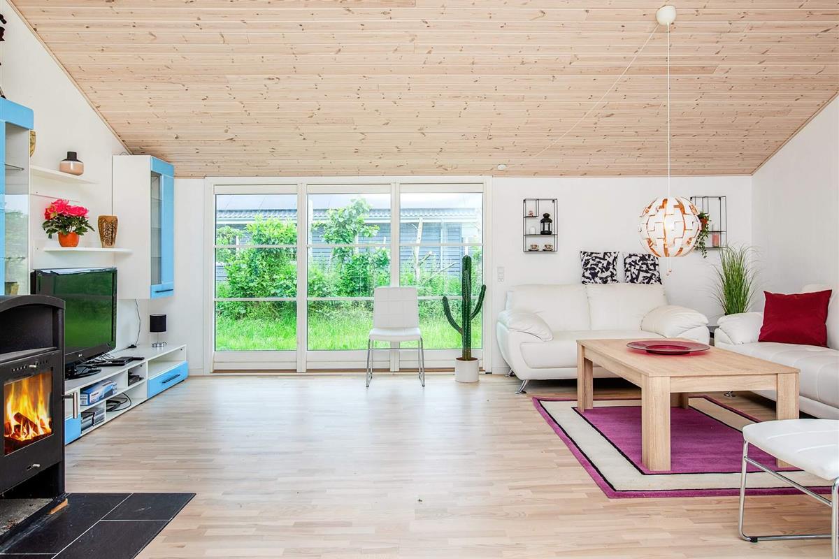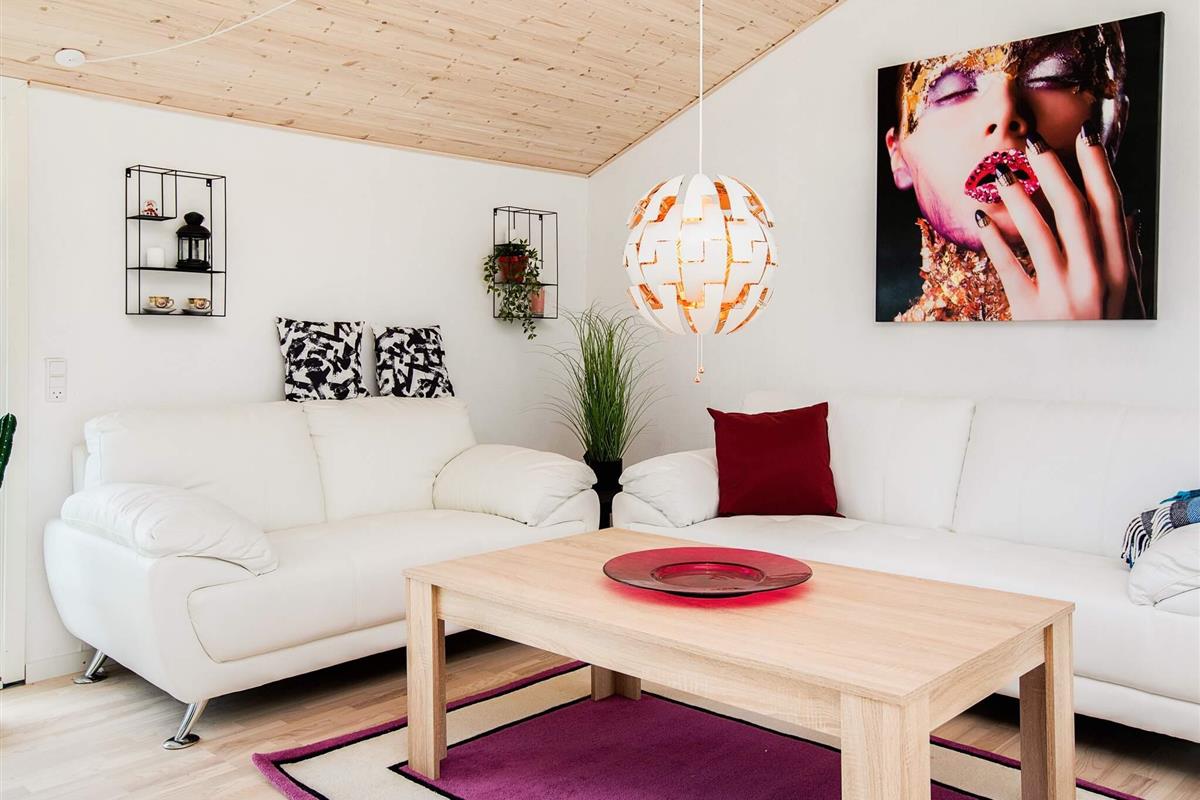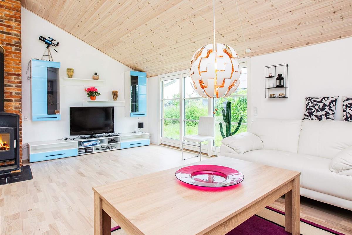 Das Ferienhaus verfügt über ein kombiniertes Wohn- und Esszimmer in offener Verbindung zur Küchenzeile mit Kochinsel. Badezimmer mit Dusche/WC und Waschmaschine. Außerdem zwei Schlafzimmer mit je einem Doppelbett und ein Hems oben unter dem Dach mit zwei Schlafmöglichkeiten. Das Ferienhaus wird mit einer klimafreundlichen Wärmepumpe beheizt.