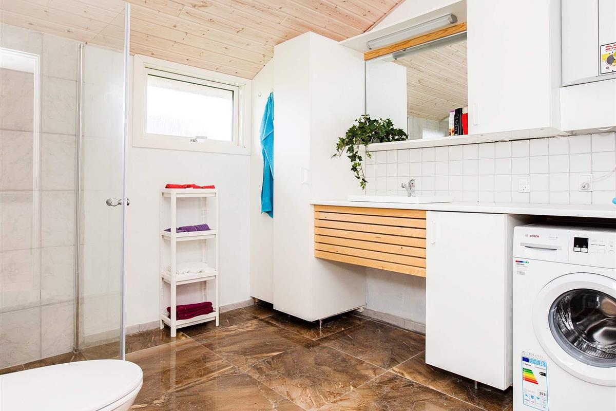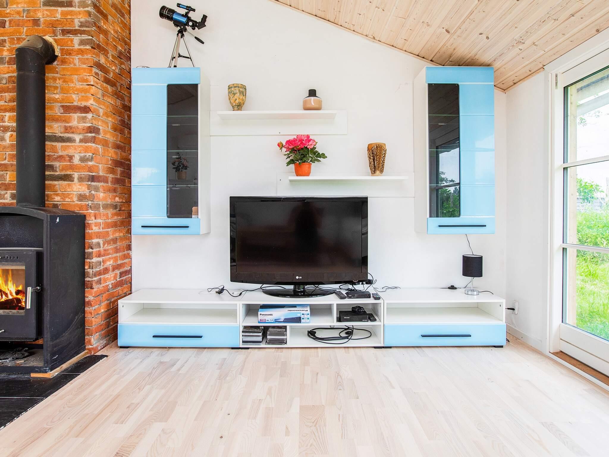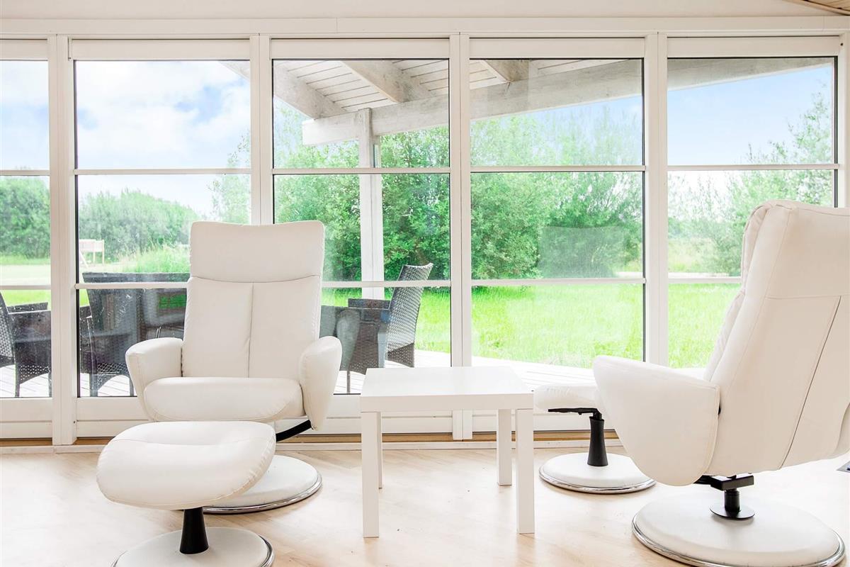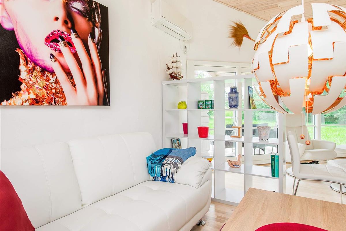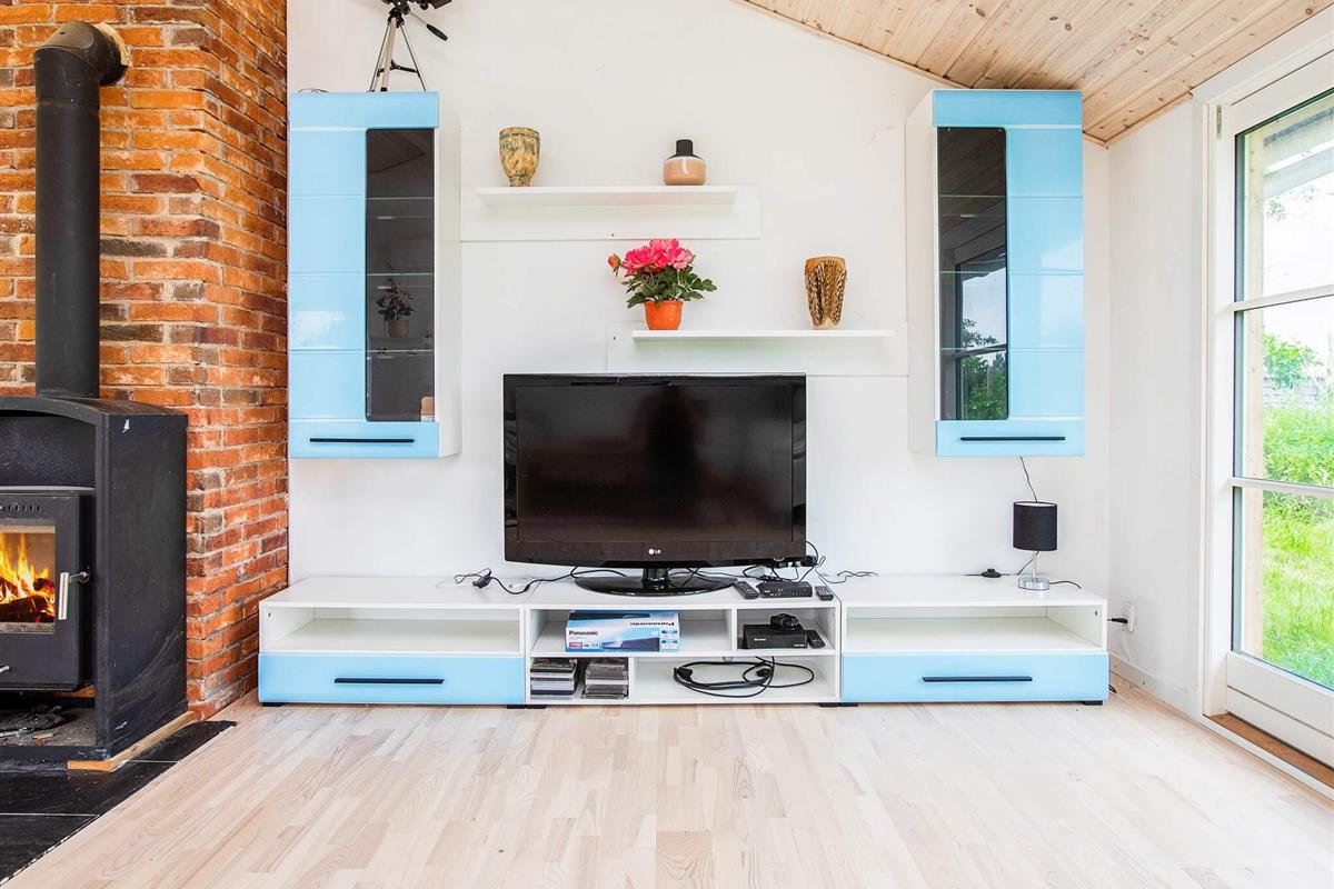 Das Ferienhaus verfügt über ein kombiniertes Wohn- und Esszimmer in offener Verbindung zur Küchenzeile mit Kochinsel. Badezimmer mit Dusche/WC und Waschmaschine. Außerdem zwei Schlafzimmer mit je einem Doppelbett und ein Hems oben unter dem Dach mit zwei Schlafmöglichkeiten. Das Ferienhaus wird mit einer klimafreundlichen Wärmepumpe beheizt.