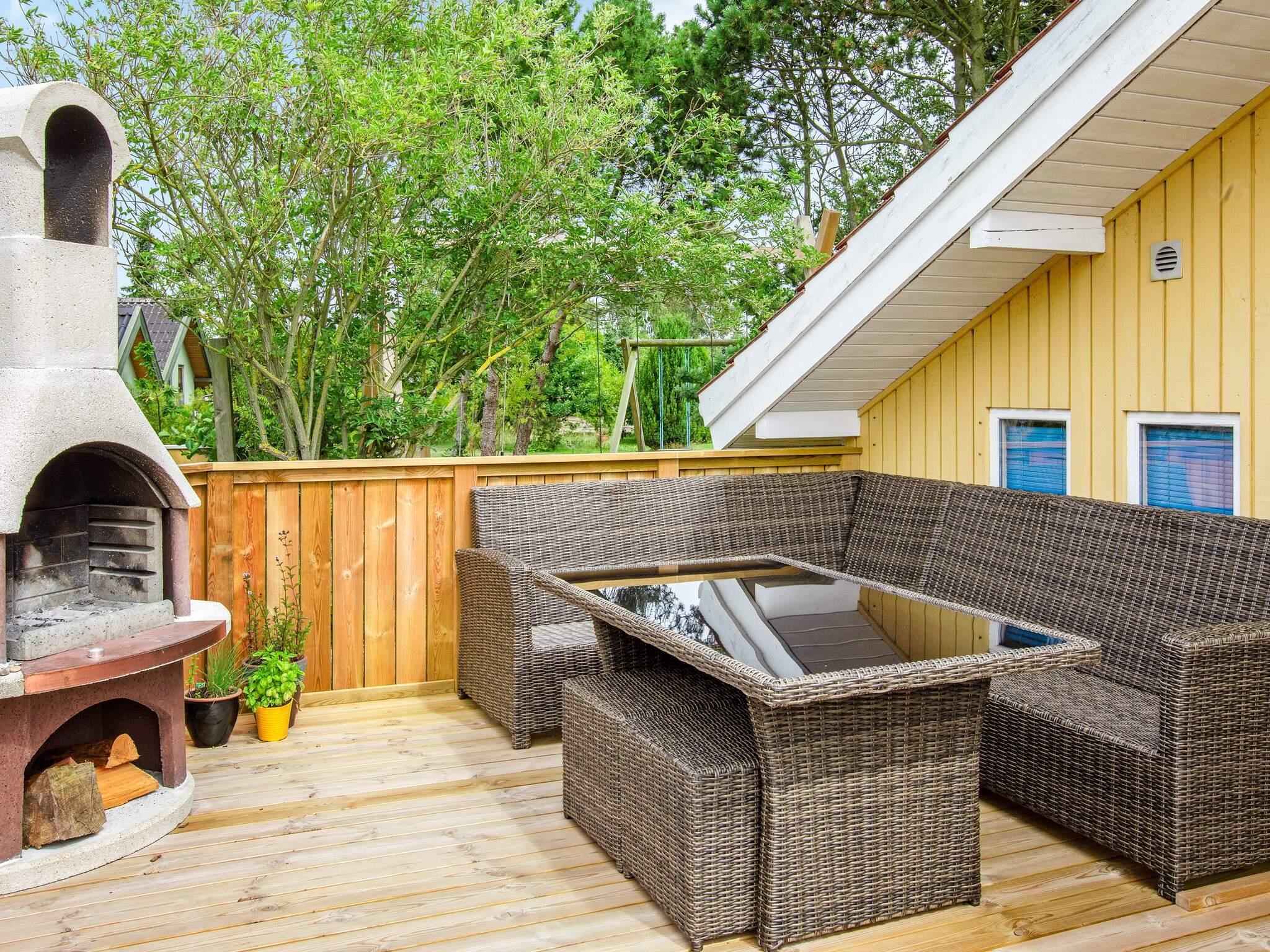 Und: Terrasse, Carport, E-Heiz., Luft-Luft-Wärmepumpe, Spielgeräte, Grill, Naturgrundst. m. Bäumen 1200 m2, moderne Möblierung, Ferienhausgebiet, Nichtraucherhaus