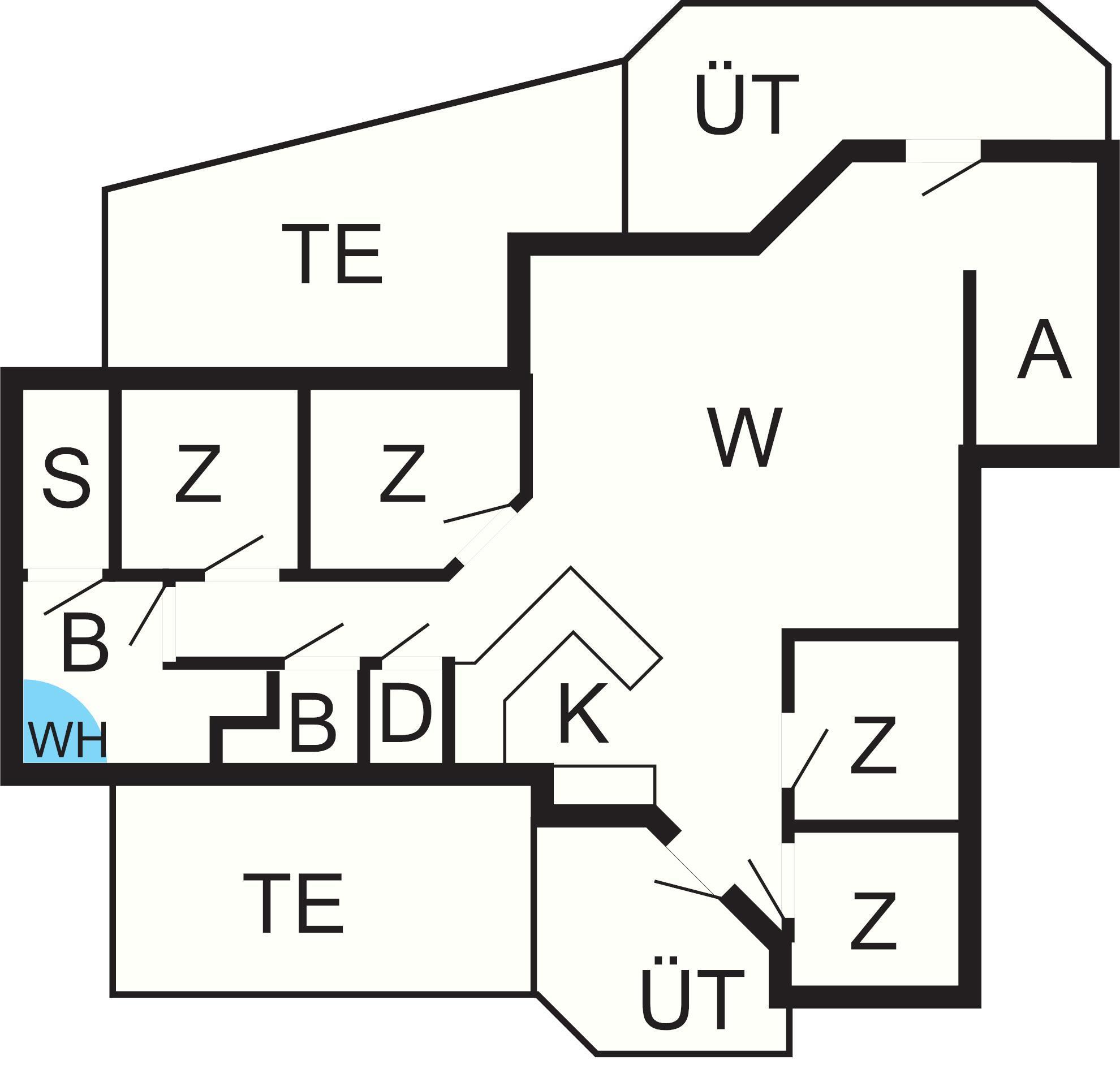 4 Schlafz.: (1DB)+(1DB)+(1DB)+(2B), Kinderbett