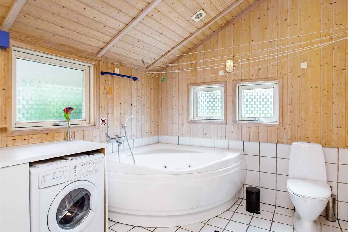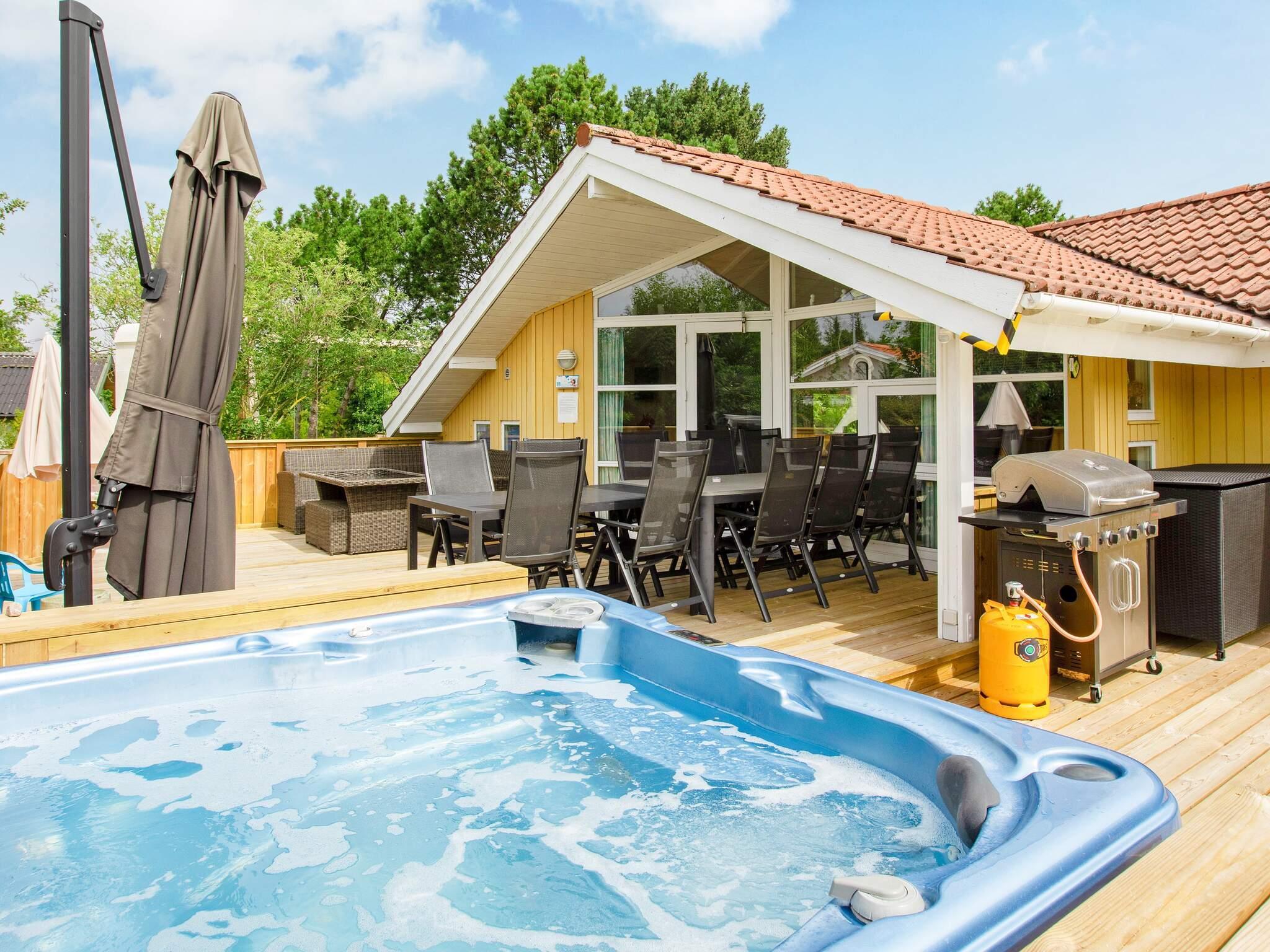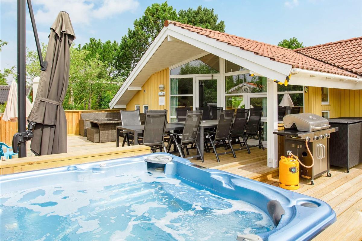 Ferienhaus auf großem Naturgrundstück und mit 5-6 Personen Außen-Whirlpool, der ganzjährig auf 40 Grad erwärmt ist. Hier können Sie ruhige Abendstunden genießen, im Sommer wie im Winter. Die Wände und Decken wurden mit Holz verkleidet. Ihnen stehen zwei Bäder mit jeweils Dusche und Fußbodenheizung zur Verfügung. In einem der Badezimmer finden Sie den 2 Personen Whirlpool und die Sauna.