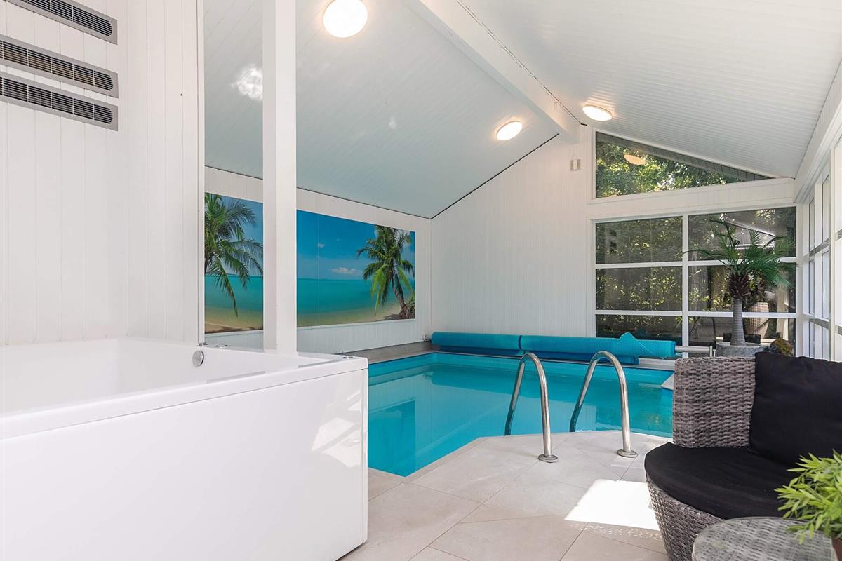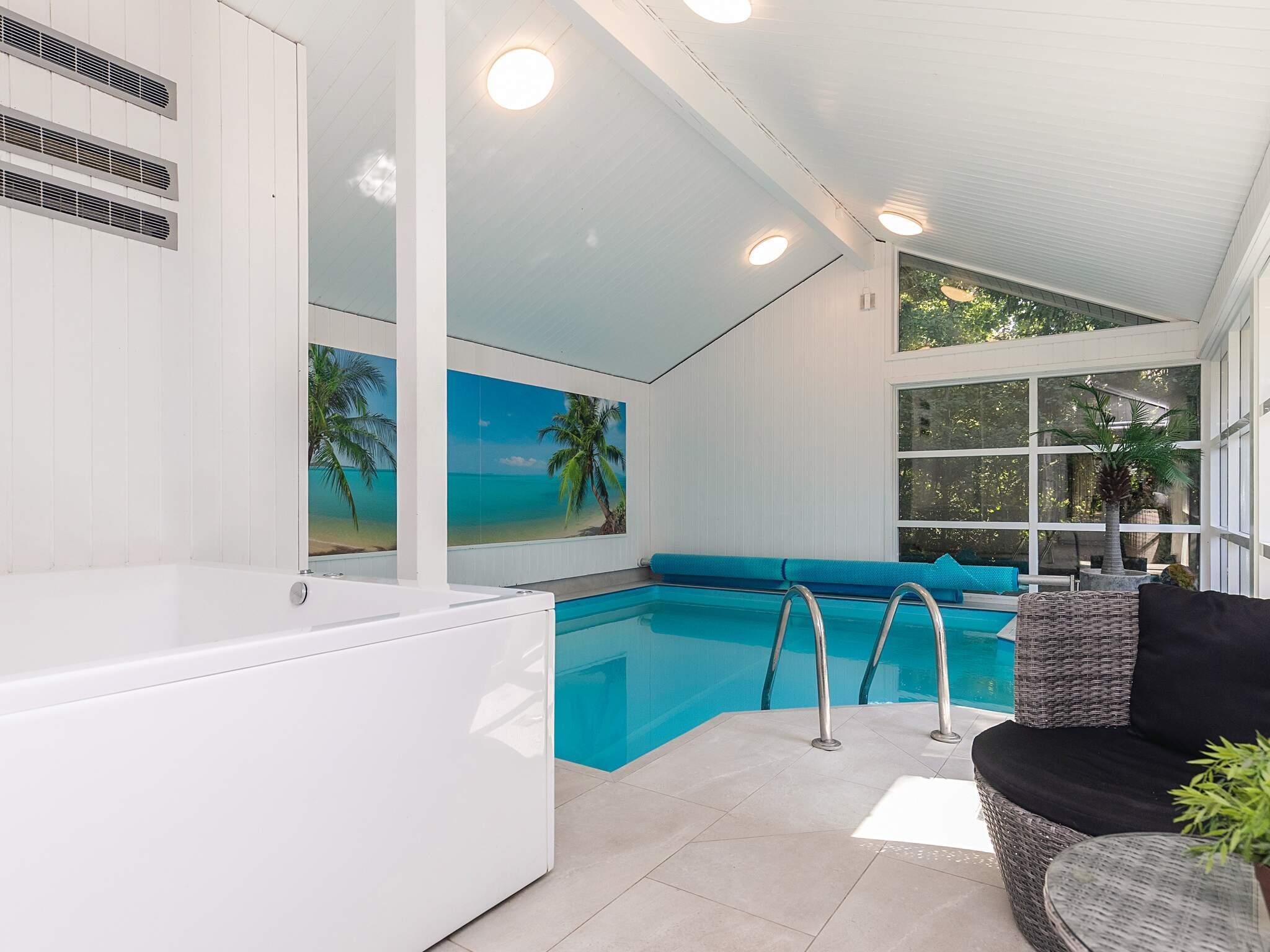 Nach einem Tag voller Aktivitäten im Freien können Sie sich im Whirlpool oder in der Sauna entspannen oder im Swimmingpool plantschen. Zum Haus gehören auch eine überdachte und eine offene Terrasse mit Gartenmöbeln, ein Holzkohlegrill sowie ein Sandkasten und eine Schaukel für die Kleinen. Zur Unterhaltung gibt es einen Tischfußballtisch, der für endlosen Spaß für die ganze Familie sorgt.