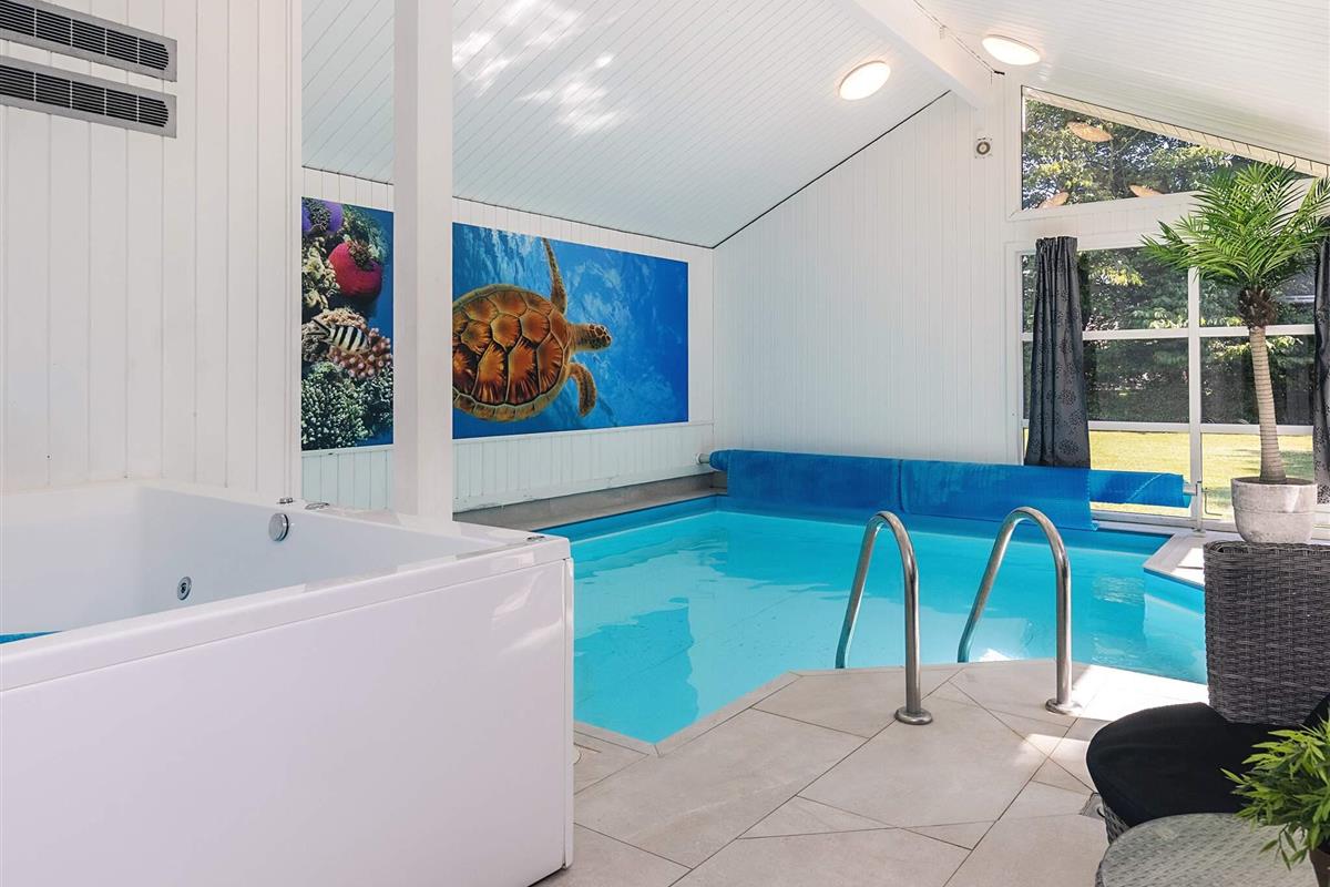 Dieses attraktive Ferienhaus mit privatem Pool, Whirlpool und Sauna liegt auf einem ca. 1.200 m² großen Naturgrundstück, nur einen kurzen Spaziergang vom schönen Sandstrand in Bøtø bei Marielyst entfernt! Das Haus eignet sich perfekt für Familien oder Gruppen und ist der ideale Ort für einen erholsamen Urlaub am Meer.