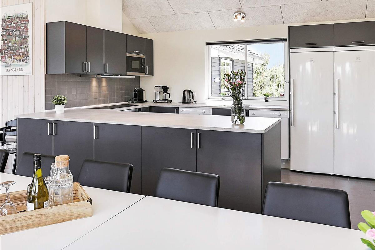 Der gut ausgestattete Küchenbereich ist mit zwei großen Kühl-Gefrierschränken sowie zwei Spülmaschinen bestens ausgerüstet. Sogar einen Kaffeezubereiter von Nespresso gibt es hier.