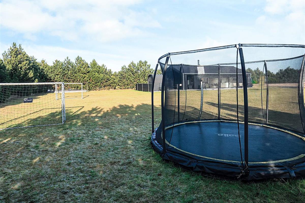 Das 1.840 m² große Naturgrundstück bietet zahlreiche Außenanlagen, darunter eine große Terrasse, die zum Sonnenbaden und Grillen einlädt, sowie eine überdachte Terrasse, die es ermöglicht, den Aufenthalt im Freien bei jedem Wetter zu genießen. Das Gelände ist mit grünem Gras angelegt und bietet lustige Aktivitäten wie zwei Fußballtore und ein Bodentrampolin, die die Kinder lieben werden. Gartenmöbel, Sonnenliegen, Sonnenschirme und ein Grill stehen zur kostenlosen Nutzung bereit. (Bitte beachten Sie, dass diese im Winter in einem Schuppen gelagert werden.)