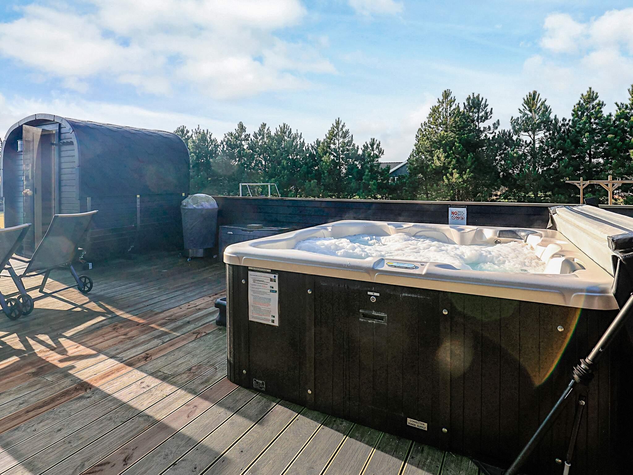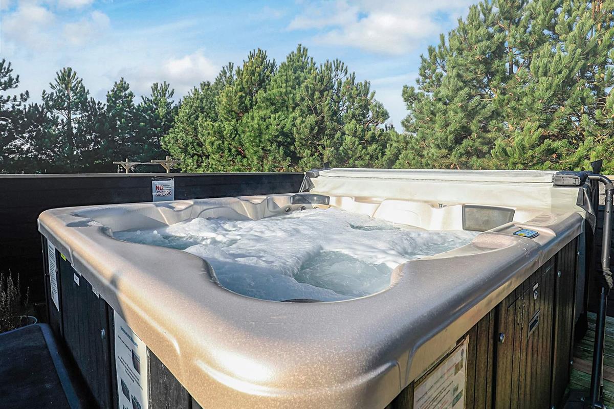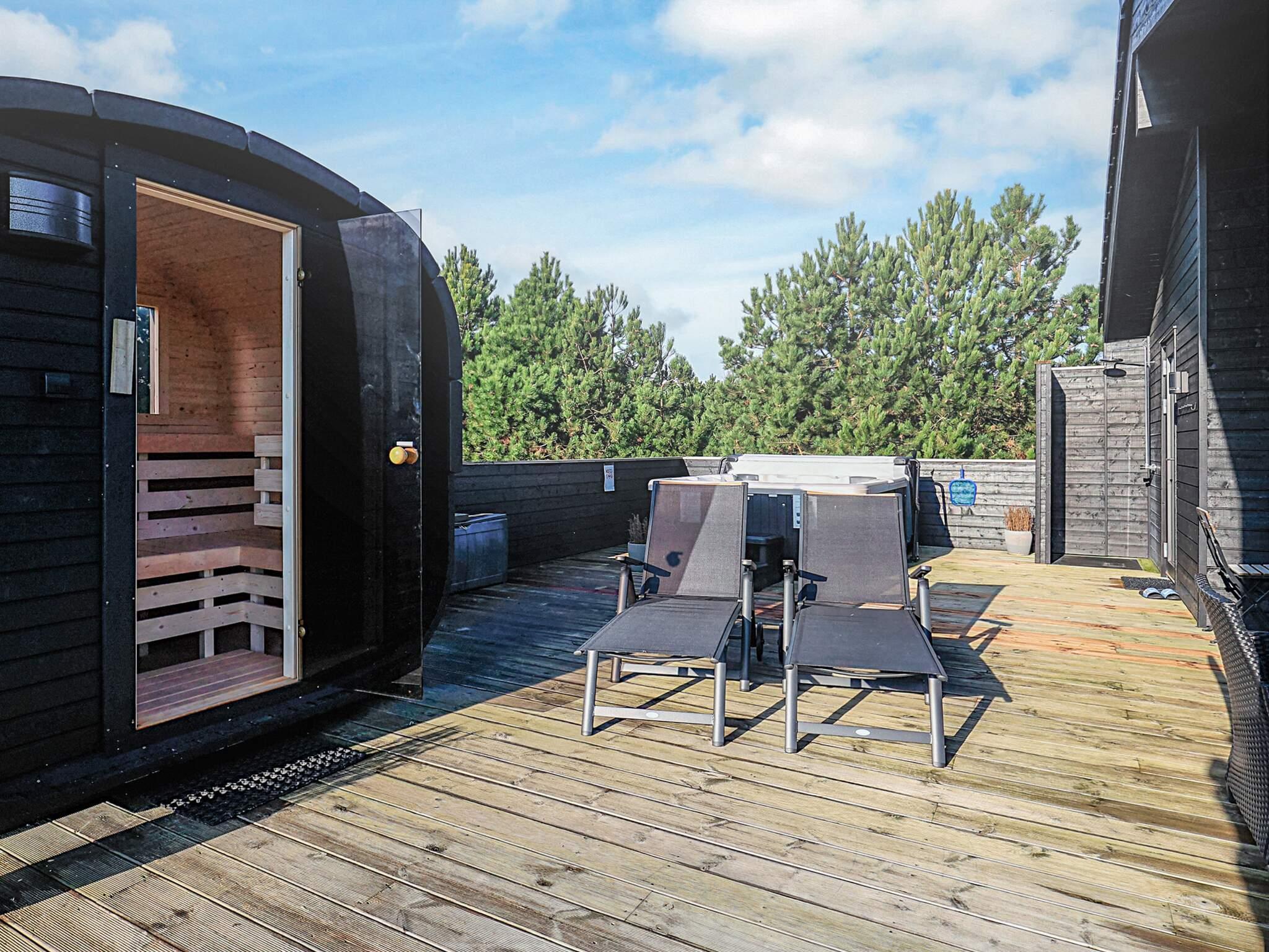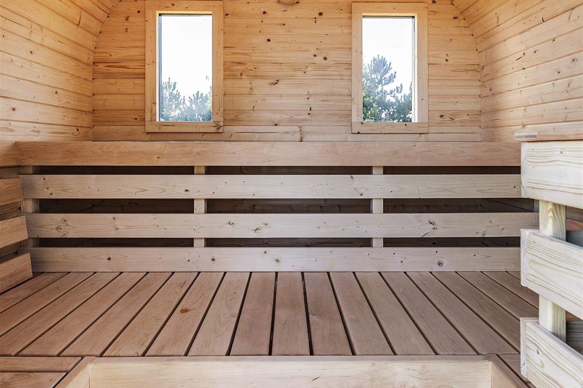 Im Außenbereich können Sie sich in einer privaten Elektrosauna für vier Personen und einem großzügigen Whirlpool für max. sechs Personen verwöhnen lassen, der immer auf angenehme 38 Grad aufgeheizt ist. Von April bis November gibt es zusätzlich eine Außendusche, die einen erfrischenden Ausklang des Tages nach Sonne und Strand ermöglicht.