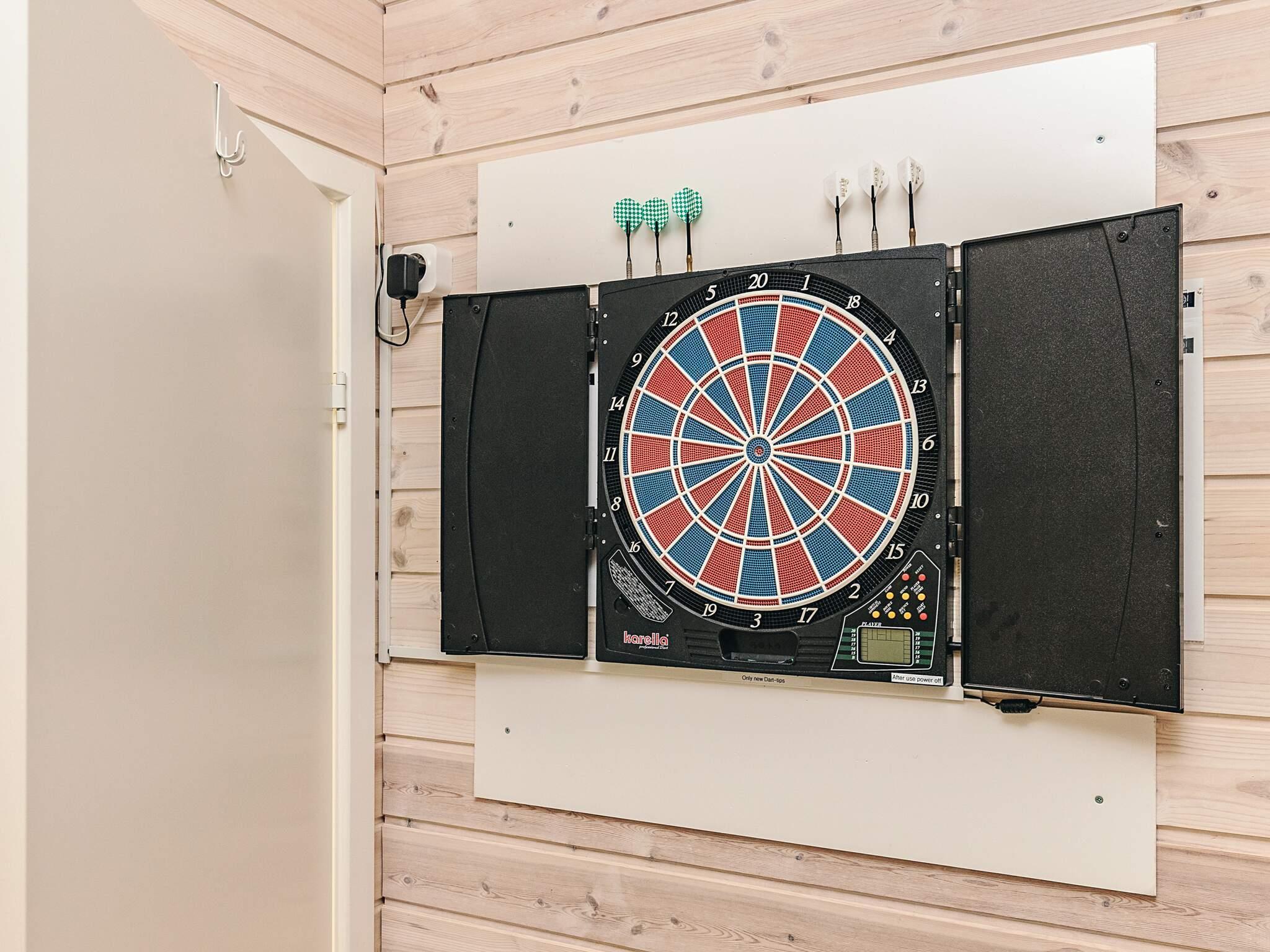 Die Schlafgelegenheiten verteilen sich auf zwei Zimmer mit Einzelbetten, die zu Doppelbetten zusammengestellt werden können, ein Zimmer mit Doppelbett und Einzelkoje sowie auf einen Hems mit zwei weiteren Schlafgelegenheiten, ideal für Kinder und Jugendliche. Einer der Räume ist außerdem mit einer Spielekonsole und einem Fernseher ausgestattet, während ein anderer über eine Dartspiel verfügt. Das Ferienhaus verfügt außerdem über zwei moderne Badezimmer mit Dusche und Fußbodenheizung. Darüber hinaus stehen Ihnen eine Waschmaschine und ein Trockner zur Verfügung, sodass Sie während Ihres Aufenthaltes problemlos den Überblick über Ihre Wäsche behalten können.