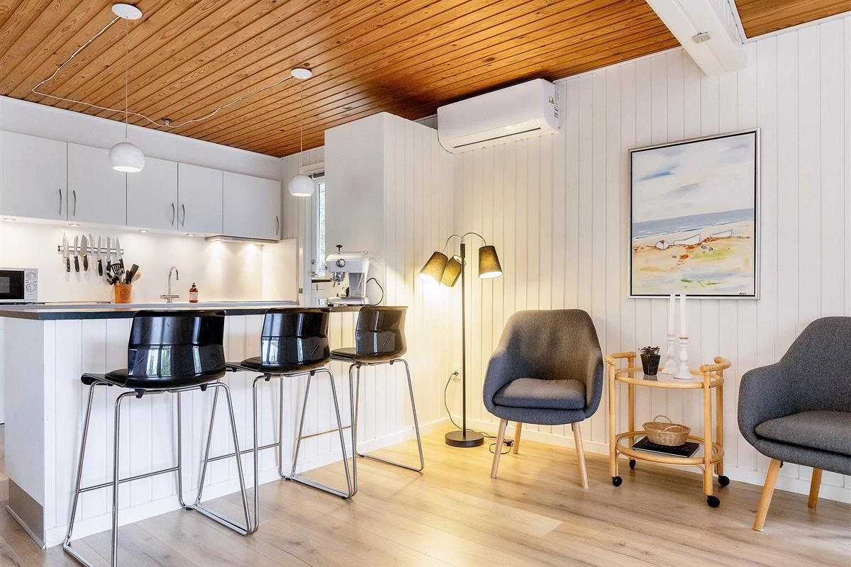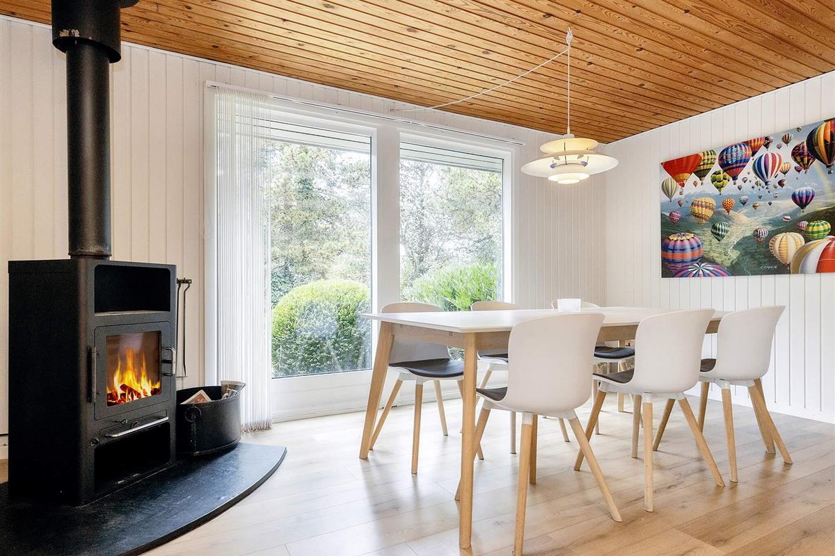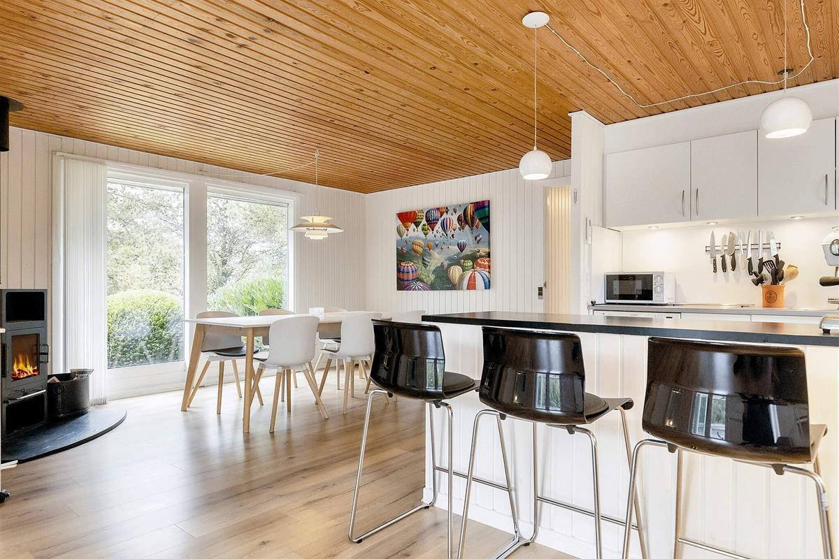 Innen erwarten Sie ein offener Küchen-/Wohnbereich für das Familienleben, u.a. ausgestattet mit Ceranfeld, Geschirrspüler und Zugang zu mehreren Terrassen. Im Wohnbereich steht u.a. eine energieeffiziente Luft-Luft-Wärmepumpe zur Verfügung, zudem gibt es einen Holzofen für kühlere Abende. Zur technischen Ausstattung des Hauses gehören eine Stereoanlage mit CD-Spieler sowie WLAN und TV mit Chromecast zum Streamen Ihrer persönlichen TV-Anbieter. Entsprechendes Equipment (Smartphone/Tablet) ist mitzubringen. Für Kleinkinder stehen im Haus ein Hochstuhl und draußen eine Schaukel sowie eine Rasenfläche zur Verfügung. Eine 14 m2 große, überdachte Terrasse lädt zum Grillen ein.