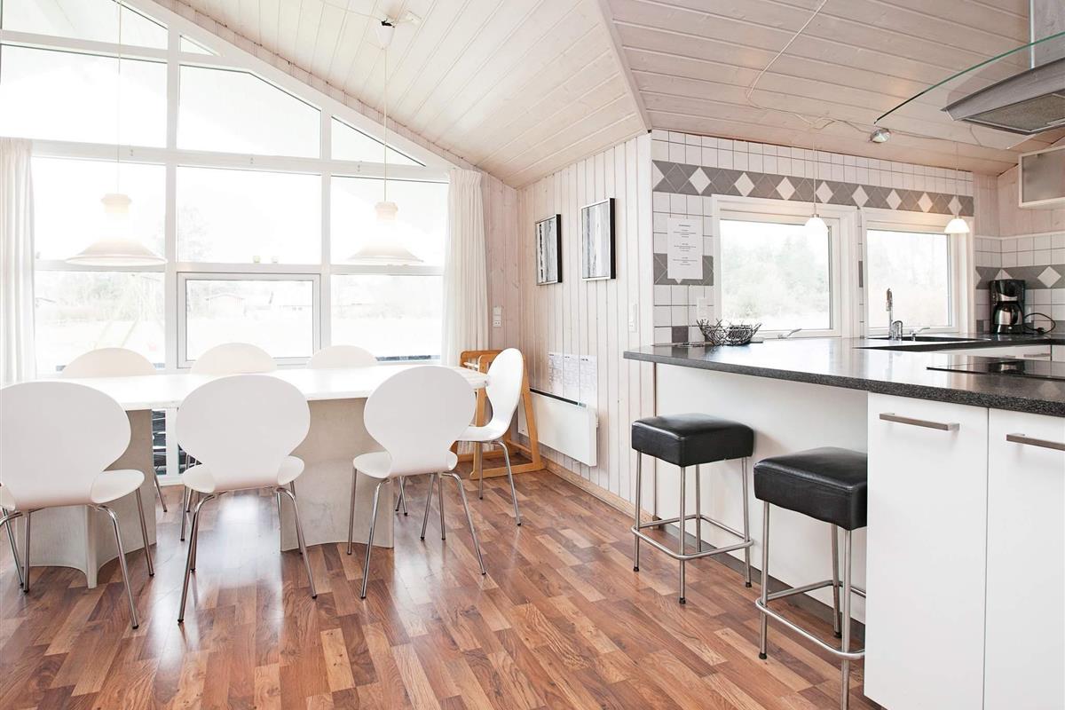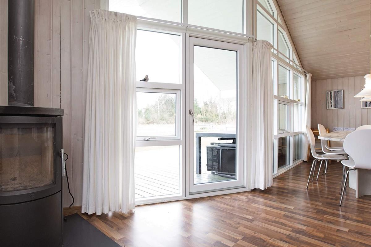 Zur umfassenden Küchenausstattung gehören auch Spülmaschine, Mikrowelle und Ceranfeld. Im hellen Wohnbereich mit Ledergarnitur und großen Fensterflächen gibt es einen Kaminofen für kühlere Tage. Zur technischen Ausstattung gehören ein 46" Fernseher mit deutschen Sendern zur Auswahl sowie WLAN, CD-Spieler, Surroundsound-Anlage und Blu-ray. Erwärmt wird das Haus mittels Elektroheizung und energieeffizienter und somit klimafreundlicher Luft-Wasser-Wärmepumpe.