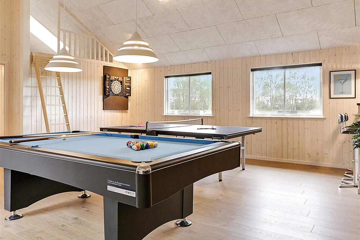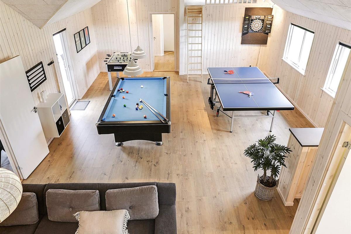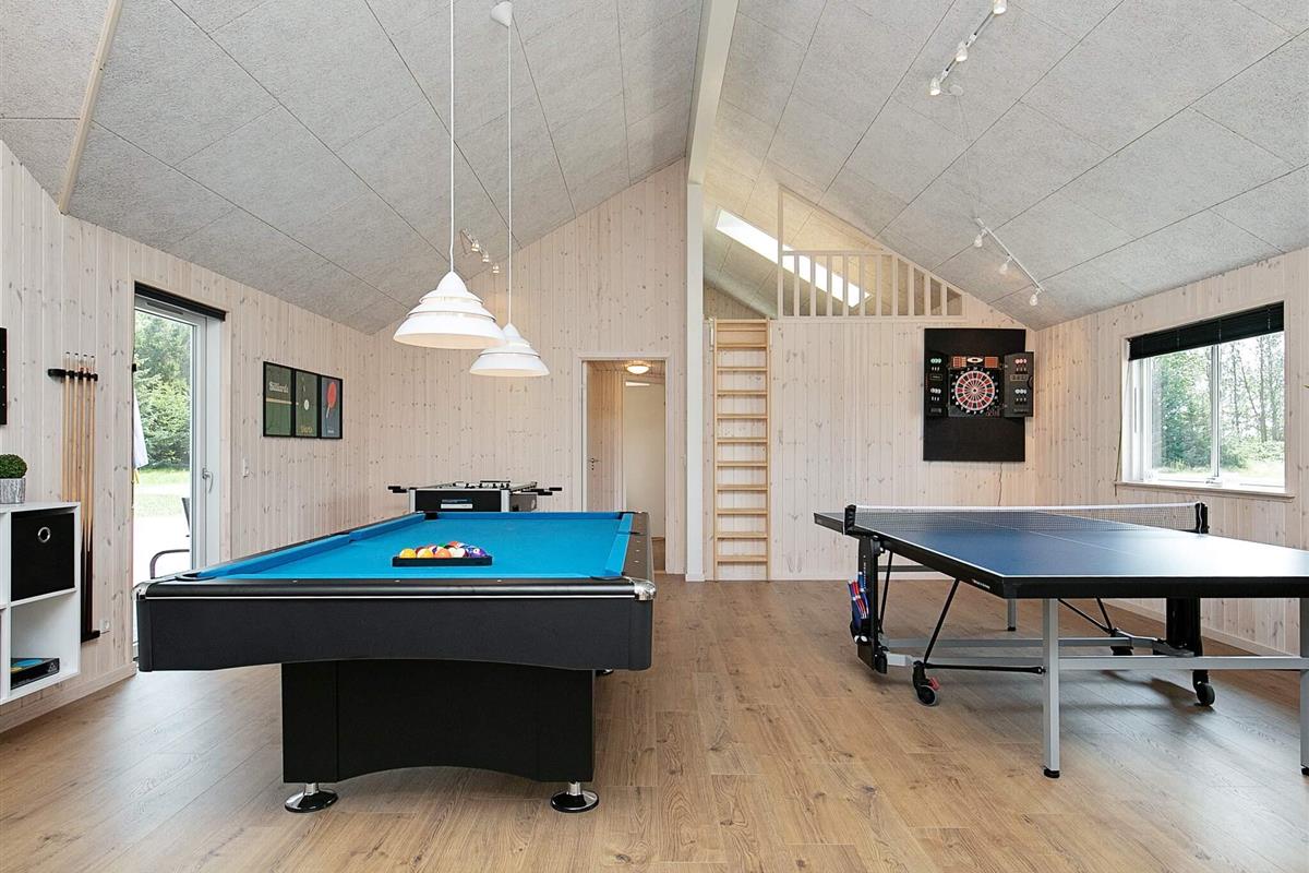 Im geräumigen Aktivitätsraum des Hauses findet man reichlich Gelegenheit für interne Wettkämpfe, sei es am Billardtisch oder Tischkicker, an der Tischtennisplatte oder vor der Dartscheibe. Für eine Pause zwischen den einzelnen Turnieren steht eine gemütliche Sitzecke bereit, von der aus auch weitere Spiele auf dem TV-Bildschirm mit der PlayStation4 stattfinden können. Die kleine Hausbar lädt zu einer Erfrischung zwischendurch ein.