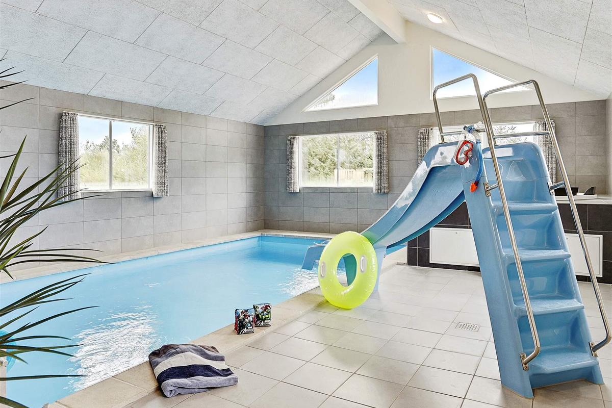 Das Haus eignet sich hervorragend für einen Mehrfamilienurlaub mit Kindern. Für Badespaß sowie Wellness und Entspannung stehen im Poolbereich sowohl ein 20 m² großer Pool, mit Gegenstromanlage für die Fitness und Rutsche für leuchtende Kinderaugen, als auch ein Whirlpool und eine Sauna bereit.