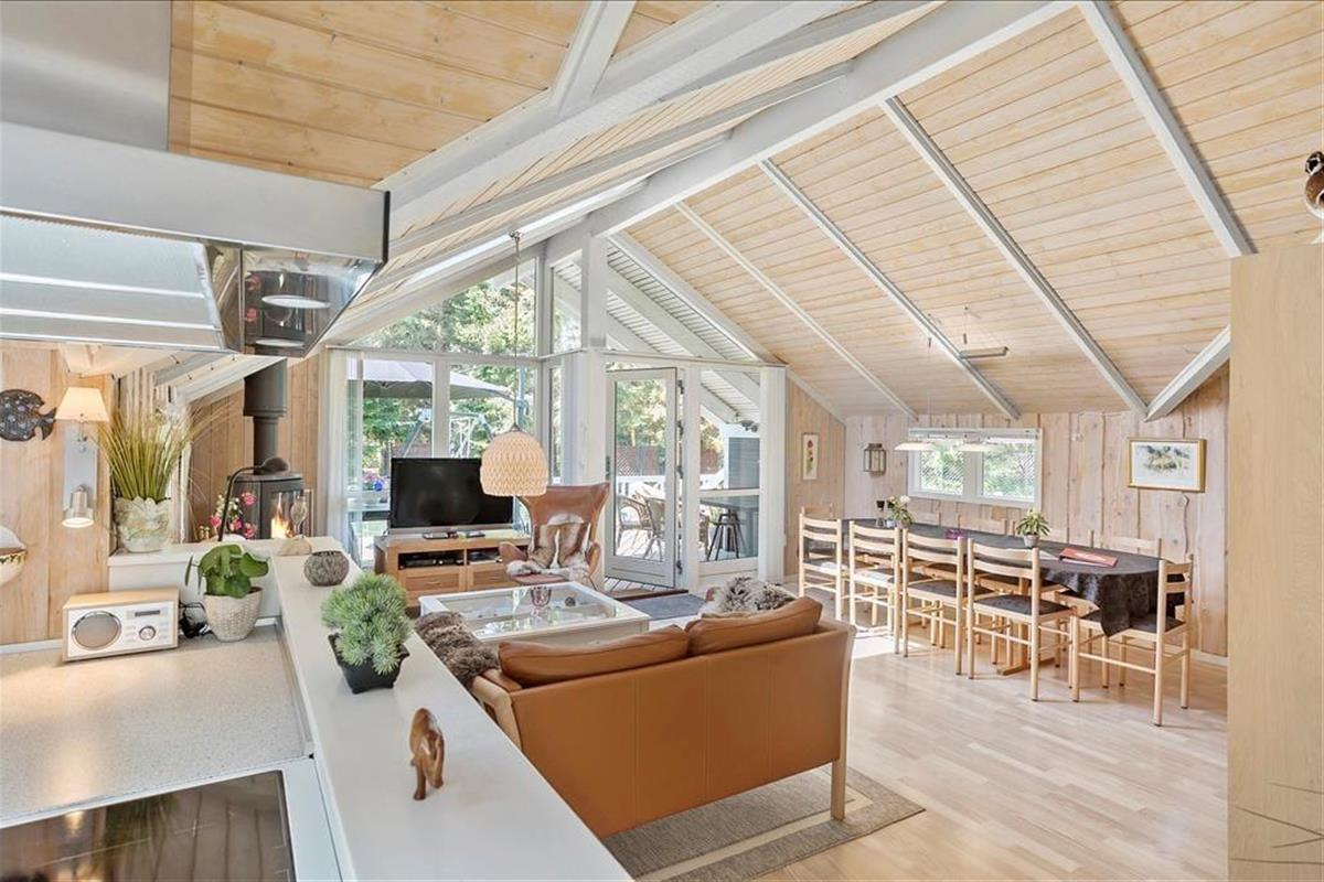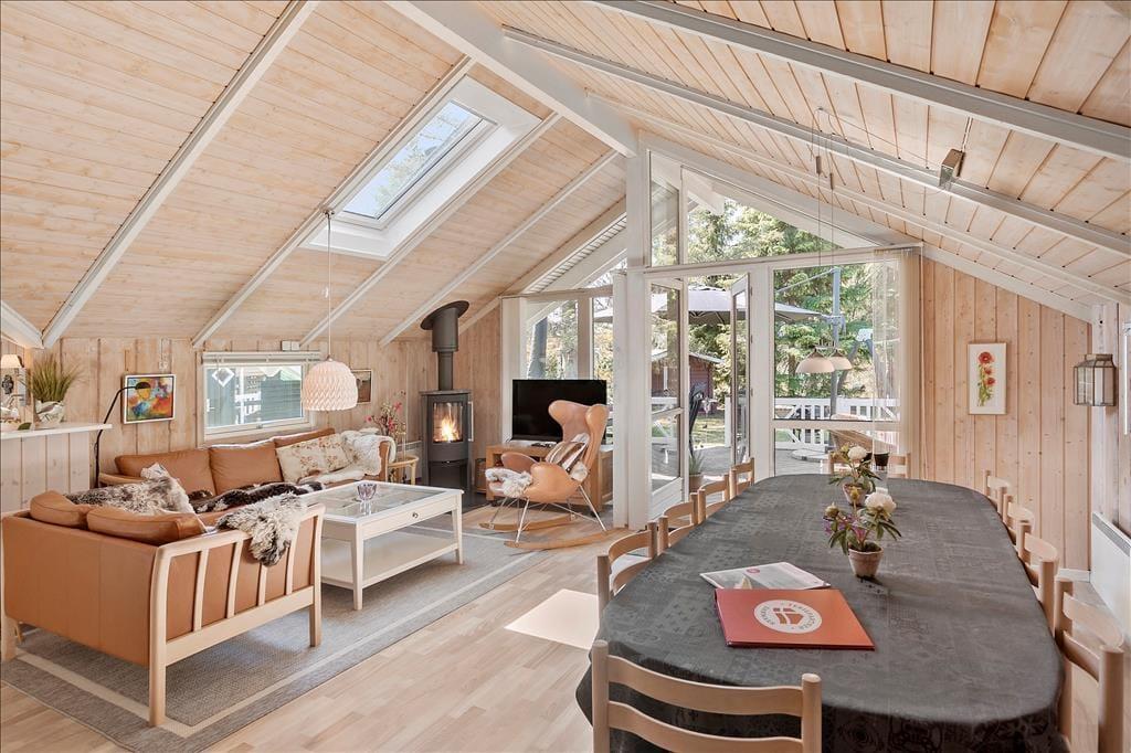 Das große und schöne Wohnzimmer ist gut aufgeteilt mit einem Esstisch auf der einen Seite und einem Sofa zur Fernsehabteilung auf der andere Seite ausgestattet. Am Ende des Wohnzimmers gibt es Zugang zur schönen Terrasse sowie zum Garten.